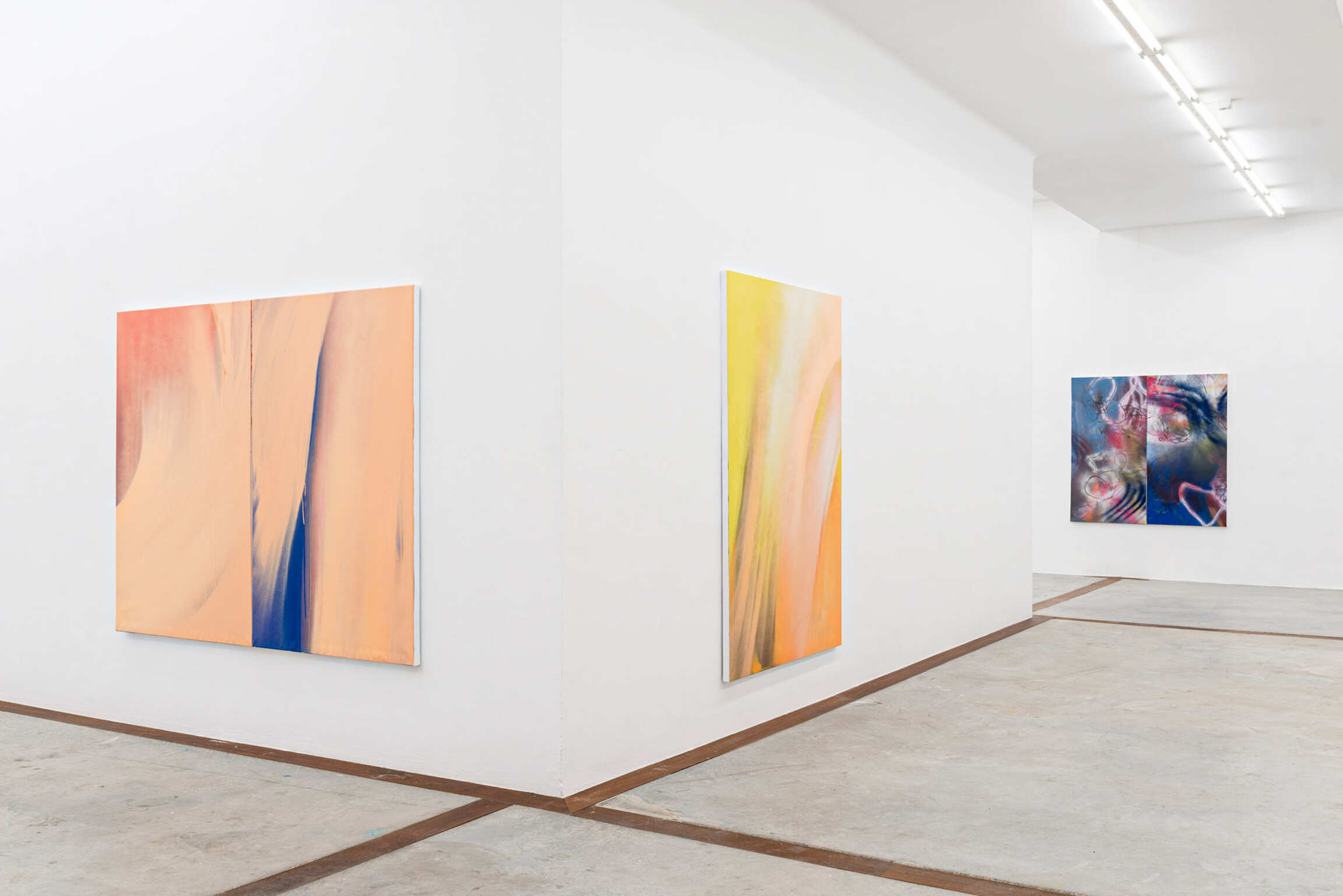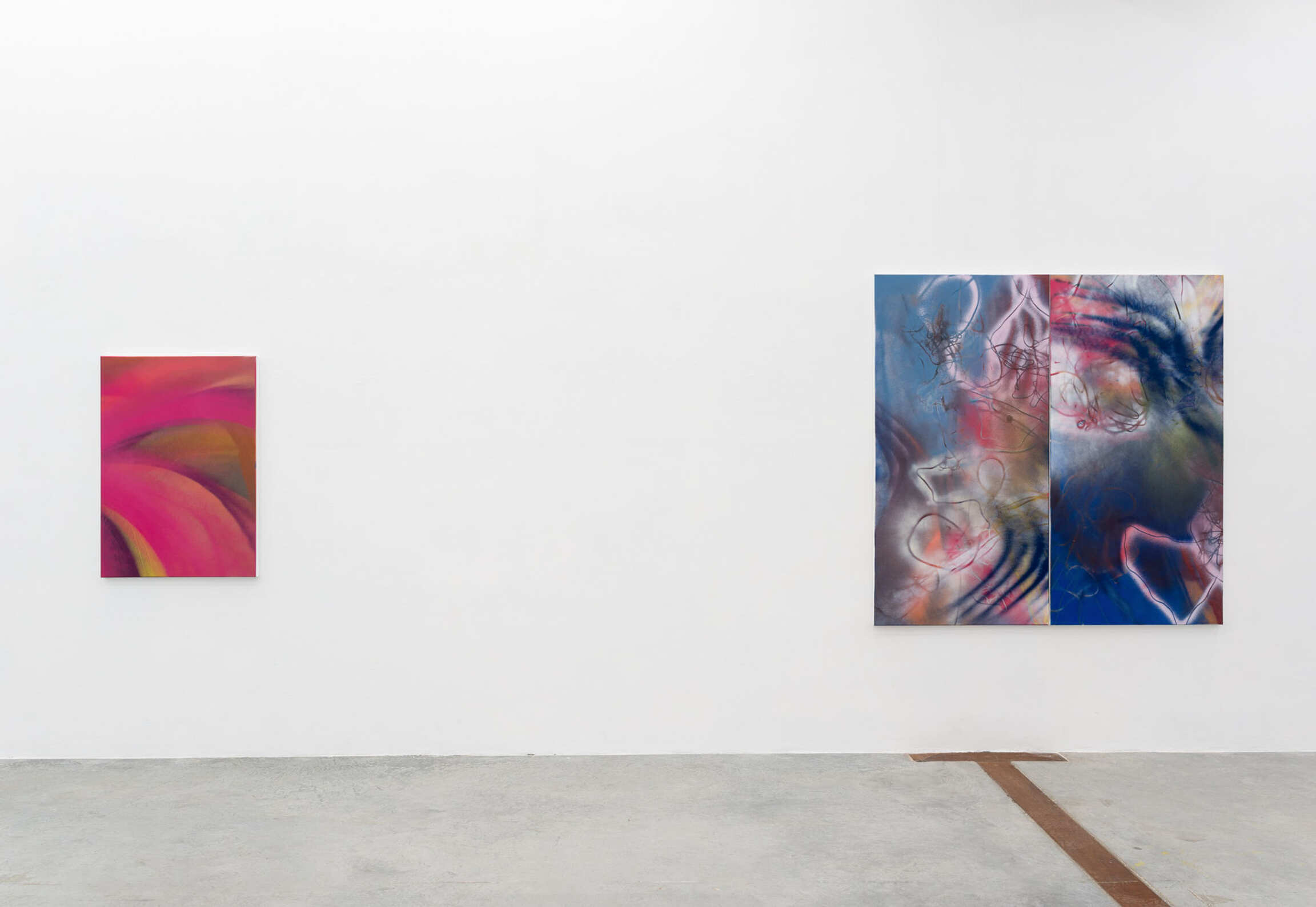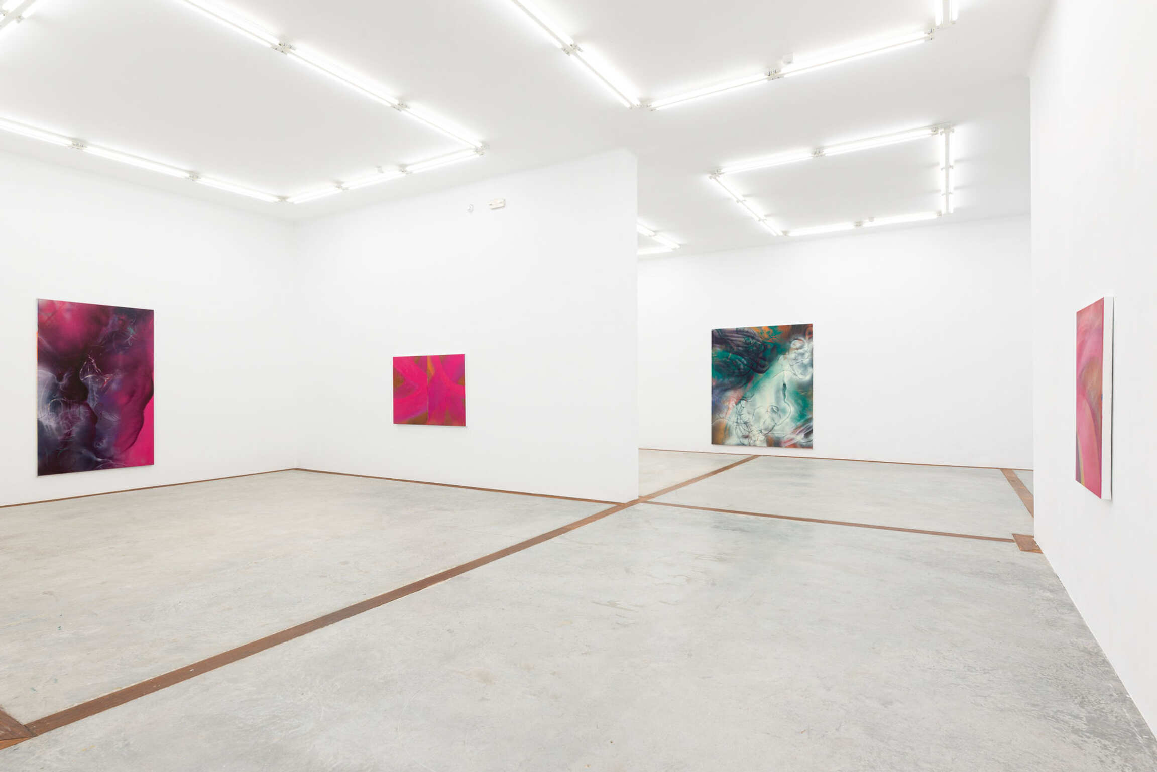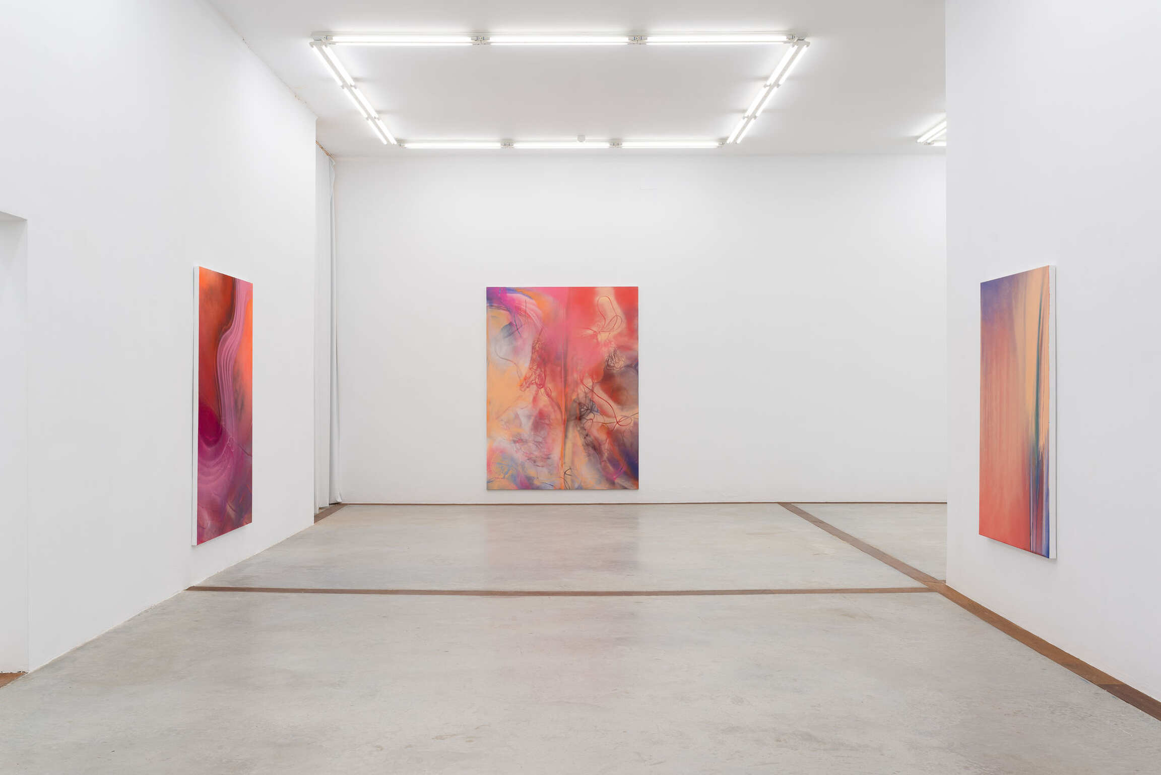 As we move through the exhibition hall, the journey gradually cools, as if we were walking from the hot sand to the coolness of the sea, where our feet touch the water for the first time in summer. The paintings begin to contrast in colors and movements, becoming more organic and wilder, like a mane dancing in the wind on a summer day. This transformation envelops us in a chromatic dance and makes us feel the freedom and untamed nature in its purest form.