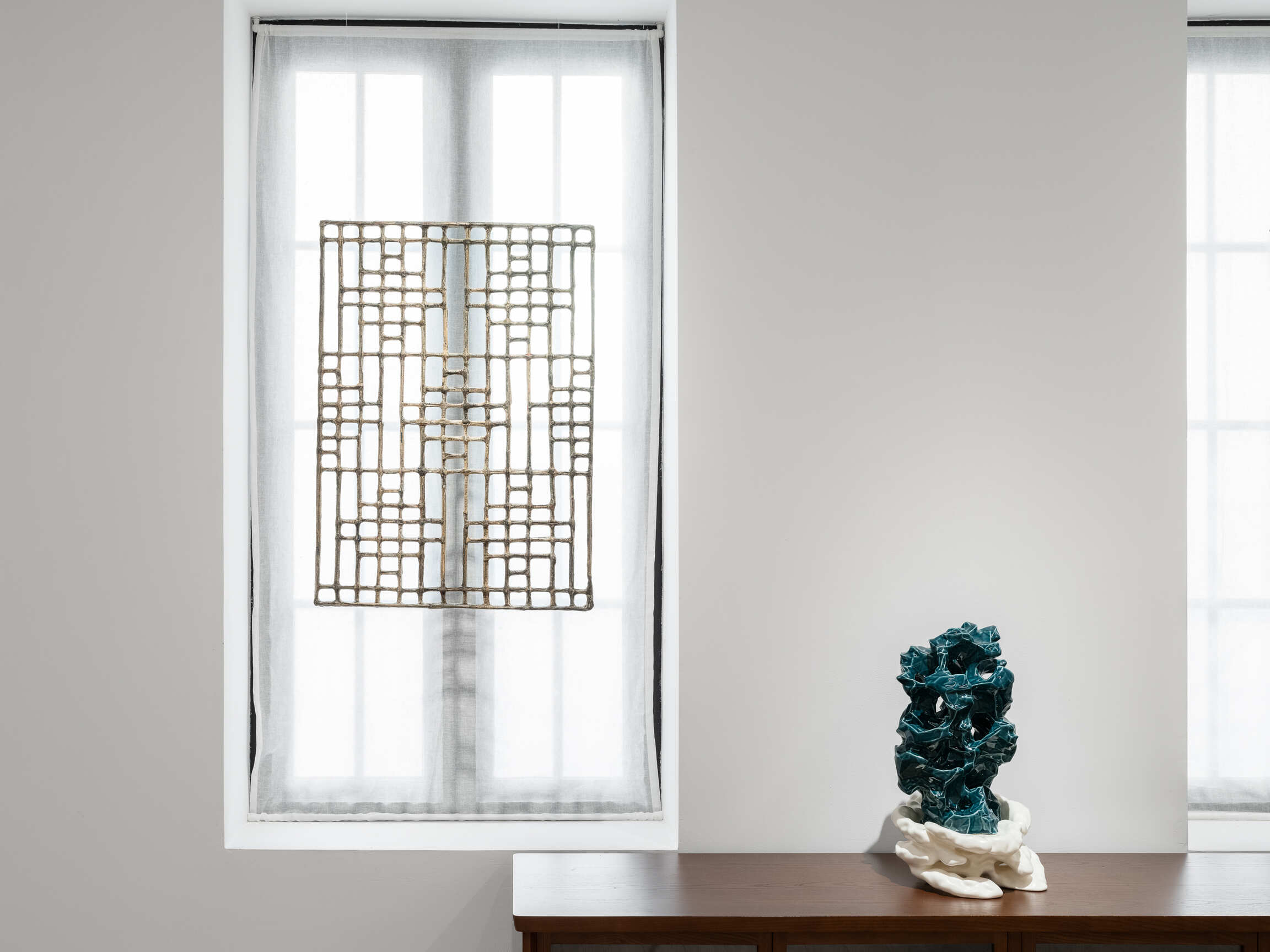 The works in Peaceful Retreat convey the philosophical tenet of "not seeking perfection, content with the partial” — the paintings hover between the plane and the three-dimensional, akin to Ming-Qing wall vases; the sculptural forms reminiscent of latticed windows, where the intention is by no means "borrowing the scenery", but rather the framing of the blank wall space. The solitary scholar's rock is like a lonely peak, seemingly making room for solitary contemplation. Taking viewers on a contemplative journey, Gordon Cheung never ceases to unsettle and question the inevitability of historical narratives written by the victors. Peaceful Retreat invites us to meditate on a garden where the profound fullness of emptiness evokes tranquility with both unfinished sorrow and unbridled anticipation for the future.
