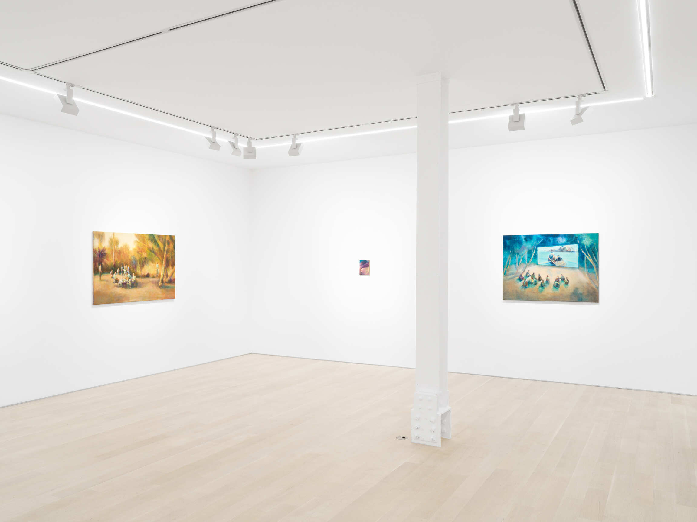 The influence of the late writer and painter Henry Darger writ large in de Flers’ art. Darger’s ability to create unusual, imaginary worlds and sketch tales of good and evil resonates through the eerie scenes of gatherings seen in de Flers’ works. These focused and alienated crowds, bound by the borders of the panavision format, are also an ode to cinema. The opera of still-focused figures is surrounded by propulsive action of nature and bright colors, creating a deeply rhythmic, cinematic image and opening the discourse about what is real and what is a dream.