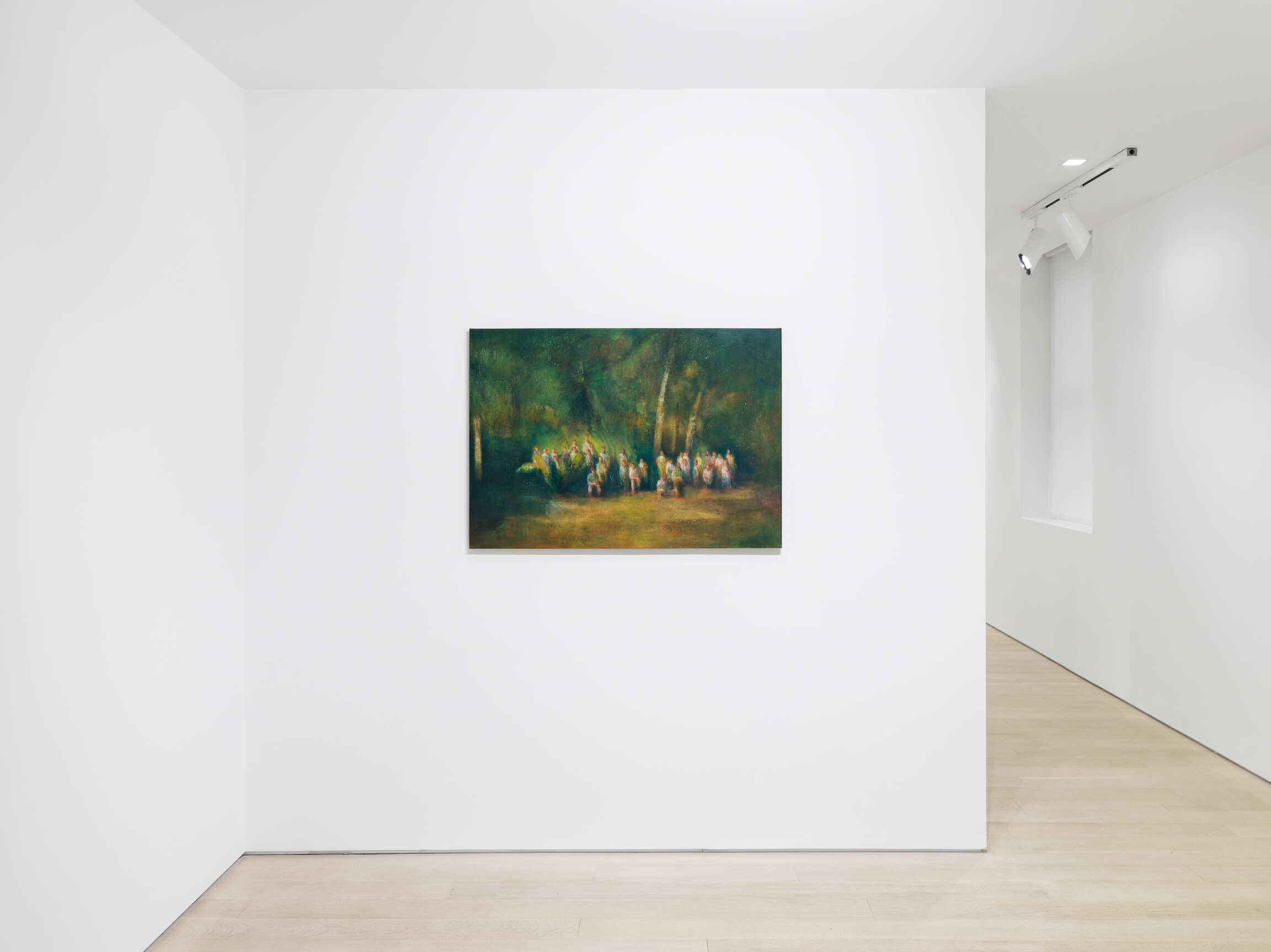 The influence of the late writer and painter Henry Darger writ large in de Flers’ art. Darger’s ability to create unusual, imaginary worlds and sketch tales of good and evil resonates through the eerie scenes of gatherings seen in de Flers’ works. These focused and alienated crowds, bound by the borders of the panavision format, are also an ode to cinema. The opera of still-focused figures is surrounded by propulsive action of nature and bright colors, creating a deeply rhythmic, cinematic image and opening the discourse about what is real and what is a dream.