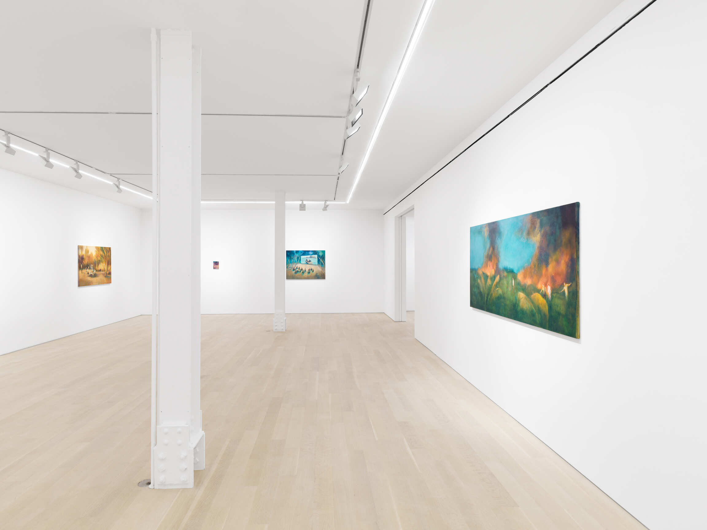 The influence of the late writer and painter Henry Darger writ large in de Flers’ art. Darger’s ability to create unusual, imaginary worlds and sketch tales of good and evil resonates through the eerie scenes of gatherings seen in de Flers’ works. These focused and alienated crowds, bound by the borders of the panavision format, are also an ode to cinema. The opera of still-focused figures is surrounded by propulsive action of nature and bright colors, creating a deeply rhythmic, cinematic image and opening the discourse about what is real and what is a dream.