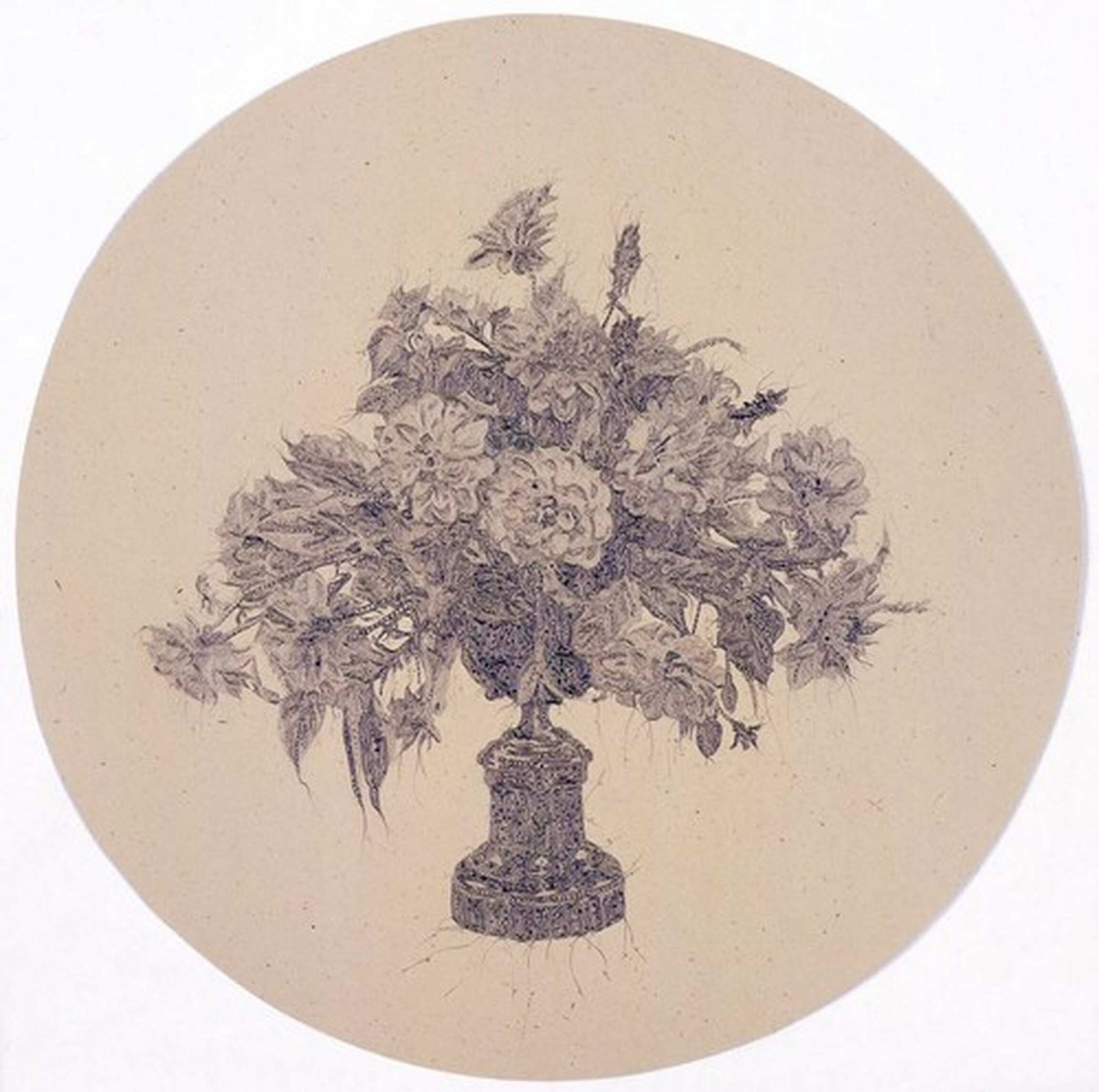 By contrast, the fine and precise pencil lines in Peri’s drawings present more perceptible, figurative motifs, such as the apparently archaic and at the same time futuristic architectures in Country of the Blind (2006) and The Metropolis and the Mental Life (2006), or the cult objects of Catholicism in Sun Monstrance. The subversive quality in these works unfolds in quite another way, having something to do not only with the choice of motif – at times Peri refers to pictorial elements from Hieronymus Bosch and Albrecht Dürer – but also with the varied and labyrinthine lines and ornaments that fill the planes of the objects while shattering and dissolving their outward contours.