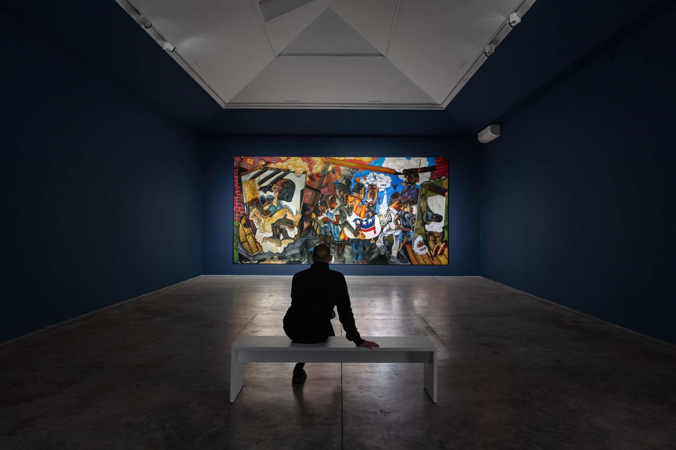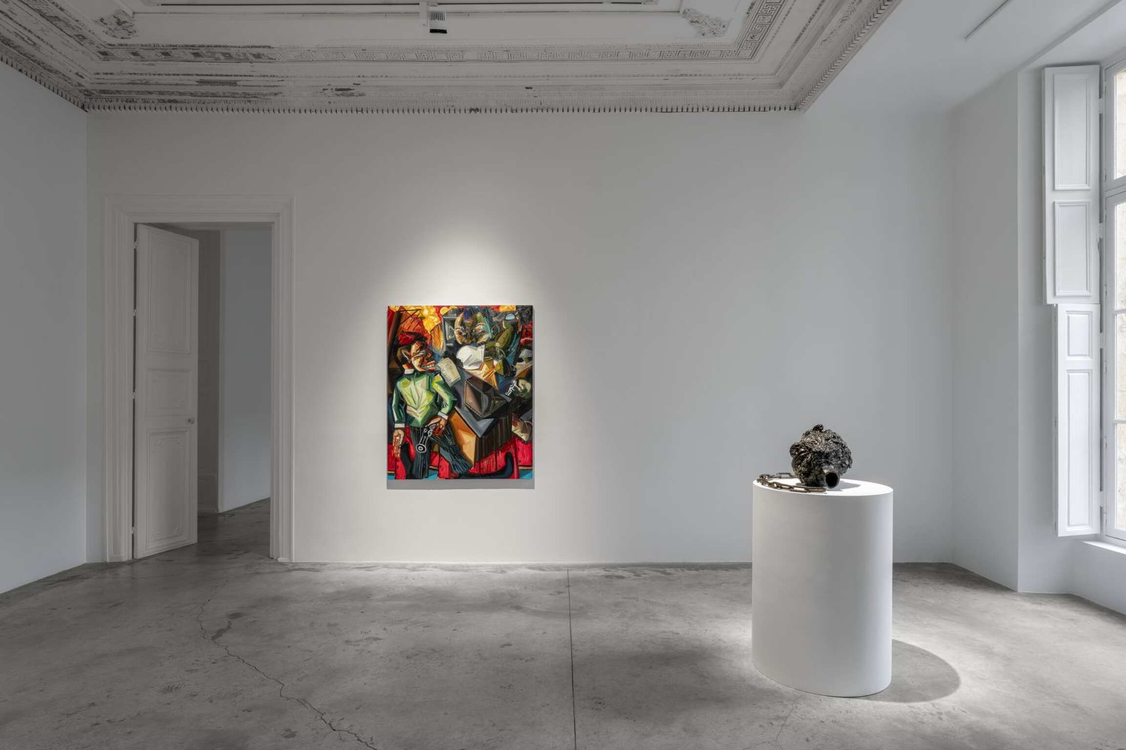 Hailing from New York, where he received his MFA from Hunter College, Green has long been fascinated with the relationship between the private self and the self forged through clashes with the body, the community, and the images that reflect these structures back to us. In his solo exhibition at Almine Rech Paris, “Look back, and smile on perils past”, the personal comes into often violent confrontation with the social and the historical, played out by the enigmatic characters on the face of the canvas.