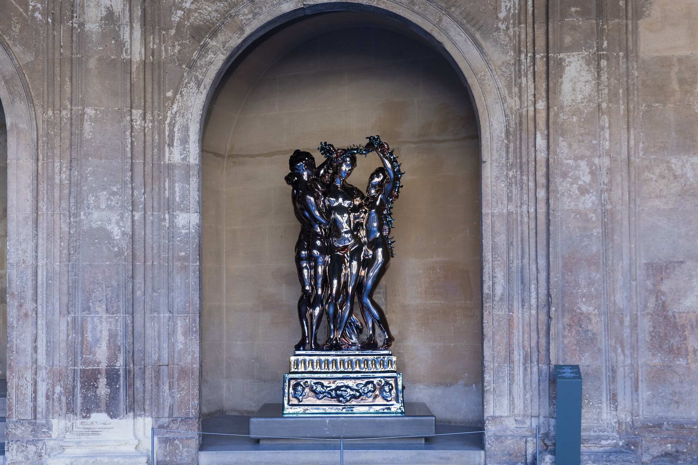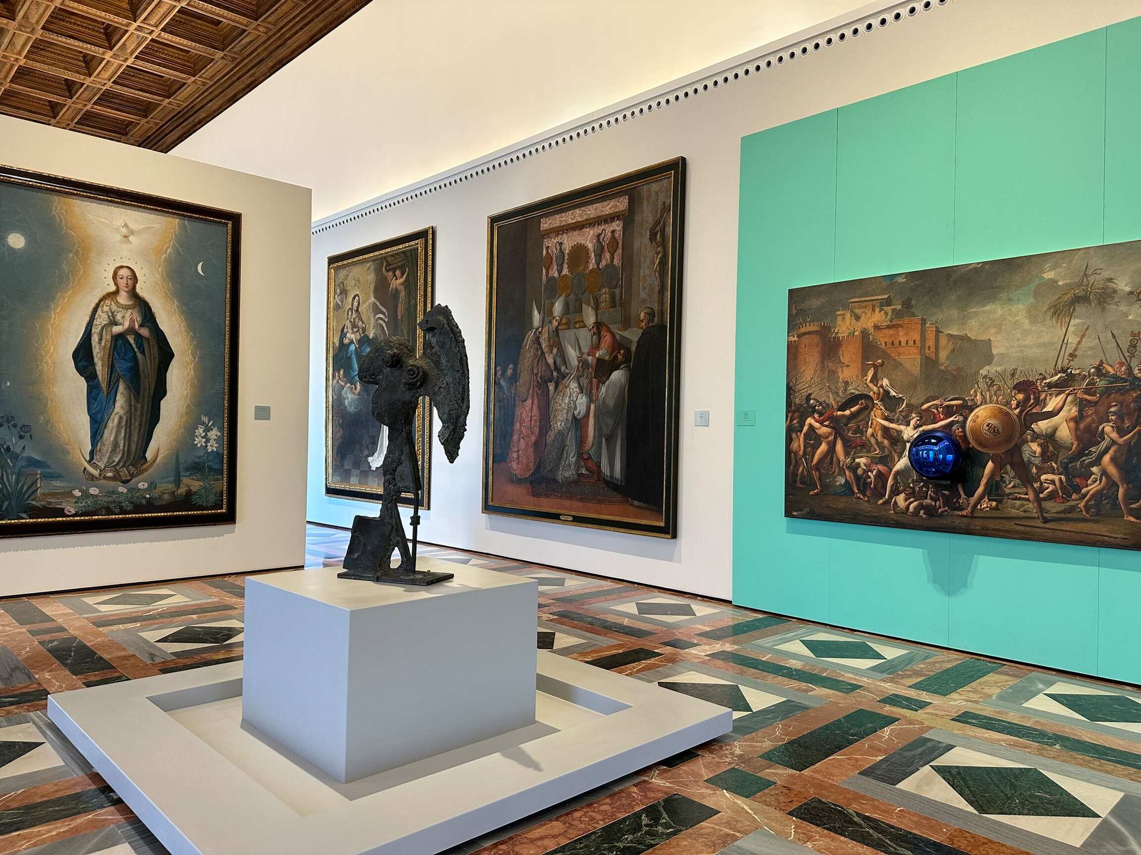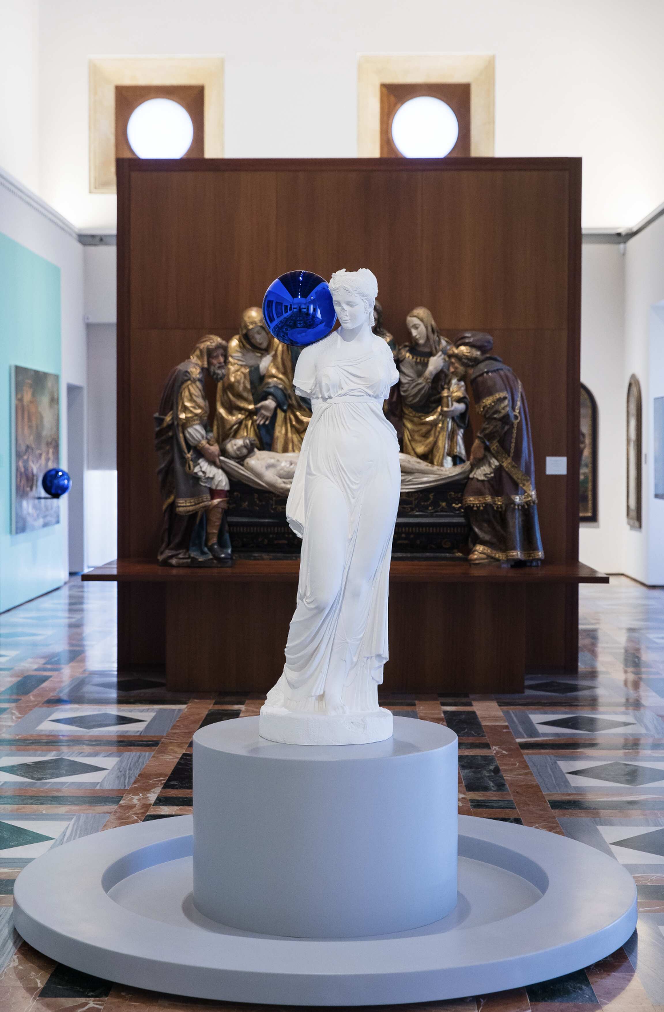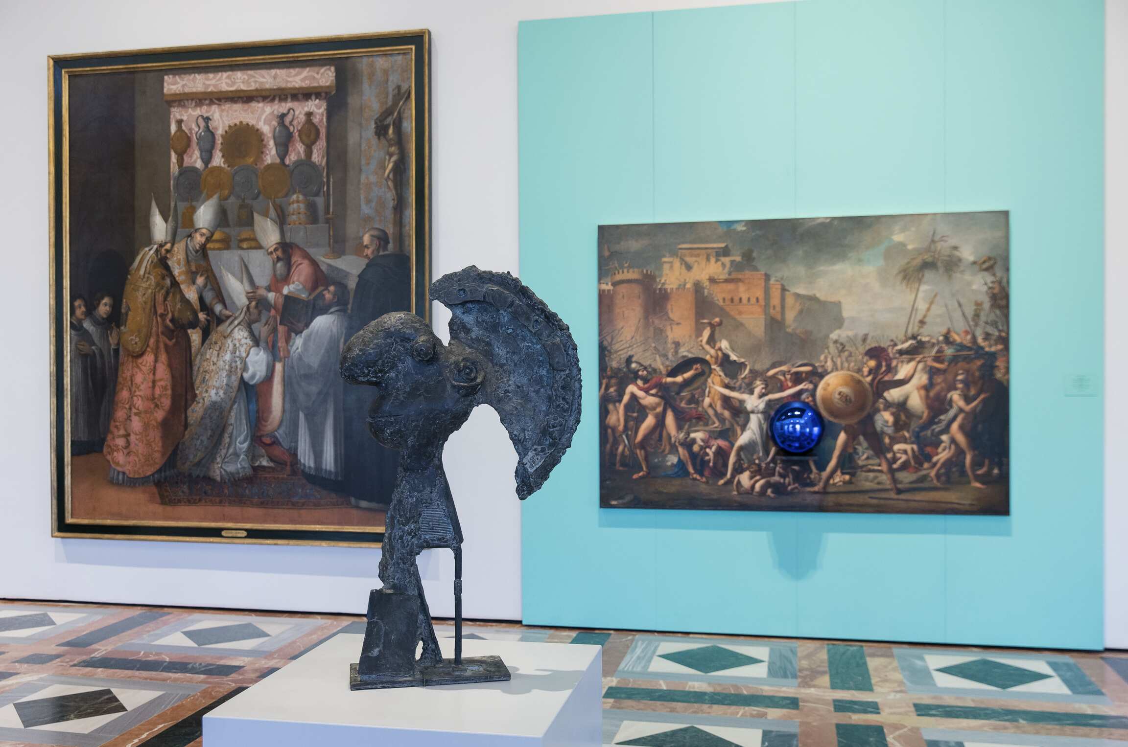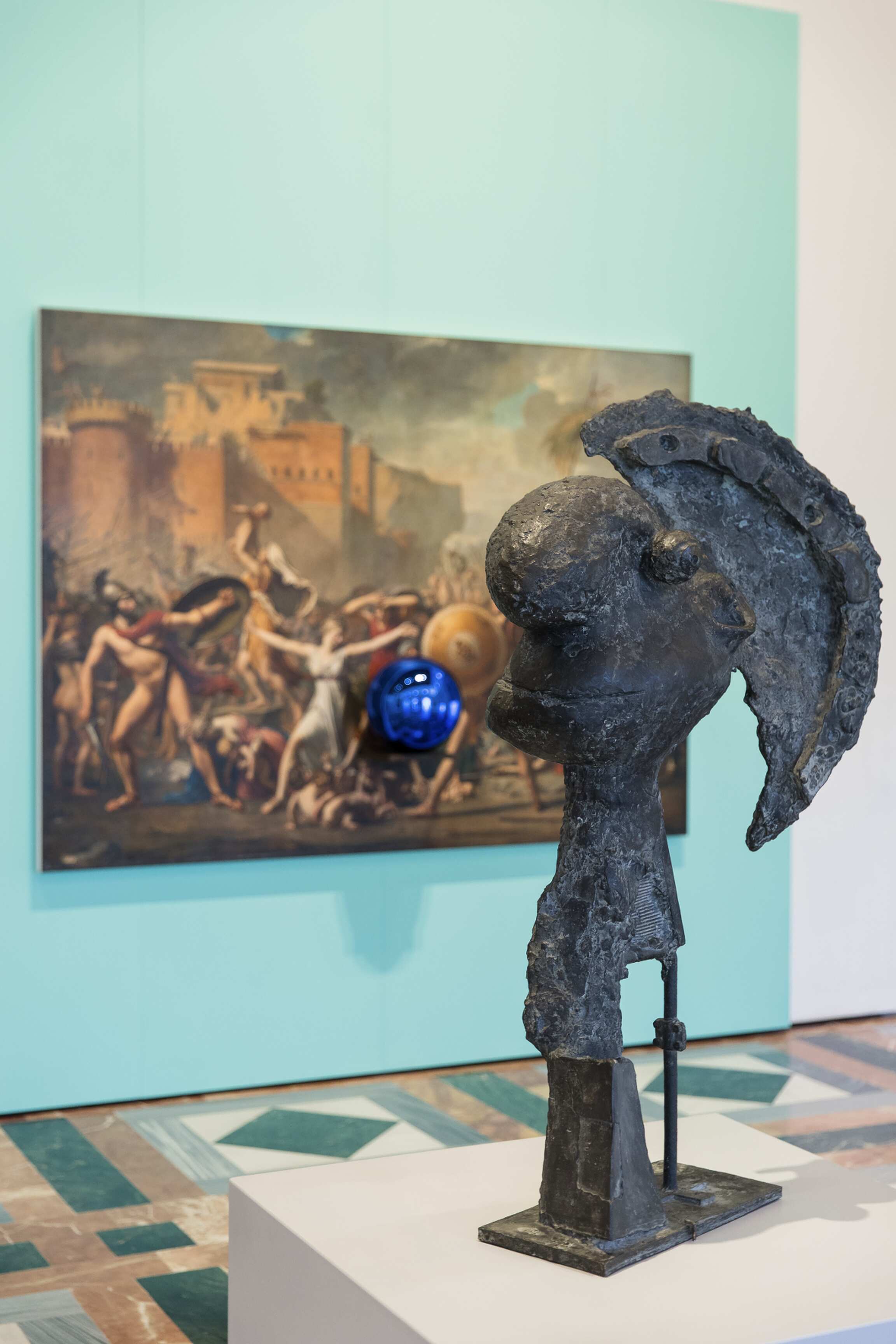 Reflections. Picasso/Koons at the Alhambra features five works—two by Picasso and three by Koons—integrated the permanent collec-tion of the Museum of Fine Arts, creating a dynamic conversation between past and present. Three Graces by Koons is displayed in the circular courtyard of the Palace of Charles V, whilst Picasso’s The Three Graces (1923) is displayed inside the Museum. Head of a Warrior (1933) by Picasso and two works by Koons from his Gazing Ball series are also displayed in Room 1 of the Museum, which is dedicated to the oldest and most revered works of art.
