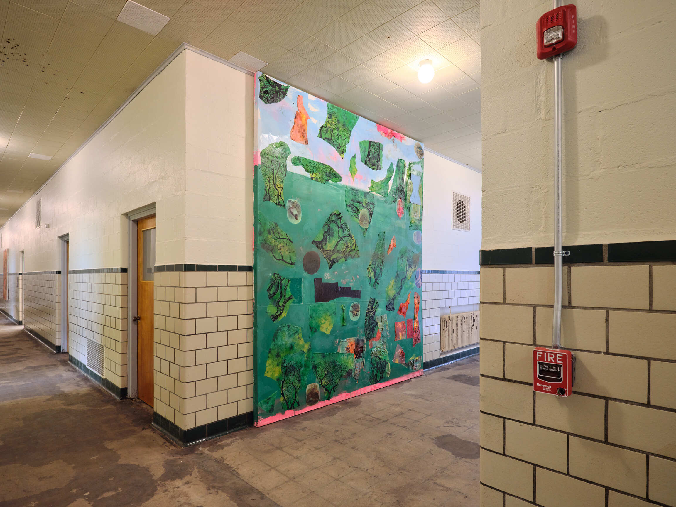 Vacant since the ‘90s, the 78,000-square-foot building of the Ockawamick School, built in 1951 and largely unrenovated, has been ripe for reanimation. Colorfully-painted classrooms, mid-century architectural details, and generous natural lighting create a compelling context for artists to engage with the space, the original purpose of the structure, and one another.