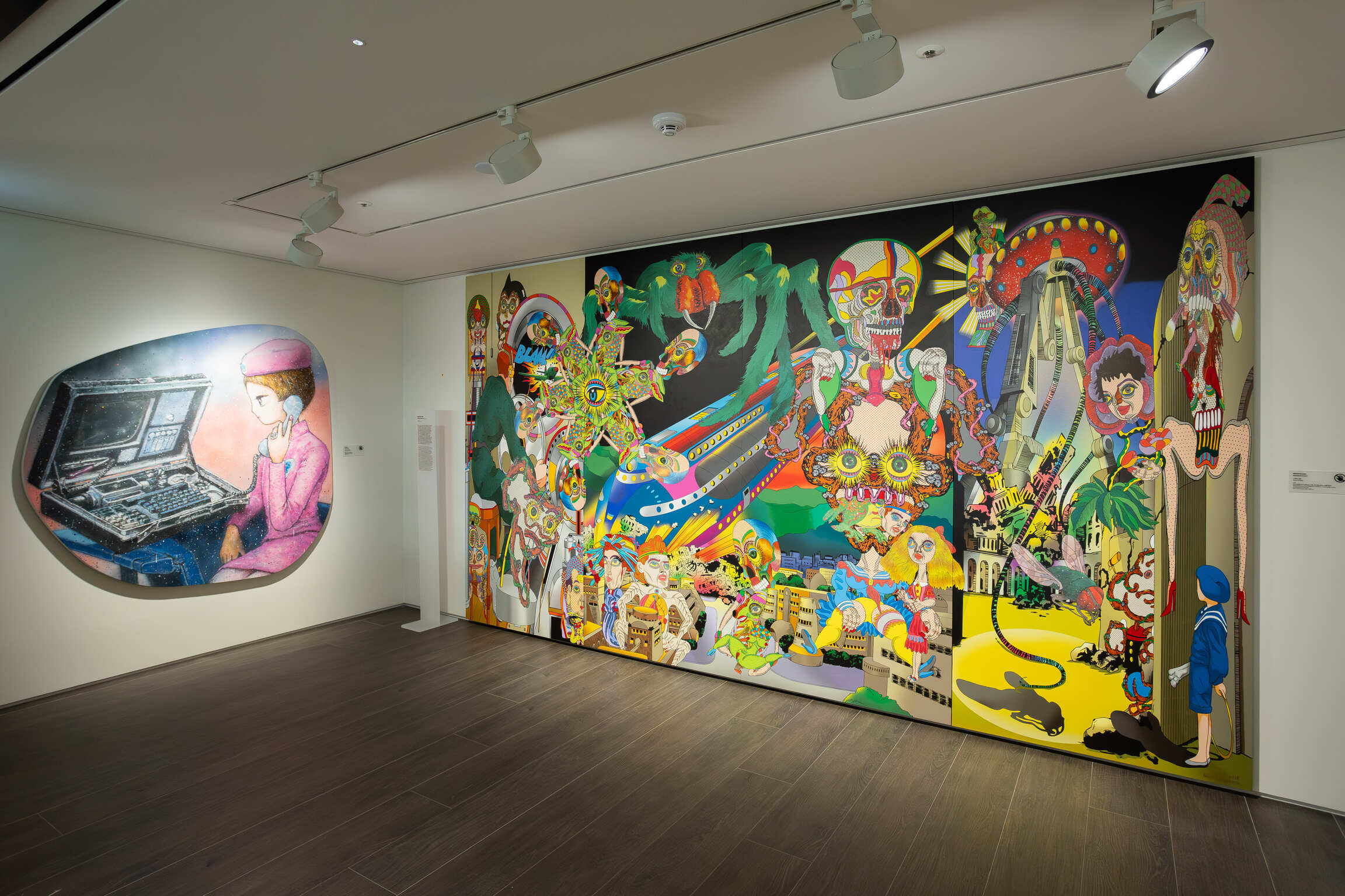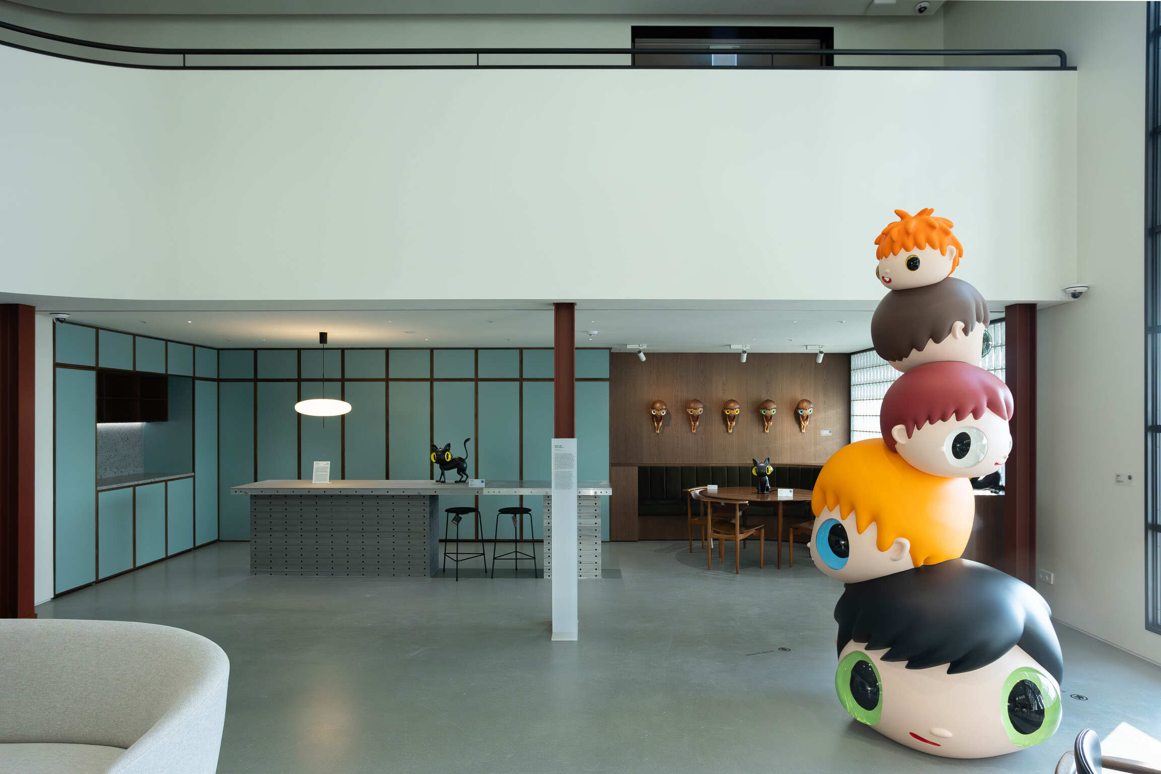 Finally, the DUPLEX HOUSE on M4 is the house of a male gallerist in his forties who, guided by maximalist tastes, collects a broad spectrum of artworks. The space, reminiscent of a relocated gallery with its white walls and duplex structure, is filled with pieces by Alexander Calder, Yoshiki Muramatsu, Nam June Paik, Haroshi, Javier Calleja, Koichi Sato, Jean Prouvé, Poul Henningsen, and Finn Juhl showcasing a discerning eye that spans both emerging talents and established masters, vintage and contemporary. The space is densely arrayed with works by Marion Peck, Roby Dwi Antono, Raymond Lemstra, and Noh Sangho, which stimulate curiosity and imagination. Striking pieces notable for their bold color contrasts by Hiroki Tsukuda, Stickymonger, Keiichi Tanaami, and Masato Mori further enrich the collection.
