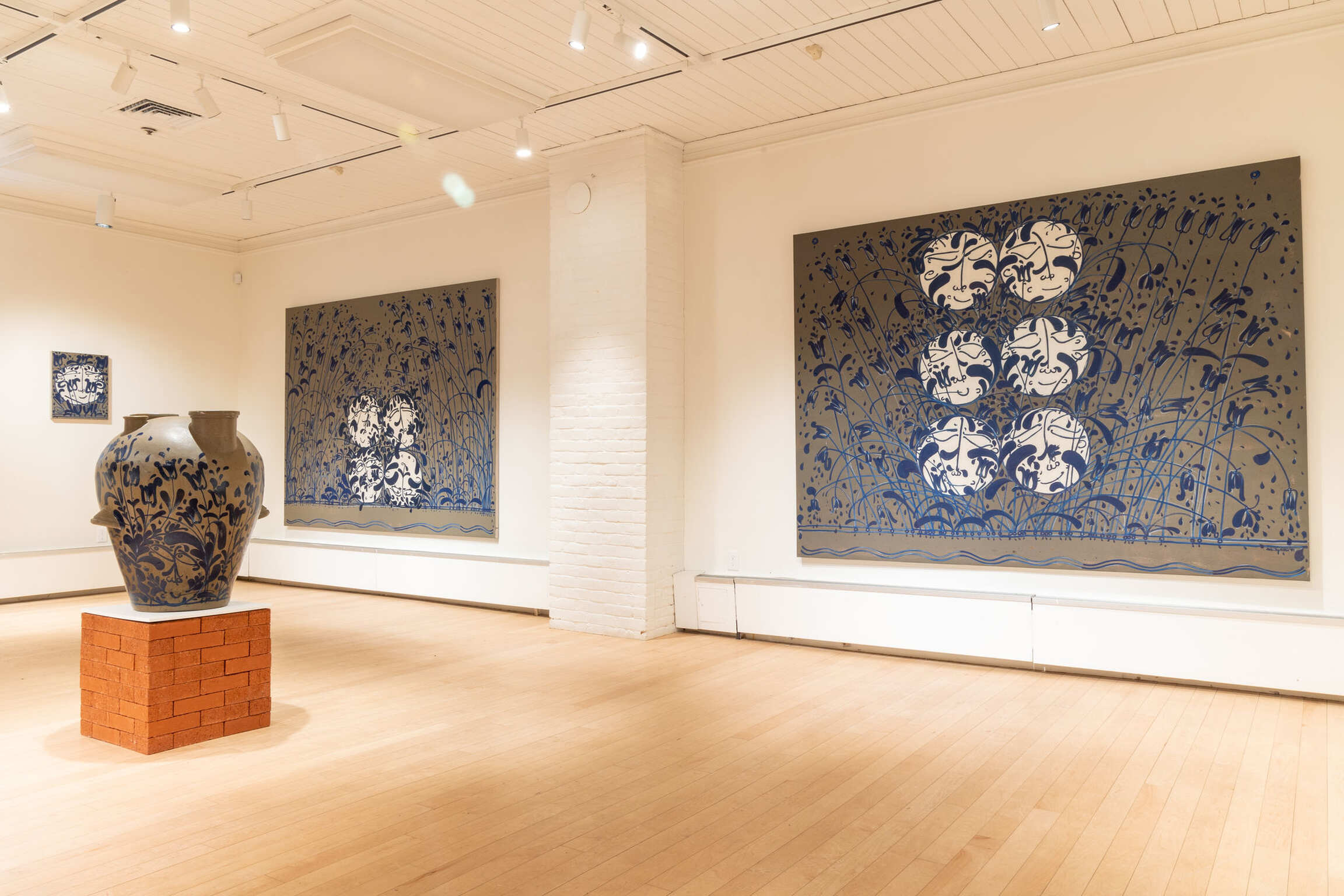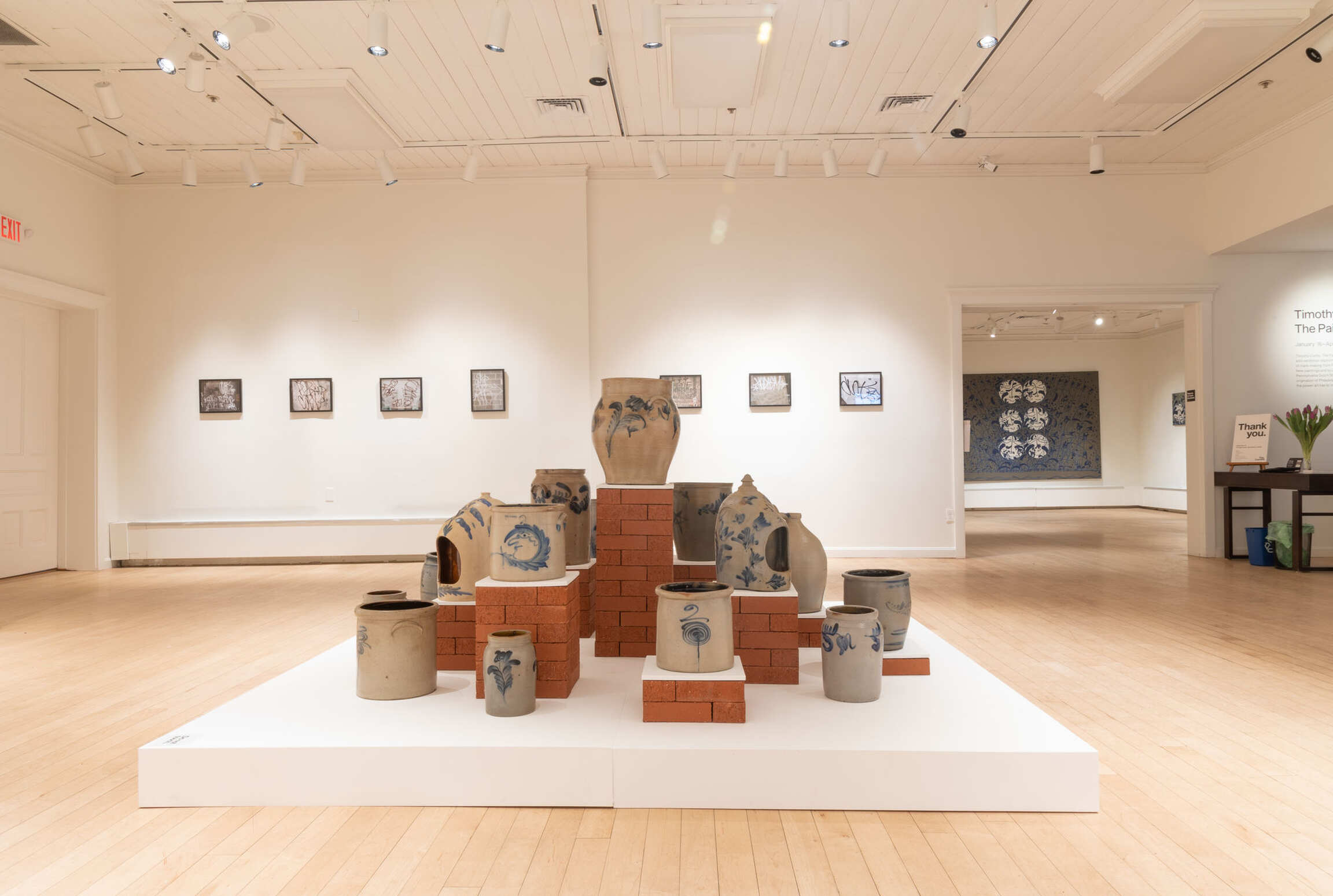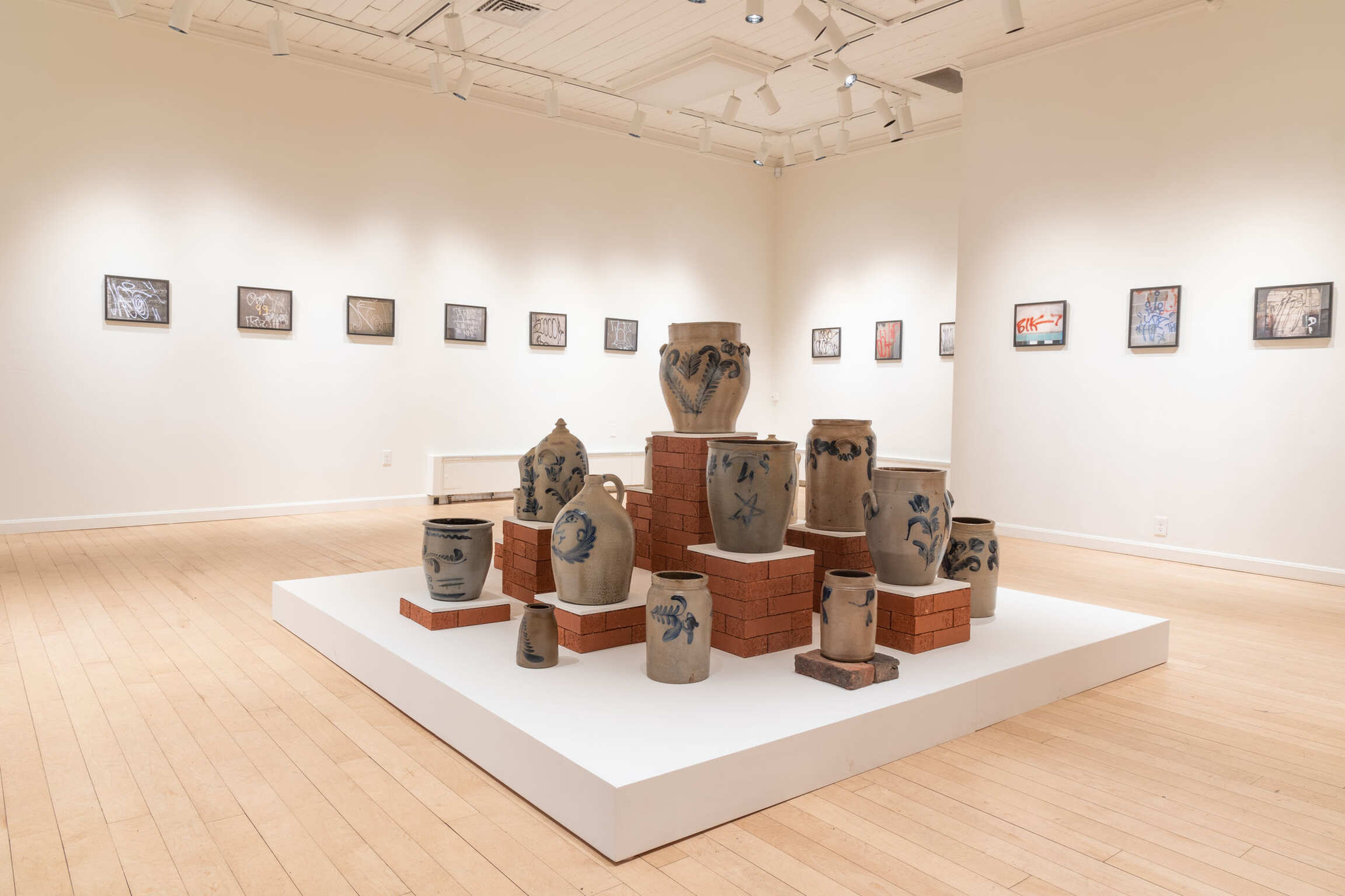 A talented graffiti writer in his own right, this art form has continued to influence his studio practice today. While his graphic use of line and vibrant color appear both decorative and aesthetically joyful, beneath their initial appeal there is more. His practice is the natural continuation of a rich artistic tradition from the region of his birth. Aside from the Philadelphia graffiti that he was surrounded by at a young age, Curtis has also started to recognize another artistic influence on his work, that of the Pennsylvania stoneware of the 1860s. Like the distinctive and regionally specific graffiti of 1960s Pennsylvania, the stoneware of that same region also maintains a visually unique and iconic imagery within the medium.