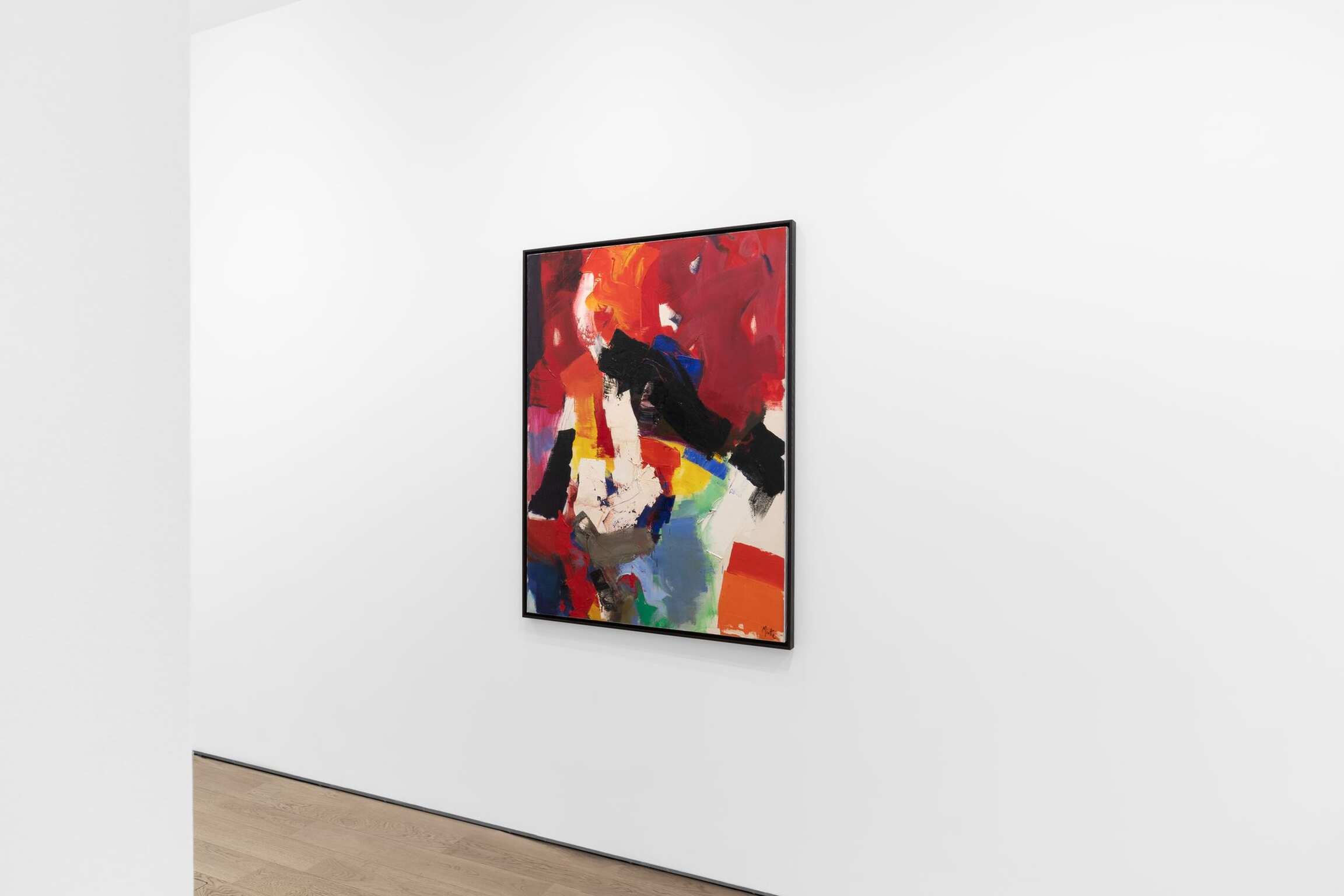 Miotte’s earlier works, like Sans titre (1958) and Diffusion I, (1963) feature densely packed compositions and a substantial facture. His impasto technique was created with a loaded brushstroke or a palette knife. The artist’s mastery of texture gives these works a tangible solidity. There is an exciting sense of movement as blocks of color come together in a dance, reflecting the athletic way Miotte liked to paint.