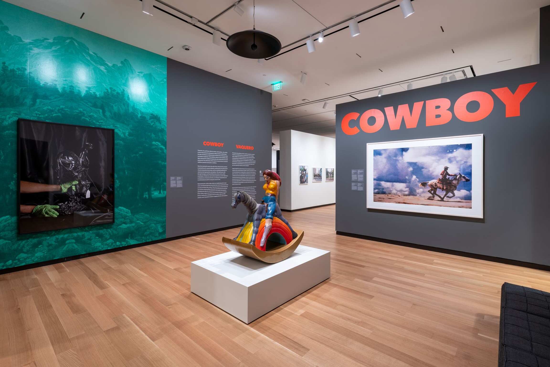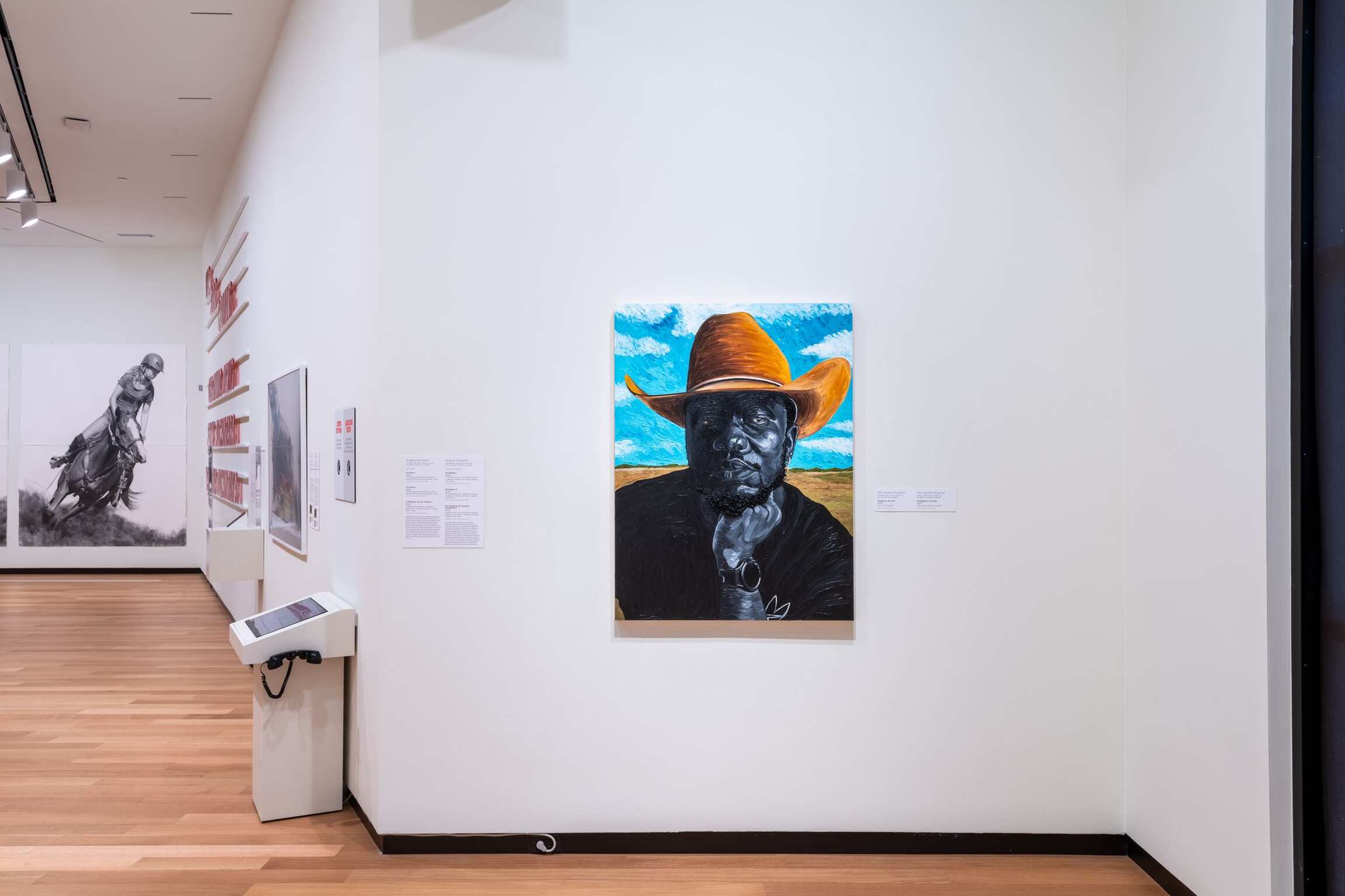 The exhibition reexamines the legend and lore of the cowboy through a new lens, exploring how the myth of the cowboy exists today. Works on view represent a range of perspectives and explore a wide array of themes, including the cowboy’s role in shaping our perception of masculinity and gender, as well as long-held assumptions about cowboys’ relationship to land and the way these assumptions come into conflict with the lived experiences of contemporary cowboys. 'Cowboy' aims to disrupt the homogenous ideal of the cowboy as a White, cisgender American male and showcase the diverse manifestations of this figure across communities, with works spanning a variety of media.