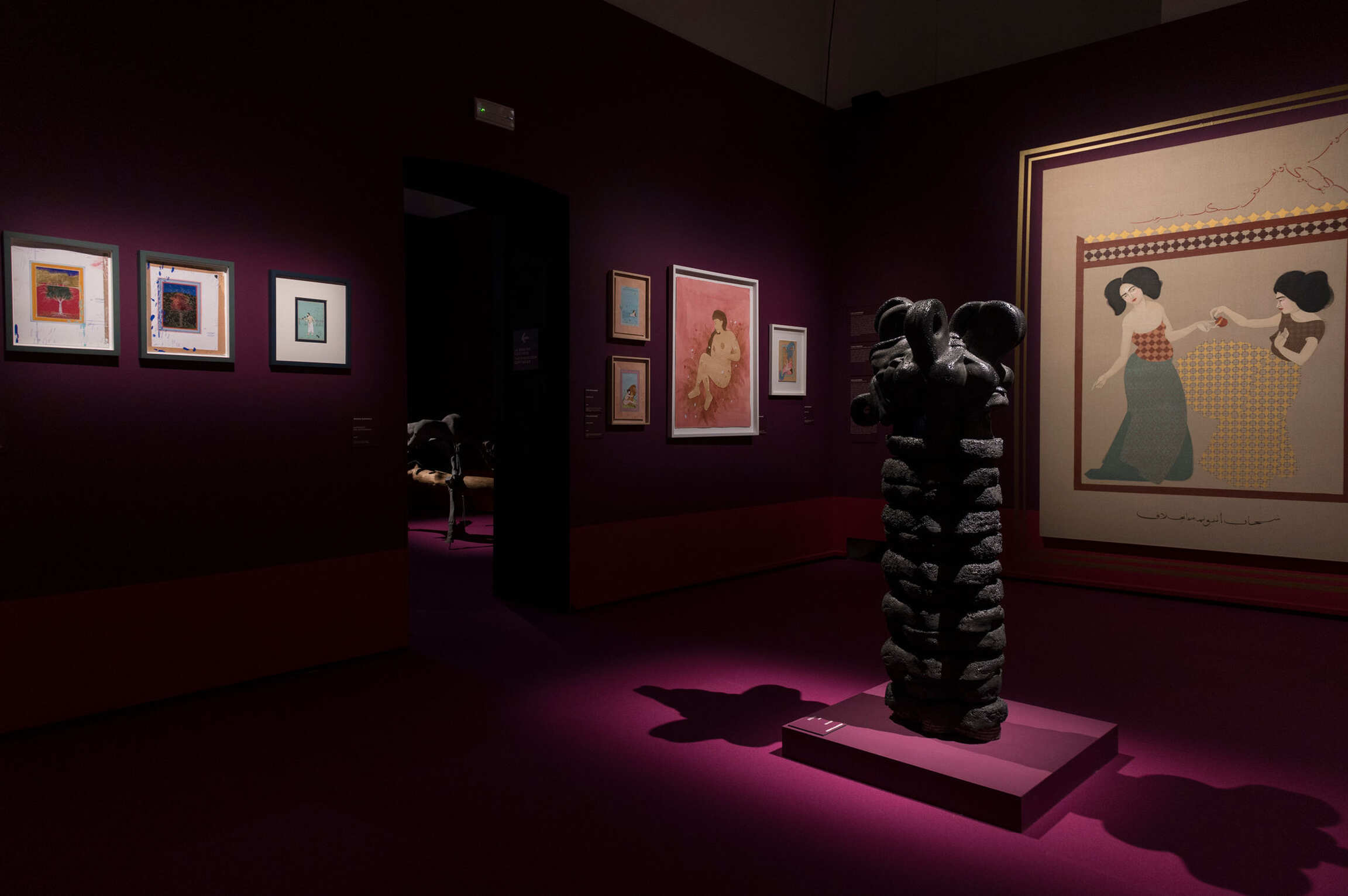 Hiba Schahbaz, uses gouache, watercolour and gold leaf to create intimate compositions that explore femininity and spirituality through Oriental tradition, and Imran Qureshi, with Moderate Enlightenment (2007) and Where the Shadows are so Deep (2016), with Persian-style miniatures, testifies to the actuality of violence.