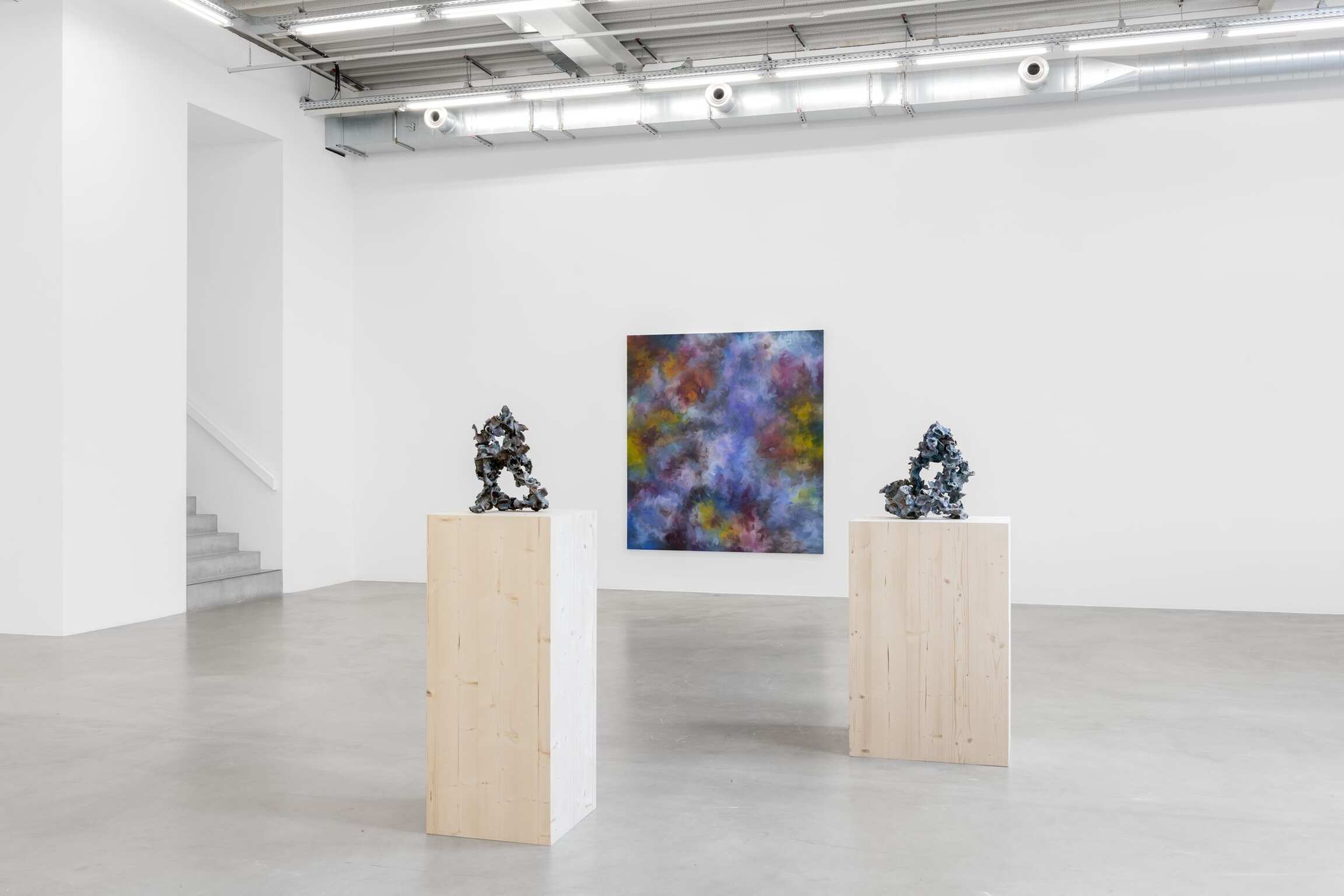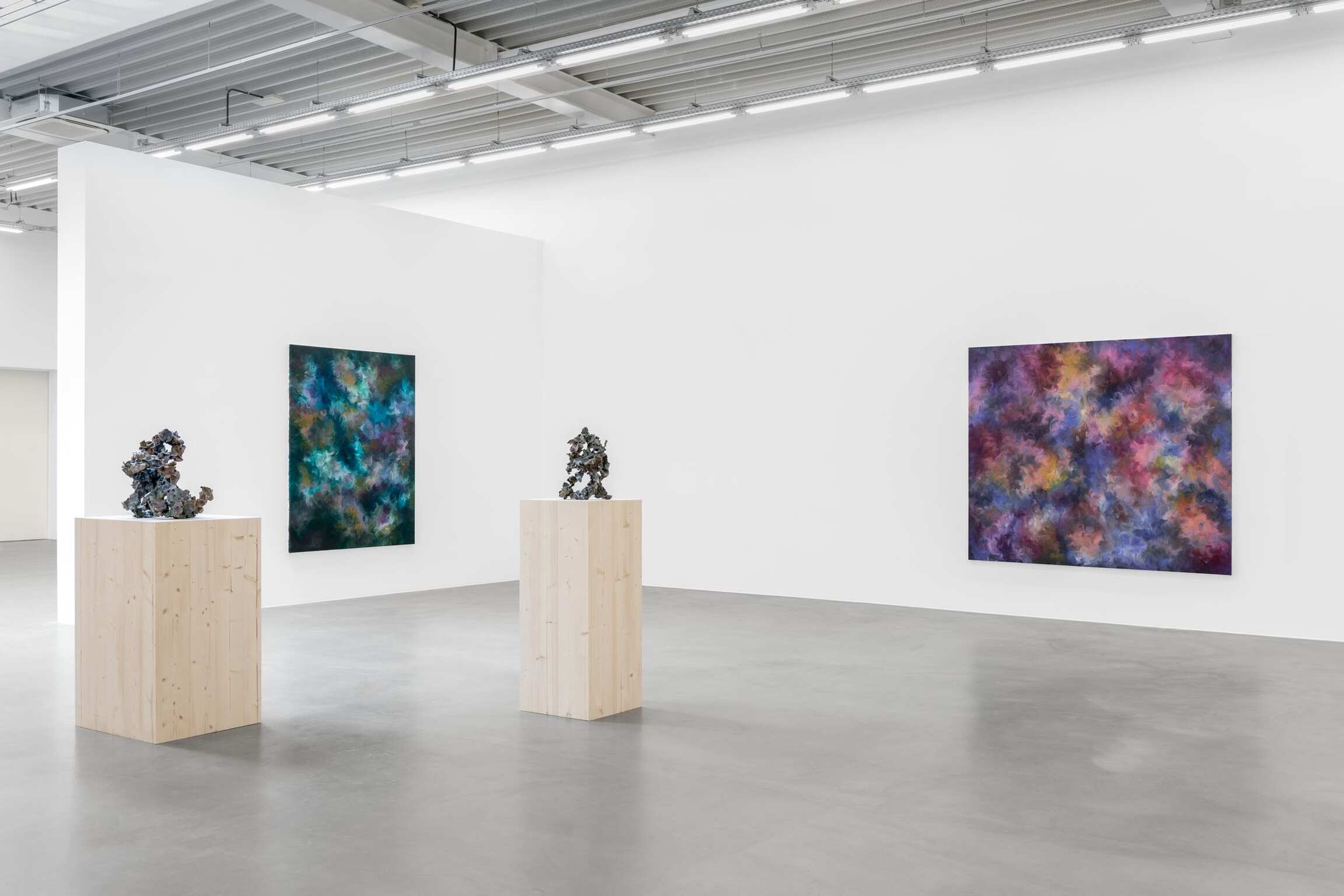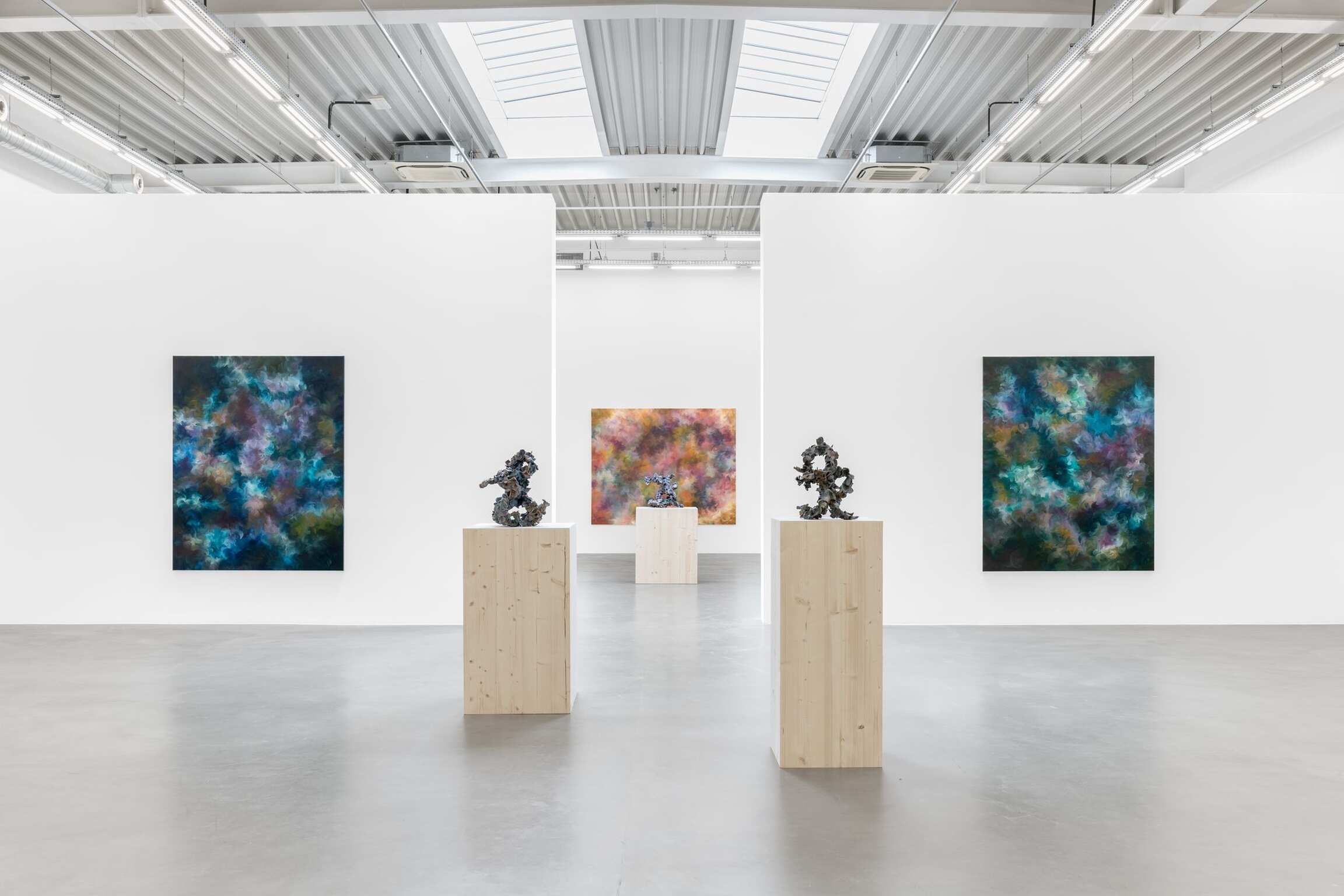 À côté de la peinture, la sculpture a surgi. À côté ou plutôt dans la peinture, tant celle-ci semble en procéder naturellement : métamorphose nouvelle dans un même continuum. C’est la cire, cette matière organique, qui a permis cela : donner forme tangible à ce que crée la main lorsqu’elle s’enroule sur elle-même et entraîne le corps à sa suite. C’est en bronze, aujourd’hui, que la sculpture nous apparait. En bronze « naturel », me précise l’artiste, « avec une patine inspirée du lichen ». Le lichen est ce que l’on nomme un végétal symbiotique : né des noces d’une algue et d’un champignon. Il est ceci et cela, à part égale. Il se répand partout, nul obstacle n’arrêtant jamais sa fécondité à l’œuvre. Il est hybride, traversant et traversé, il crée l’espace en l’ouvrant : il est vivant.
