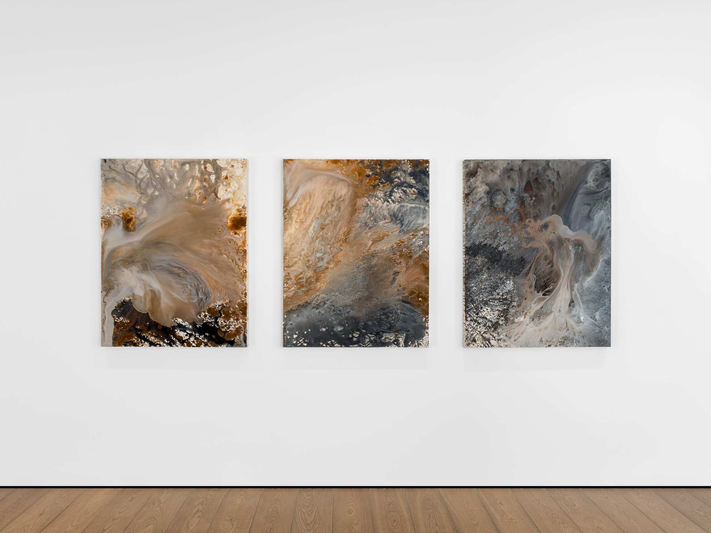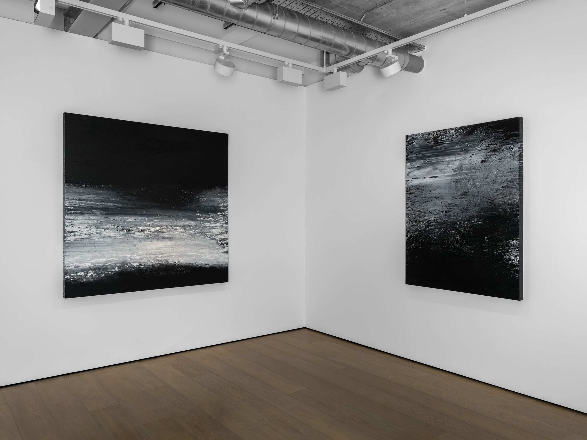 The Shizen exhibition at Almine Rech London features twenty-one paintings created between 2018 and 2023. These recent works, while undeniably contemporary, possess a timeless quality. The exhibition includes both monochromatic works—rendered in infinite shades of black and white—and paintings infused with color. Whether viewed up close or from a distance, each work possesses a staggering beauty, regardless of its scale.