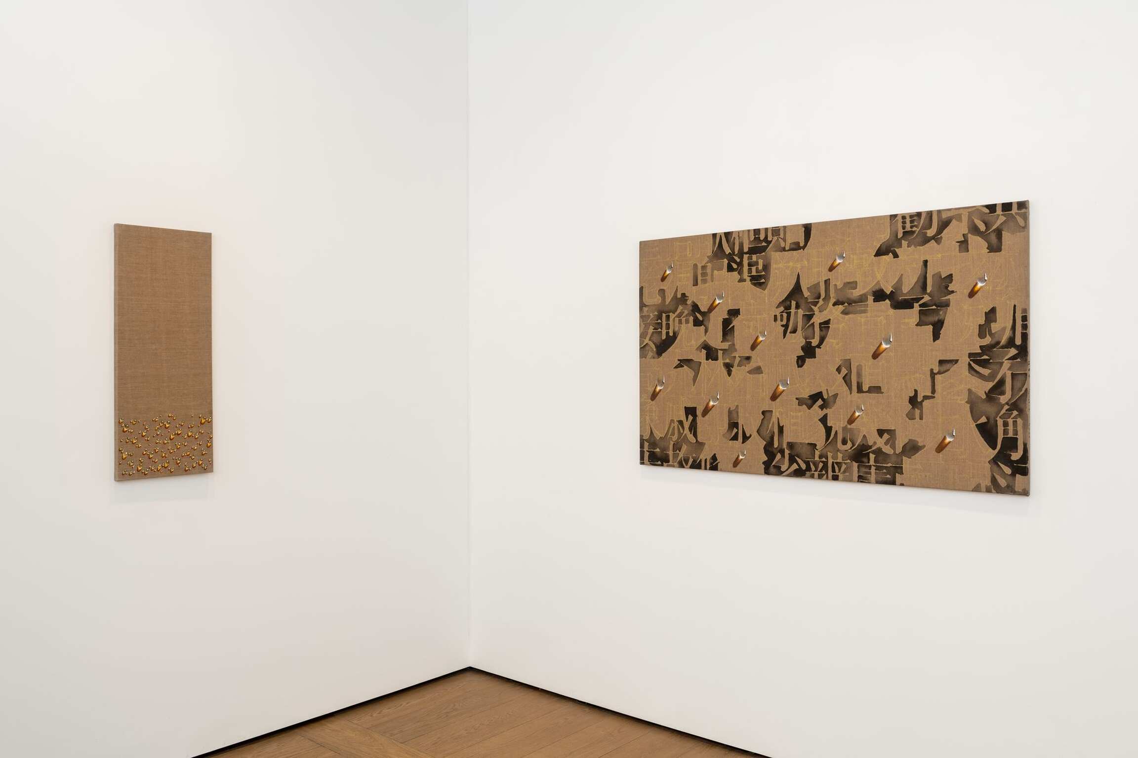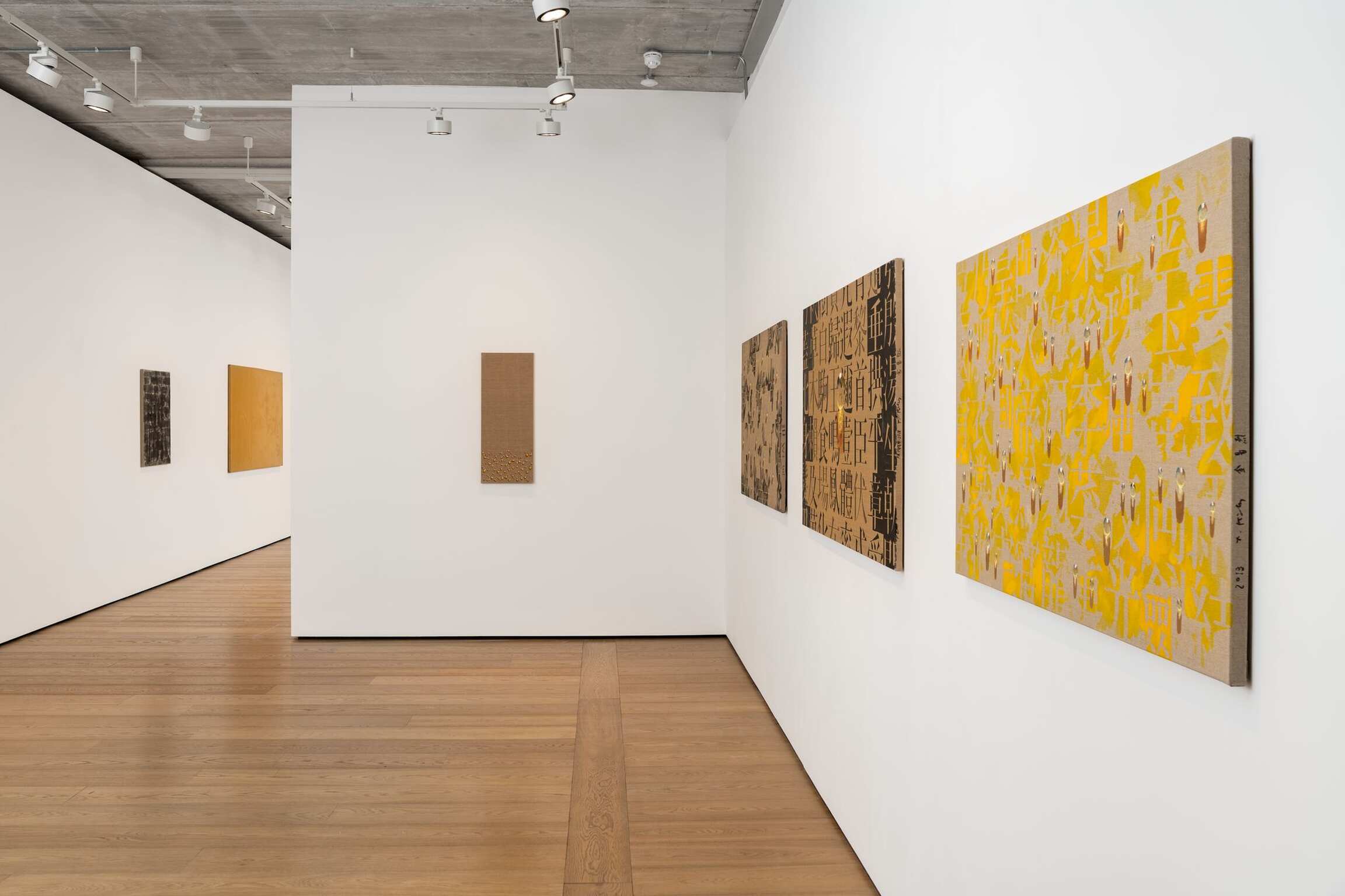 As if sacrificing himself to his chosen form and showing the conviction of a disciple, his dedication is absolute: ‘You do what has to be done with no concept of time, with no concept of finish.’ If time melts away with this form, then Kim’s series should be viewed as one. Kim’s movement through different phases and the fundamental repetition of the form over an extensive period—some 48 years—is to echo the cycles that are fundamental to Zen Buddhism. Clues are found in his titles: Recurrence is just that. This type of work, characterised by a grid background of calligraphic characters taken from the Chinese text ‘Thousand Character Classic,’ ebb and flow across Kim’s oeuvre. His work with newspaper is similar, as are his Decomposition pieces. Working in a cyclical pattern, Kim’s styles are picked up, put down, and revisited.