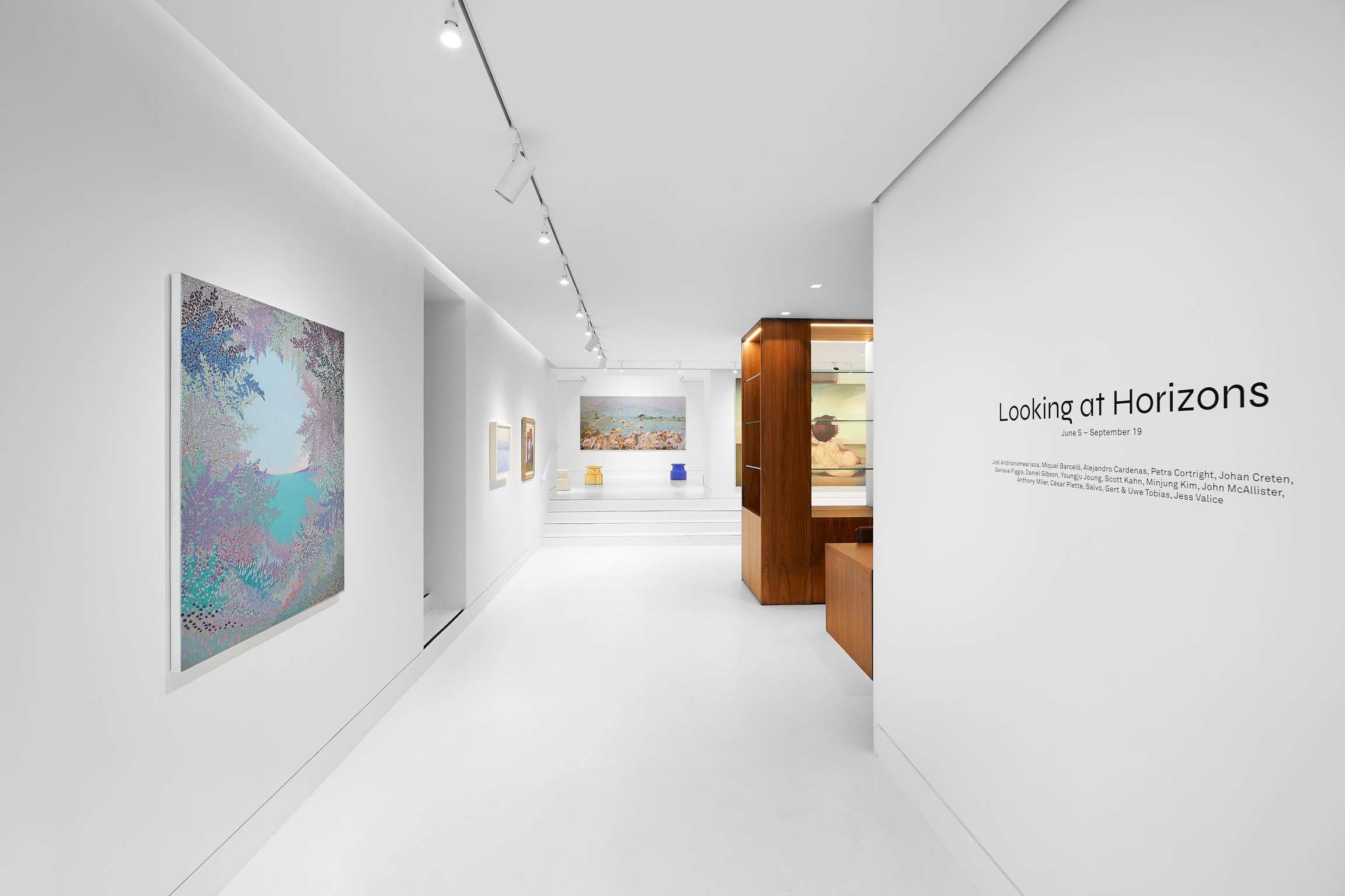 À l’occasion de l’exposition 'Looking at Horizons', la galerie Almine Rech Monaco explore les manifestations contemporaines de la peinture de paysage autour d’oeuvres de Joël Andrianomearisoa, Miquel Barceló, Petra Cortright, Johan Creten, Genieve Figgis, Daniel Gibson, Youngju Joung, Minjung Kim, John McAllister, Anthony Miler, César Piette, Salvo, Gert & Uwe Tobias et Jess Valice. Par la diversité de leurs inspirations et de leurs recherches, ces artistes rappellent que le paysage est un genre pictural complexe qui interroge autant la réalité physique d’un territoire que le regard que nous y posons. À l’heure des grands défis climatiques, ils nous invitent à observer le vivant avec curiosité, délicatesse et attention, car le paysage est une fenêtre et un miroir dans lequel se reflète l’histoire de notre relation à la terre, nos préoccupations collectives, et la condition de la peinture elle-même. Hommage aux paysages grandioses de la Côte d’Azur, célébration d’une peinture contemporaine audacieuse, « Looking at Horizons » est bien plus qu’une ode à la nature, c’est une invitation à la regarder mieux.