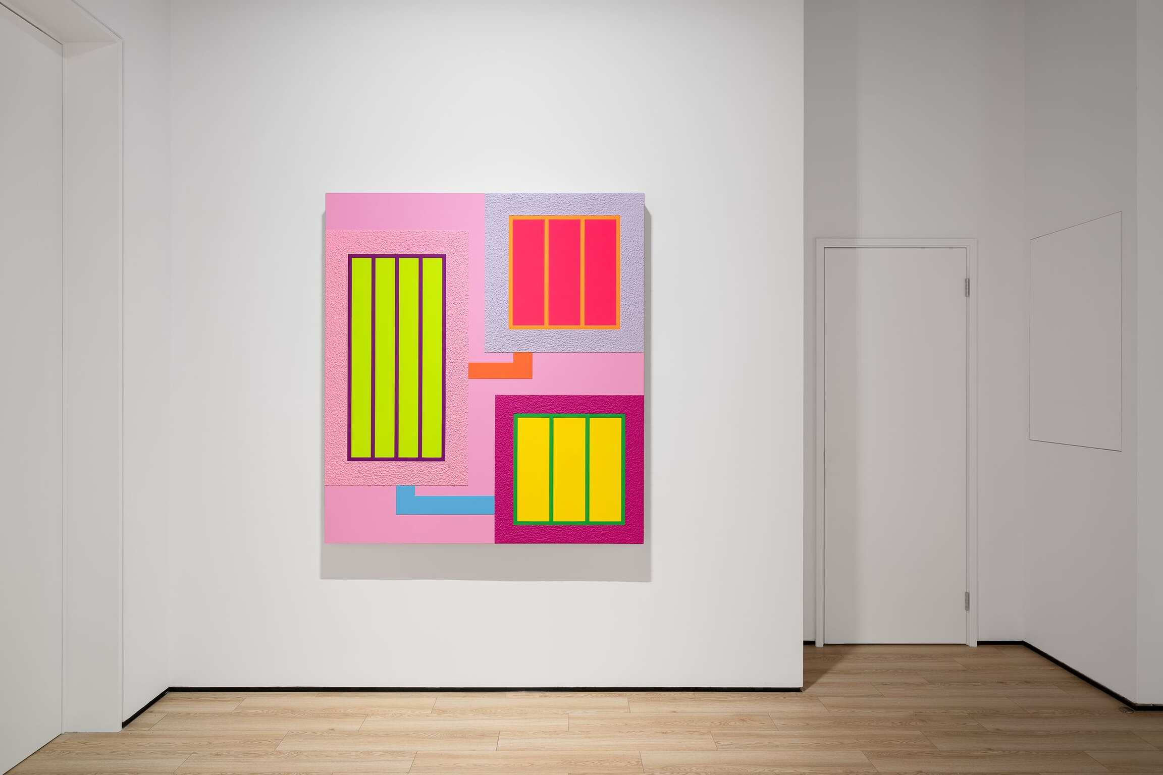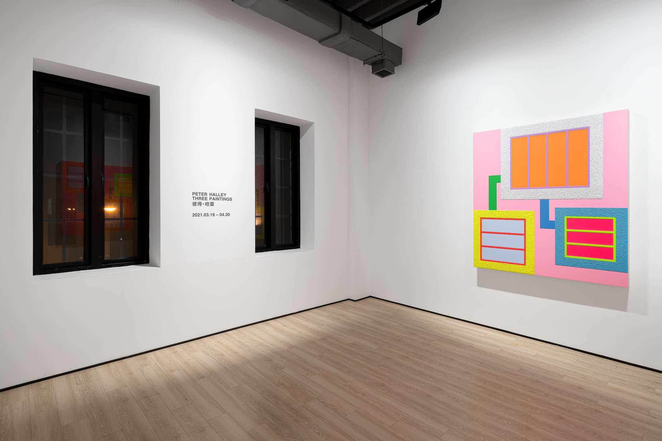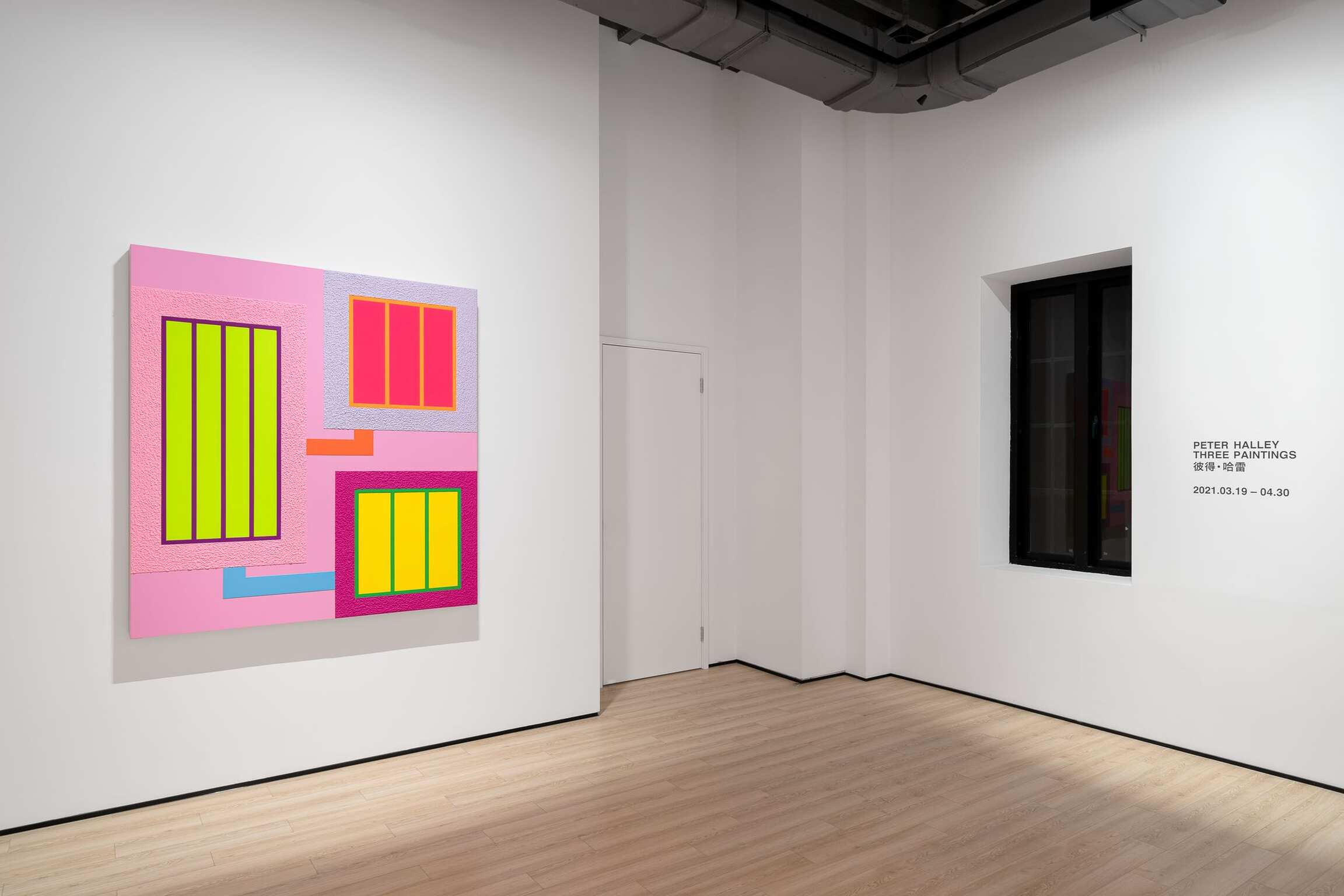 The exhibition is composed of three new paintings of the same theme, style, and dimension, completed in 2021. The new paintings are a continuation of the themes that have preoccupied Peter Halley for the last 30 years. Grids and windows constitute the morphology and visual motif of the composition. However, these paintings of grids and windows are neither perspectival in the classical sense, nor are they autonomous based on the discourse of modern abstraction. According to Rosalind Krauss, in the classical narrative of modernism, grids are “anti-natural, anti-mimetic, anti-real”, serving as a paradigm for the “anti-developmental, the anti-narrative, the anti-historical”. But in fact, the same grids that function to resist the invasion of discourse are producing new discourses at the same time. “The grid's mythic power is that it makes us able to think we are dealing with materialism (or sometimes science or logic) while at the same time it provides us with a release into belief (or illusion, or fiction).”[i] Halley’s grids and windows are located precisely in the point of intersection between “negation” and “creation”.