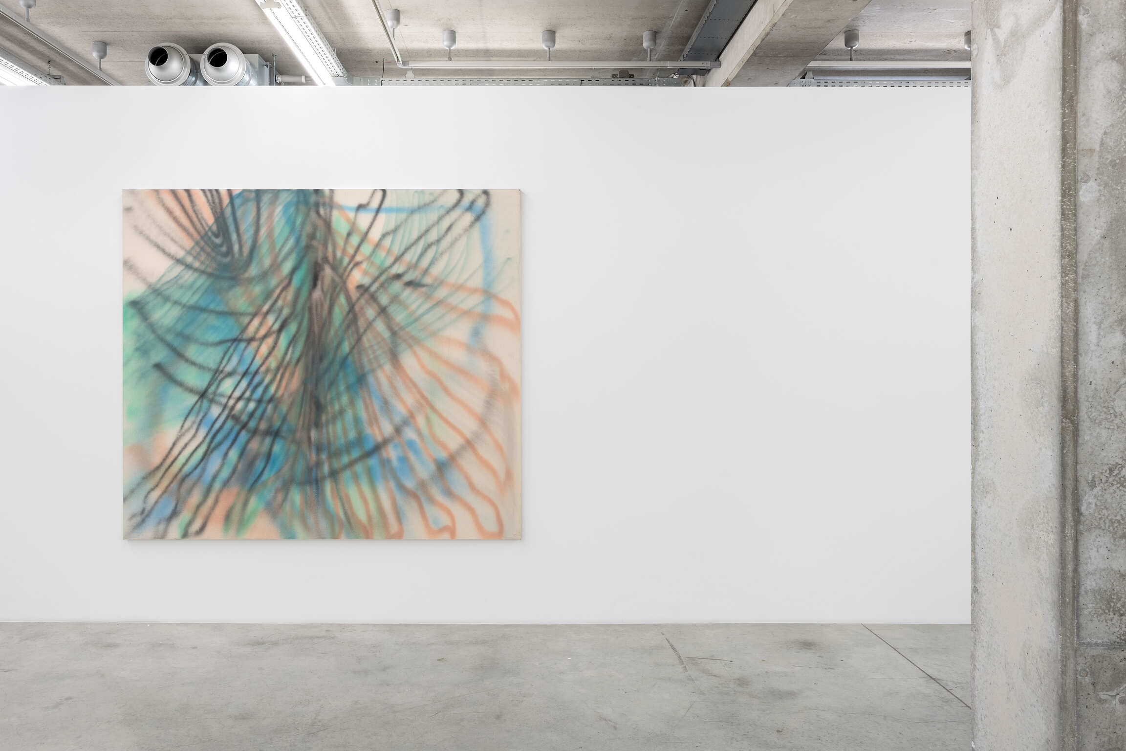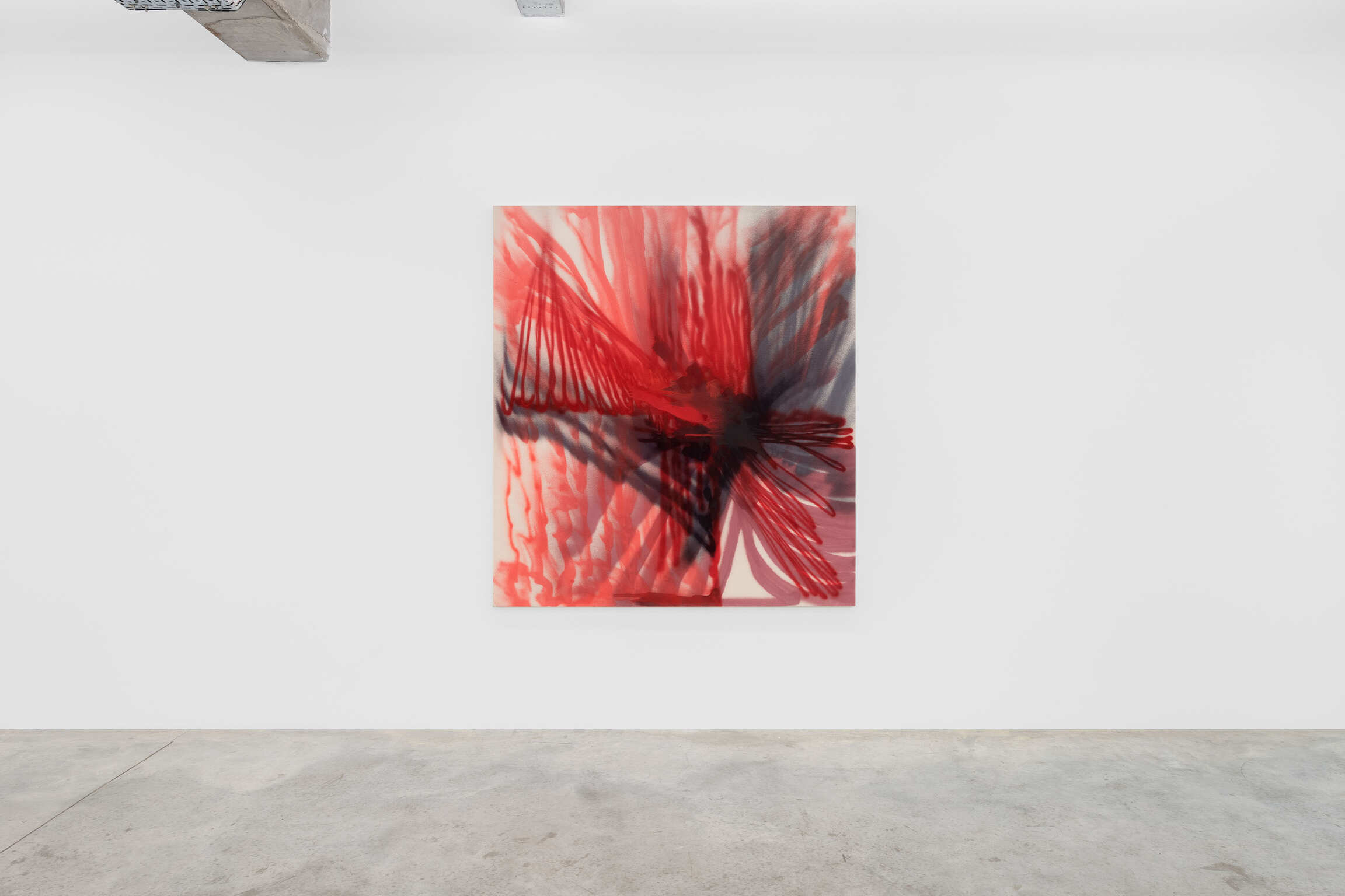 Andrea Marie Breiling makes us witness to her physicality while simultaneously inviting us to experience our own. Building multiple, cross-hatched layers of spray paint, she brings phantasmagorical gestures and shapes to life across the surfaces of her work. Her brush-free approach allows her to render wide forms filled with a frenetic energy that is as emotional as it is physical, as seen in Shifting Dunes, 2021 or Under the Bridge (Downtown), 2021.