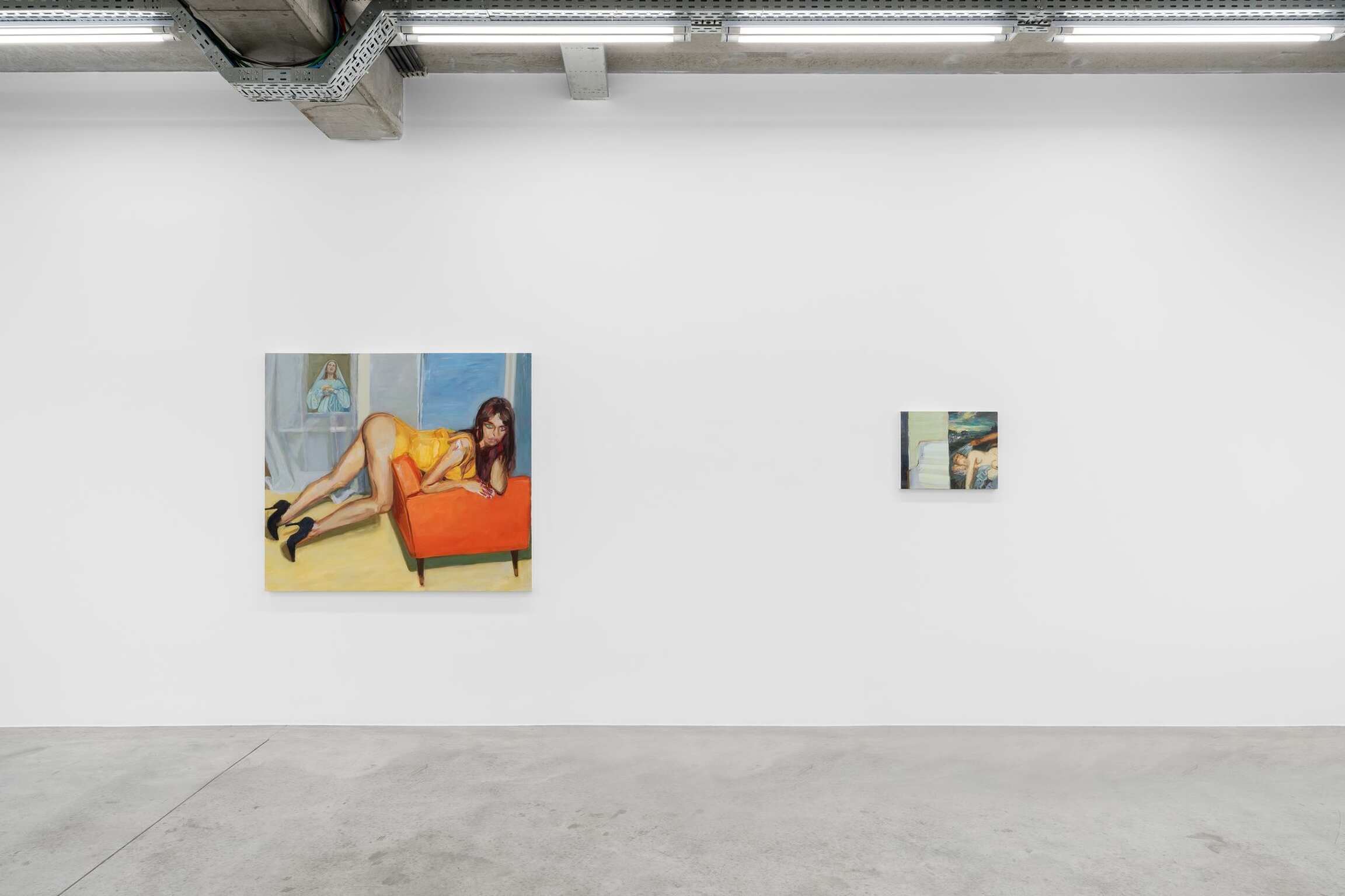 Within the panorama of painting, Janet Werner explores the Western representation of women. By establishing correlations between fashion photography, art history, and contemporary painting, she reveals both its oppressive and liberating aspects. “This can be considered a loss of power, but it can also be considered a source of autonomy—that a woman can be folded into herself and open herself up again.” The paintings express a continuity of stereotypes and gender assignments: whatever their situation, position, or clothing, women are and will always be reduced to desirable and detestable archetypes. Let’s not forget that we’re talking about the condition of women, the condition of their lives (of our lives), and therefore by extension conditioned lives, subjected to tyrannical expectations, obsessions, laws, or fears. By deconstructing the referents of the images, considering the mental dimension of the subjects, and recontextualizing their bodies, Janet Werner tries to distort and unpack the representation of women, extracting a troubling and joyful plurality.