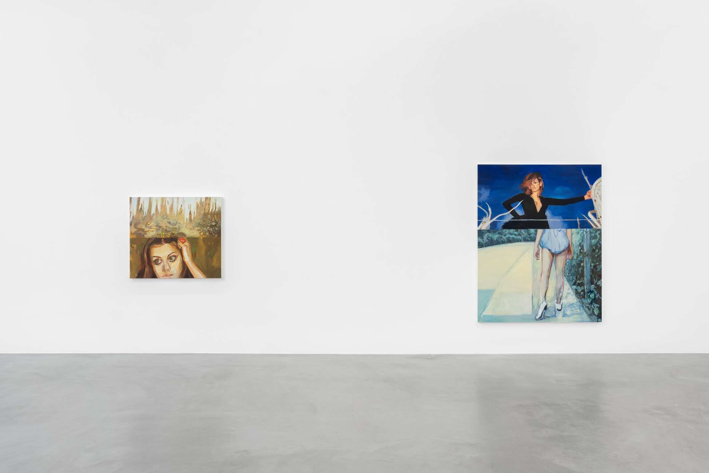 Hell and Happiness combines paradoxes to make visible a set of feminine archetypes in our collective imagination. Janet Werner paints figures including a dancer, an adventurer, a nymph, witches, a middle-class woman, a princess, a model, a madwoman, a woman-child, an object of desire, a tease, a Madonna, a femme fatale, a quiet, well-behaved woman, a dreamer, and a monster. Concerned with complexity, the artist alternates active bodies and passive ones. Within these portrait-landscapes, there is a gray area that comes through in the treatment of the eyes. Most of these women have their eyes wide open. They look at us in paradoxical ways: with wariness (a combination of intimidation and danger) or with immense melancholy. Other portraits depict them with their eyes closed or from behind. The look in their eyes escapes us because of their refusal. Janet Werner explains: “I still think of the portraits as being about subjectivity, though, and they are meant to recuperate an idea of interiority, the idea of an inner world or worlds being manifest through the representations of the body. [...] I identify the sense of violence or shock, the obliteration or folding, with metaphors about interior life, life history, trauma or some sort of narrative action that takes place within.”