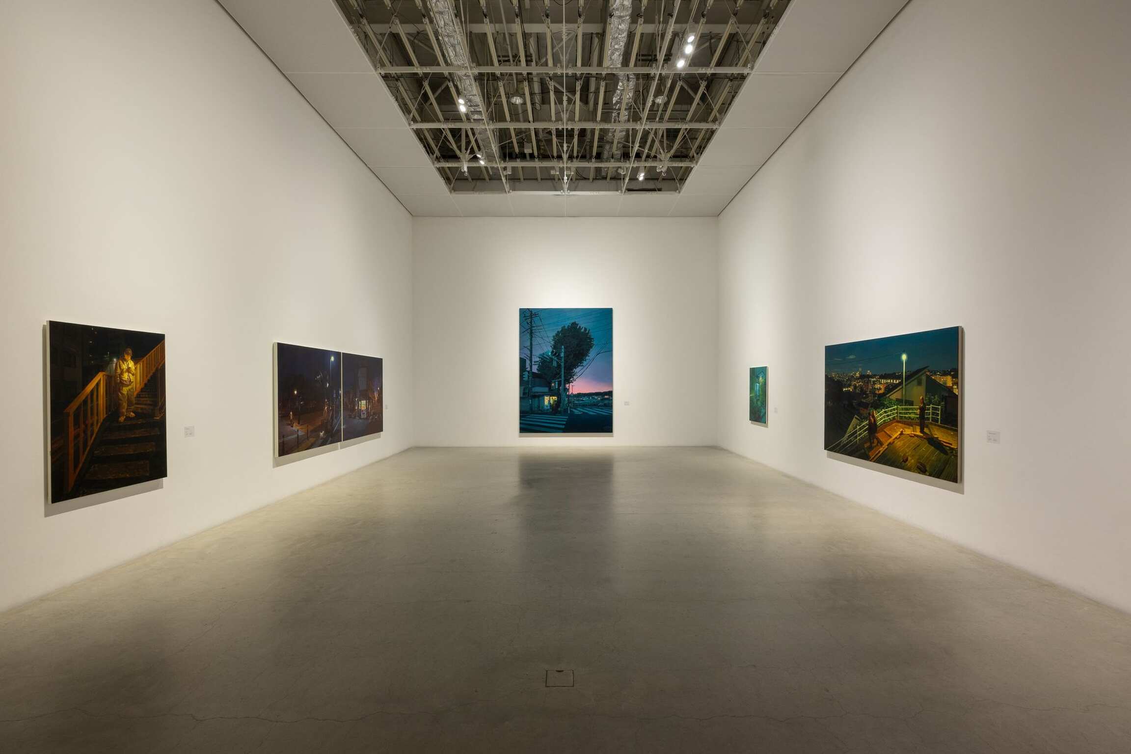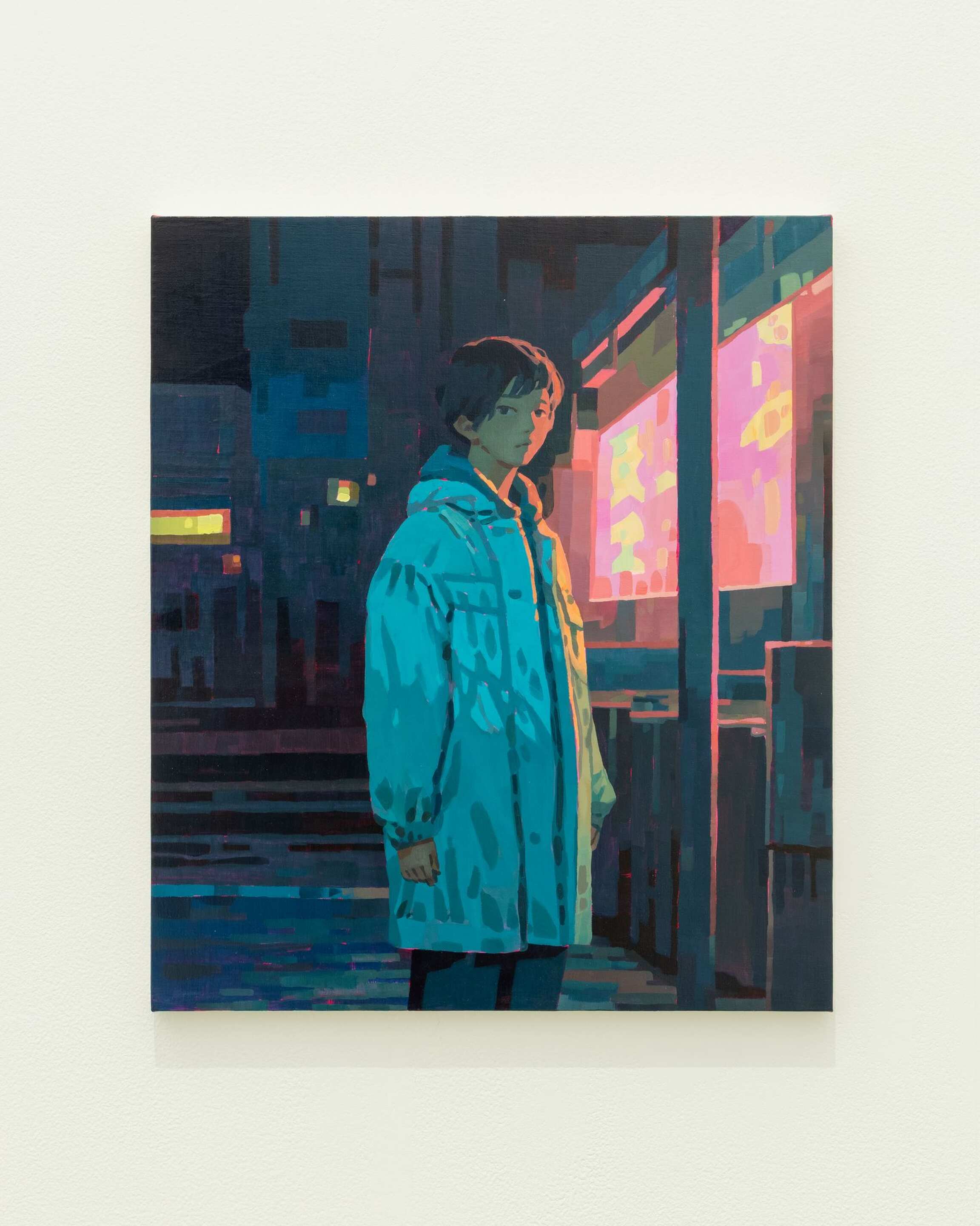 Keita Morimoto (1990-) immigrated to Canada at the age of 16, and has exhibited his works mostly in Canada and elsewhere overseas. Morimoto chose to study classical painting techniques, and his unique depictions of contemporary urban landscapes leave a strong impression on the viewer. He has a strong interest in how “light,” which has been an important issue in painting since the modern era, is represented, and his depictions of artificial light from street lamps, billboards, and vending machines imbue his paintings with a lyrical atmosphere. Morimoto also creates collages from photographs of people and landscapes that have been taken separately, before proceeding to reconstruct them with paint on the canvas, an approach that confers a kind of anonymity onto these people and landscapes. The spaces and people depicted in these works occupy a kind of boundary between fiction and reality: while it seems as if they might exist everywhere, the reality is that they cannot be found anywhere. Viewers are drawn into these works, which leave some room for their memory and imagination. Morimoto’s work follows in the lineage of Edward Hopper and Peter Doig, artists that he has openly stated as influences. It represents an attempt to demonstrate how the contemporary city can be portrayed. Faced with these seemingly familiar landscapes and people, where reality and fiction blur into each other, we superimpose our own emotions and memories onto them. Through Morimoto’s works, this exhibition will provide an opportunity for each viewer to reassess their own reality and everyday routine, and to reconsider the power of painting as a format of artistic expression.