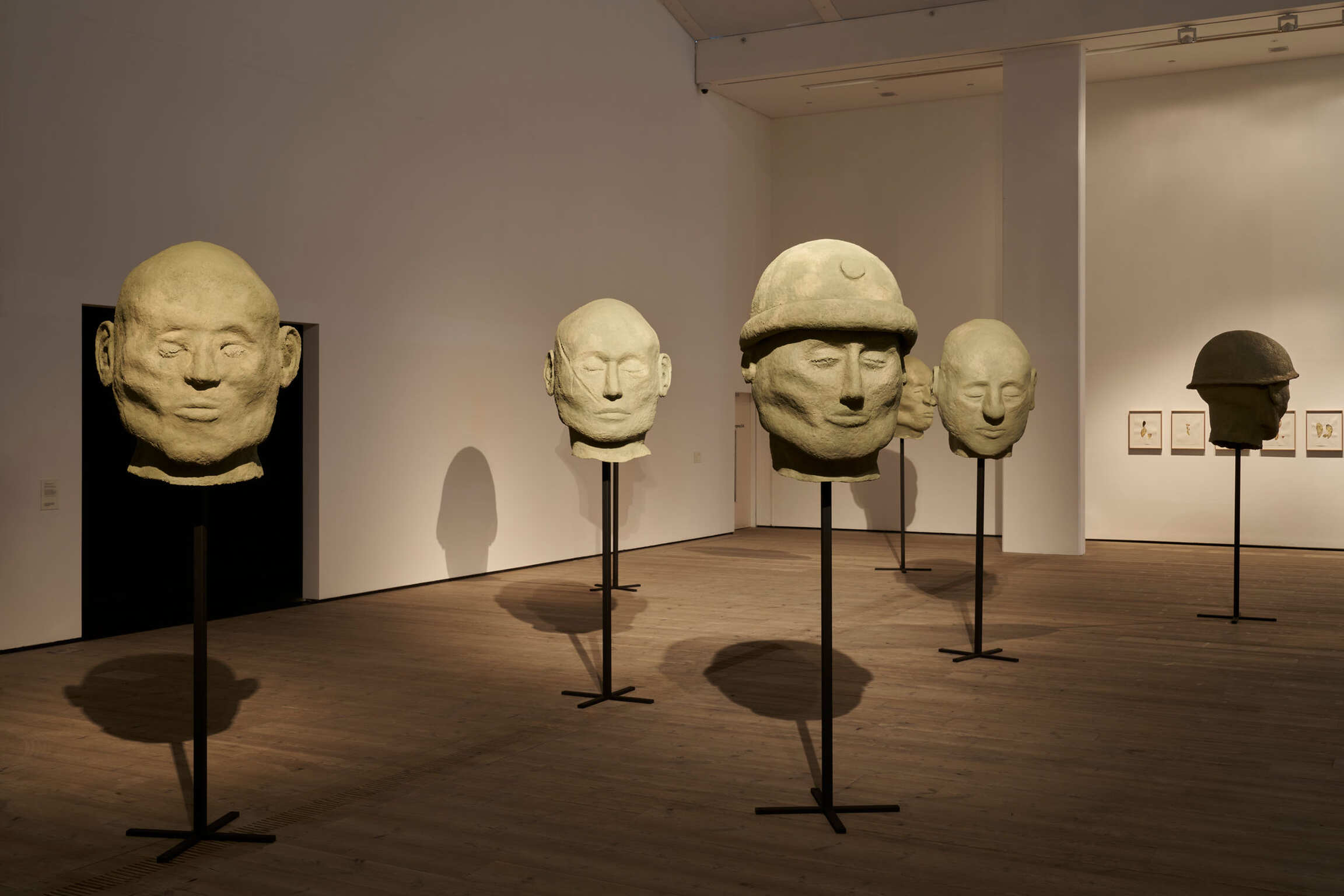 The expanded exhibition at Baltic will also bring together additional works including the artist's acclaimed short film The Watchman (2023). Set in Cyprus, The Watchman reflects on the tensions around the military division line that separates the Greek and Turkish communities. It centres on the figure of a soldier who mans a watchtower looking out for 'the enemy'. Weary from his long shift, the soldier inhabits a space between wakefulness and sleep where peculiar things start to happen. In a related sculptural work The Seven Soldiers, a series of oversized heads are caught in a perpetual state of slumber, their haunting expressions resembling the ghostly figures that appear at the end Cherri's film.