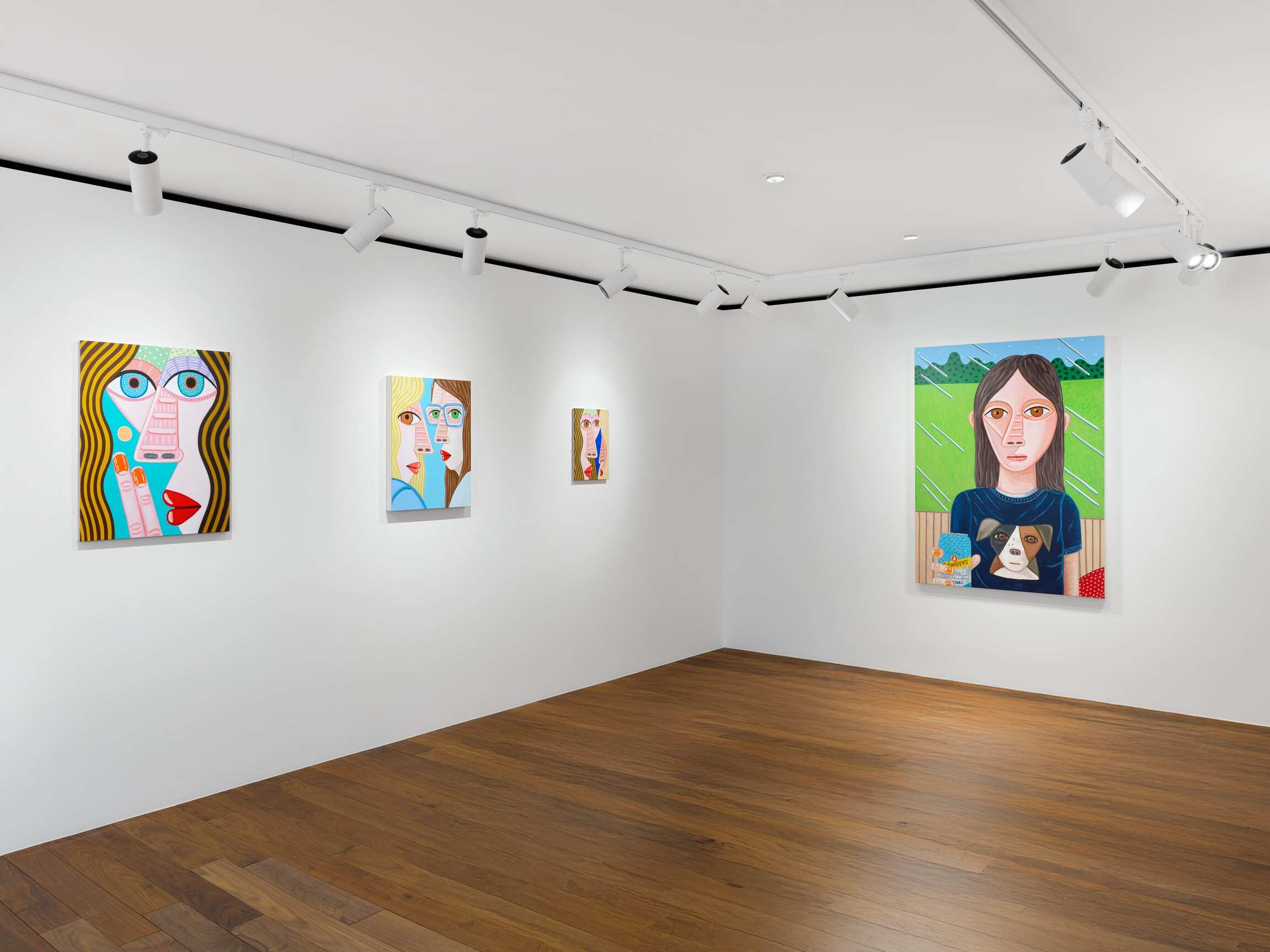 In the long list of writings about painting, there are few phrases as clever and catchy as the one coined by Maurice Denis in 189011. Nowadays, as we stand at the other end of the long and turbulent history of artistic modernity, it deserves to be slightly reformulated in order to align with our customs. But once this has been done, it turns out that it remains strikingly relevant to Brian Calvin's painting. Before being representations of young socialite women, influencers attempting product placement, or generational emblems of an overconnected present, his paintings are first and foremost flat surfaces covered with colours assembled in a certain order. In these gatherings of well-groomed faces, cropped to varying degrees depending on the painting, we seem to recognise an analogy of digital communities. We seem to recognise a pop image from everyday life in a soda can, a T-shirt, or a pair of oversized glasses. But these are red herrings. Brian Calvin likes to emphasise the constructed dimension of images, breaking with the internal logic of painting. And that is the primary purpose of the soda cans, glasses, T-shirts, lipsticks (whose shade and brand we could probably identify), and all the images incorporated into the composition in the form of visual micro-events. Rather than relating the painting to the outside world (Western, industrialised, connected), they open a breach in representation. 'When you work with images, that's people's starting point. It's really hard to look at faces nowadays, especially when they're cropped, and not think about image overload or social media. This interpretation is often applied to my work, and I don't think it's wrong. But it's simply not my starting point; in fact, it's the part of my work that puzzles me the most,' explains the painter, who is more likely to cite the 'icy quality' of Piero della Francesca's paintings as a source of inspiration than the great American pop tradition.