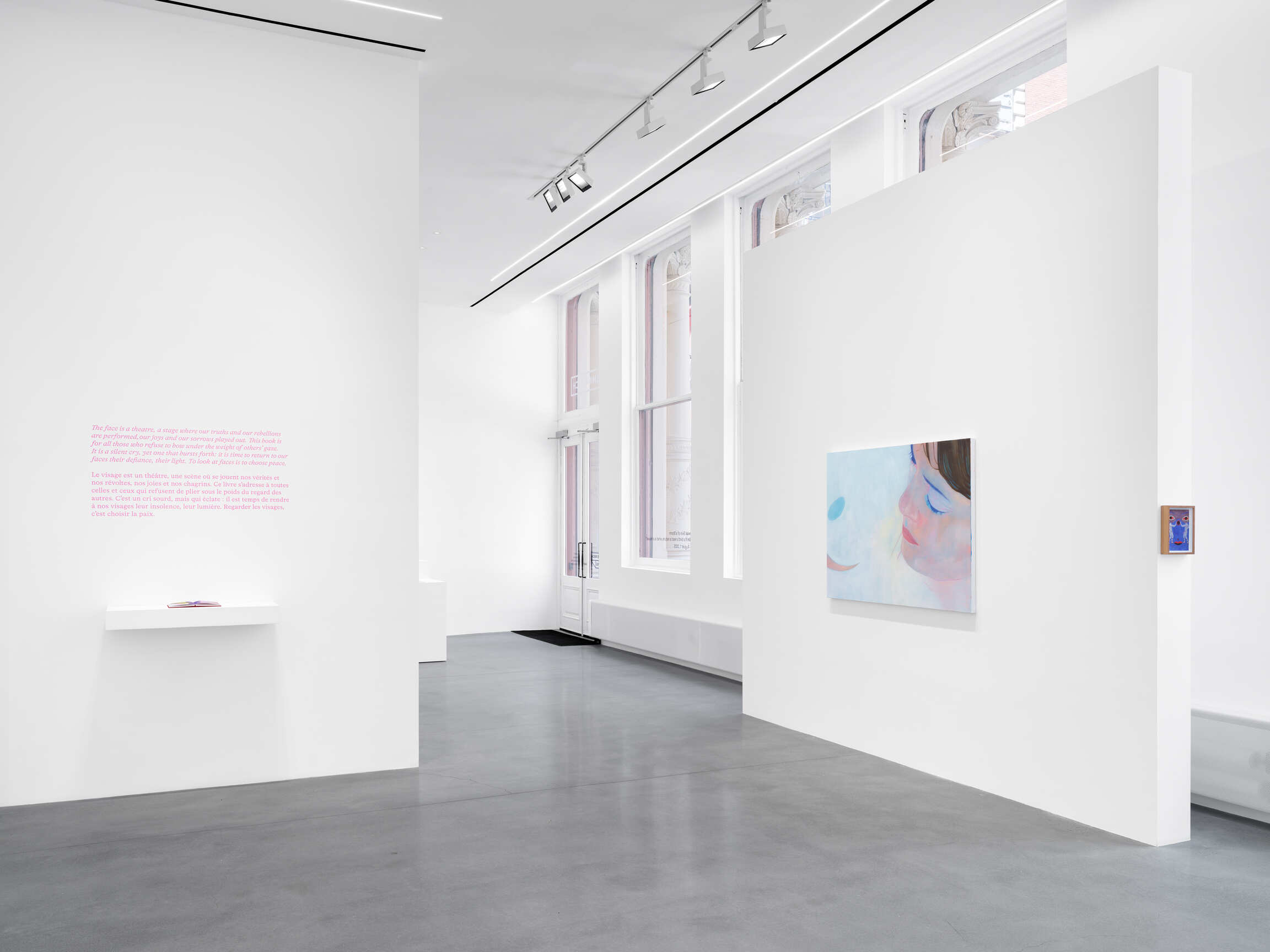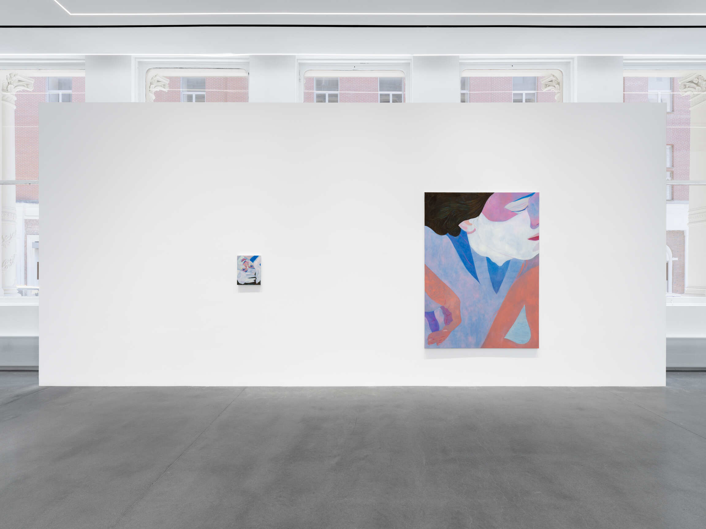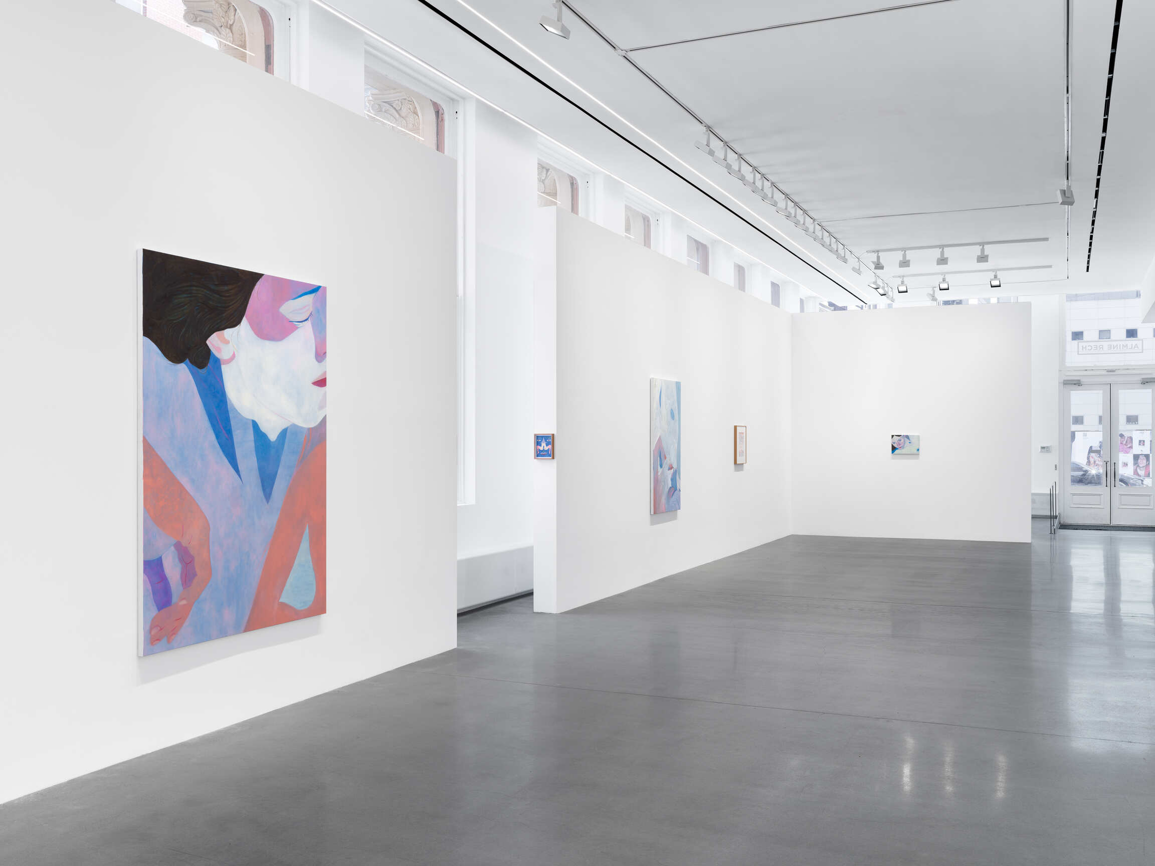Inès Longevial's oil paintings draw attention to the skin, layered in seemingly smooth swatches of ultramarine, crimson, slate, chantilly, and mauve. These self-portraits—composed mostly from memory, informed by a repository of textures and forms consulted prior to their emergence—are a method of situating the artist in herself and the world. They are painted with urgency and oftentimes completed in one sitting. In this flow-state, the female form becomes a surface littered with subtle footnotes, like an odd wrinkle in a pleated skirt or the deep crease of a dog-earred page. A cropped face with down-turned eyes, a punctuated nipple, and a scapula blooming like an iris are, at a distance, totemic. The stoic sitters are disassociated, fermented. Upon closer inspection, hot-pink contour or blankets of honey light, feathered by the dry bristles of the artist's paintbrush, generate a supple, saturated landscape. Longevial offers an extreme perspectival shift through her impulsive markmaking upon the skin, often surprising herself. Her own experience living with myopia (extreme nearsightedness) is relayed to the viewer with grace, transforming skin into a woven surface, a microcosm, within the seemingly smooth composition of each painting. Wrapped in the tangible shimmer of the surface, unconcerned with matching the eye of the viewer, Longevial's sage subject is unconcerned with the viewer's yearning to define, place, or ingest her.