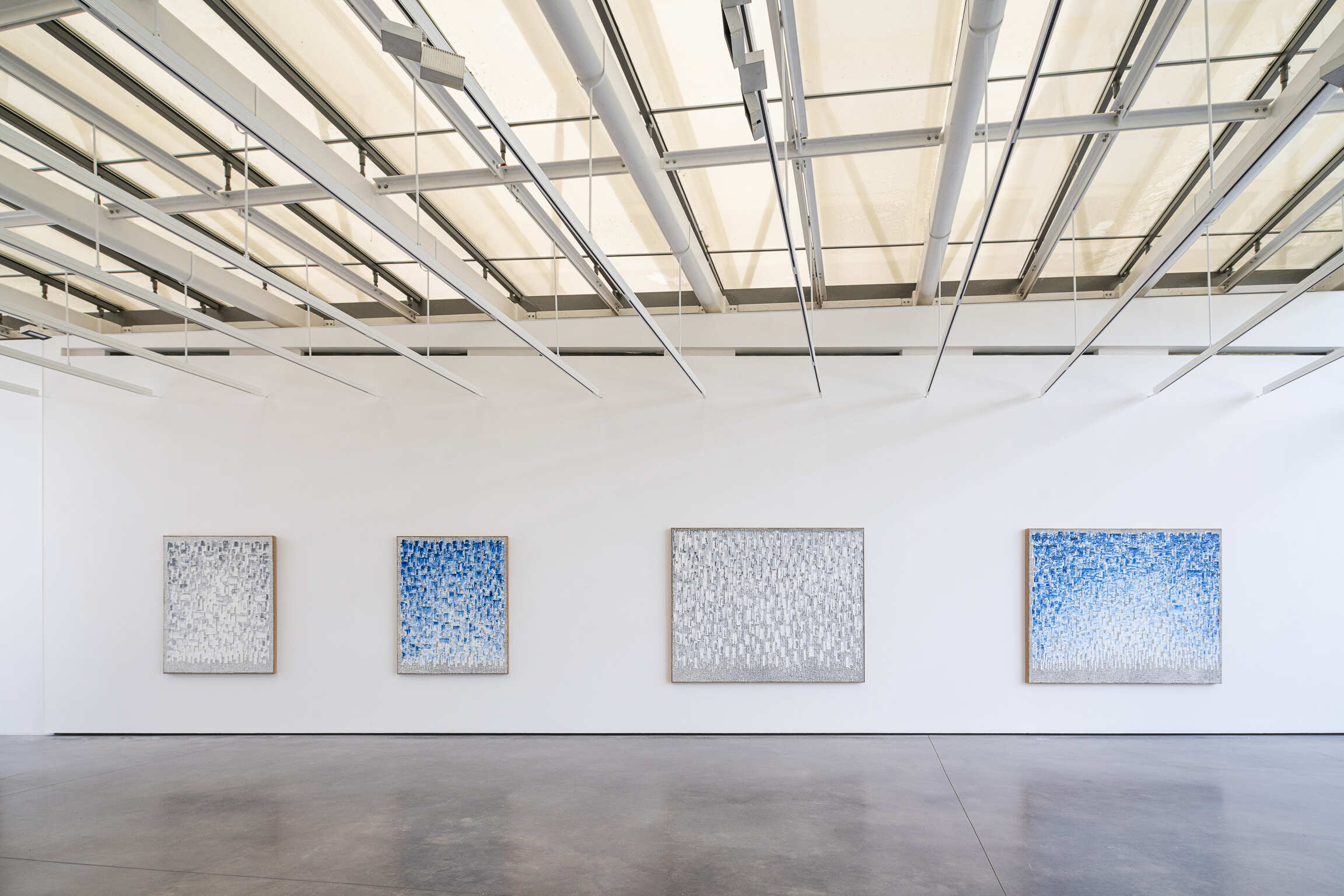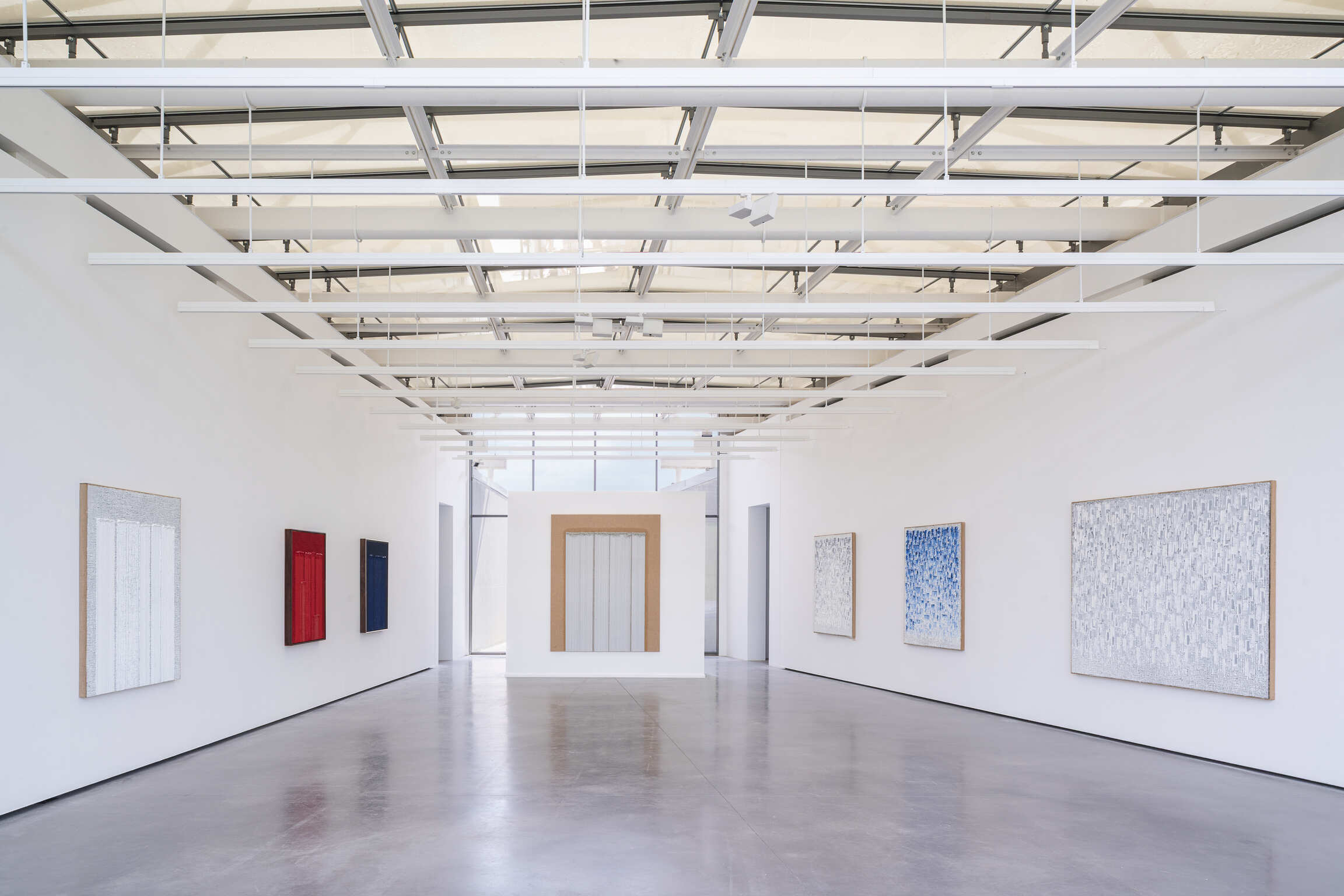 With the “Conjunction” series now over fifty years in the making, Ha continues to experiment with technique, developing processes such as holding a flame near his canvases and allowing the smoke to saturate the wet paint to create subtle effects of light and shadow. He has also introduced vivid colors such as red, blue, and vermillion into his palette. Provence’s famed landscape has inspired painters to experiment with color and light throughout the history of art. This year, as the region celebrates the enduring legacy of Cézanne, we invite viewers to examine Ha’s meditative work within this tradition and in interplay with the expansive views and natural light of the Renzo Piano Pavilion gallery.