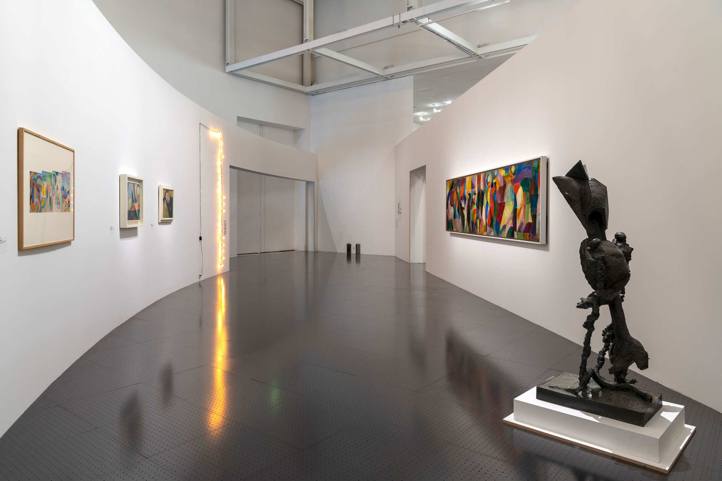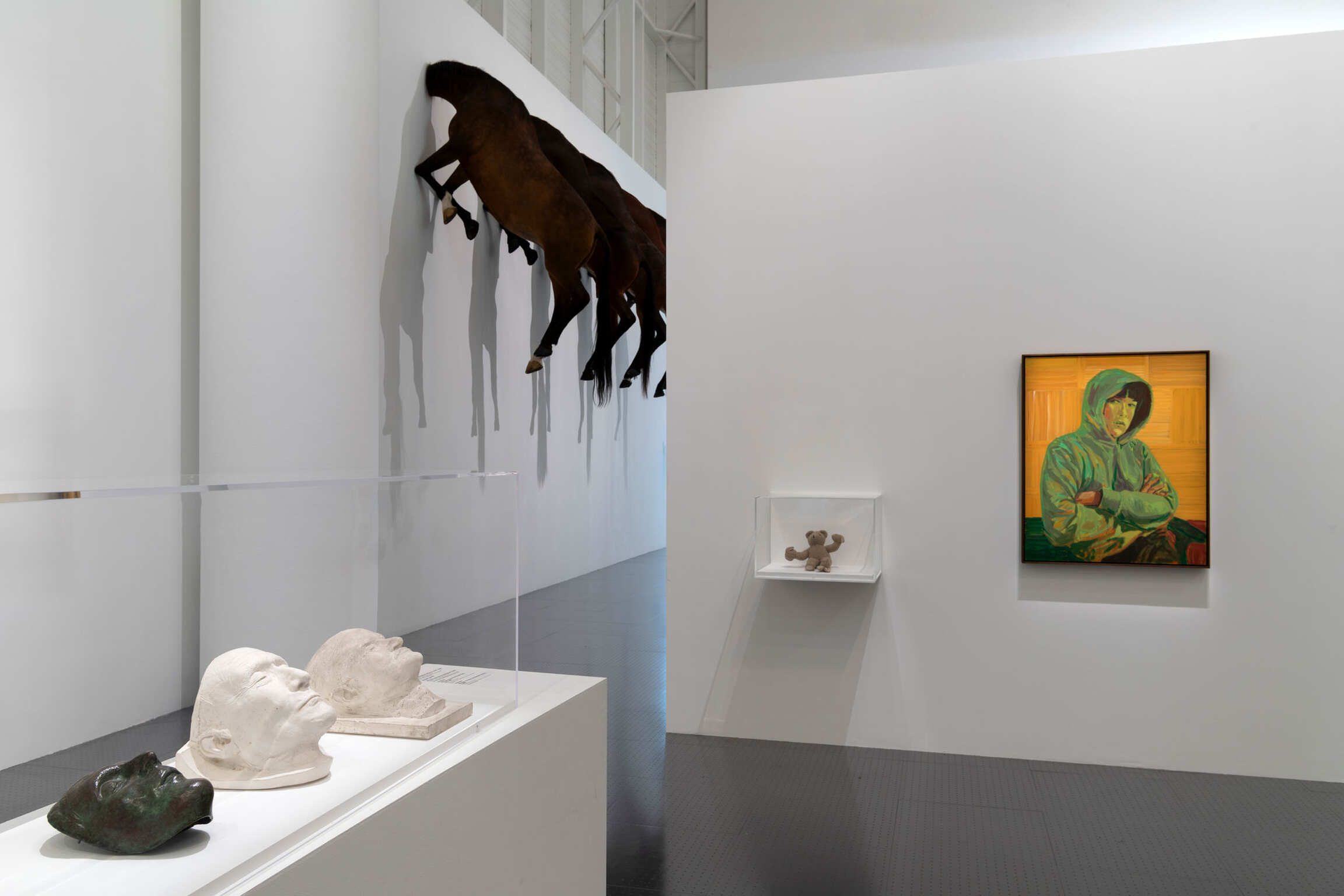 The exhibition is spread over several levels, taking visitors on a journey through the history of art and its ruptures. In the Forum, the monumentality of L.O.V.E., Cattelan's iconic sculpture of a hand with its fingers amputated, leaving only the middle finger outstretched, establishes a direct face-to-face relationship with visitors as they enter the museum. This anti-monument raises questions about the relationships of power and belief that play out in public spaces.