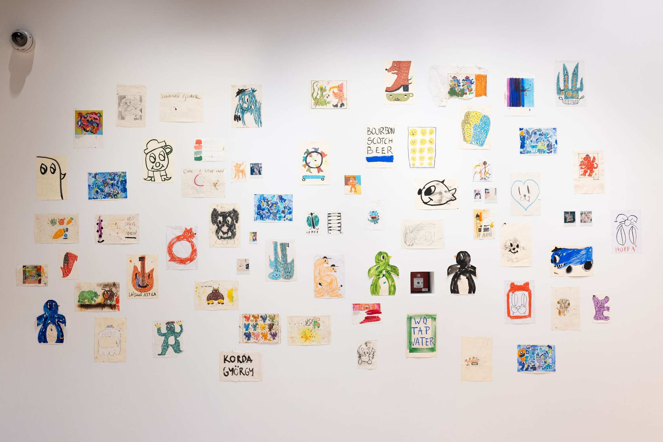 The exhibition borrows its title from one of the works, 'Soulmate', which shows a black-and-white figure on which a fellow painter sprayed the two words. The idea of the soulmate offers a reading of Bozó’s works that centres on the viewer’s attitude towards the figures; there is an important psychological component to the choice of motifs, which bring to mind childhood, the experience of which differs from one person to the next. What is common in children, despite the differences in family backgrounds and living conditions, is their turning stuffed animals into “soulmates,” with whom they play, share experiences, emotions and ideas, engage in imaginary dialogues about family members, friends and foes, the things that surround them and the goings on of the world. Bozó’s art is evocative of this situation. The key to its success is that animated films and stuffed animals are a mere starting point for the expression of complex emotional memories, which turns the figures into portraits, characters, whose presence and interactions are reminiscent of the patterns of human behaviour.