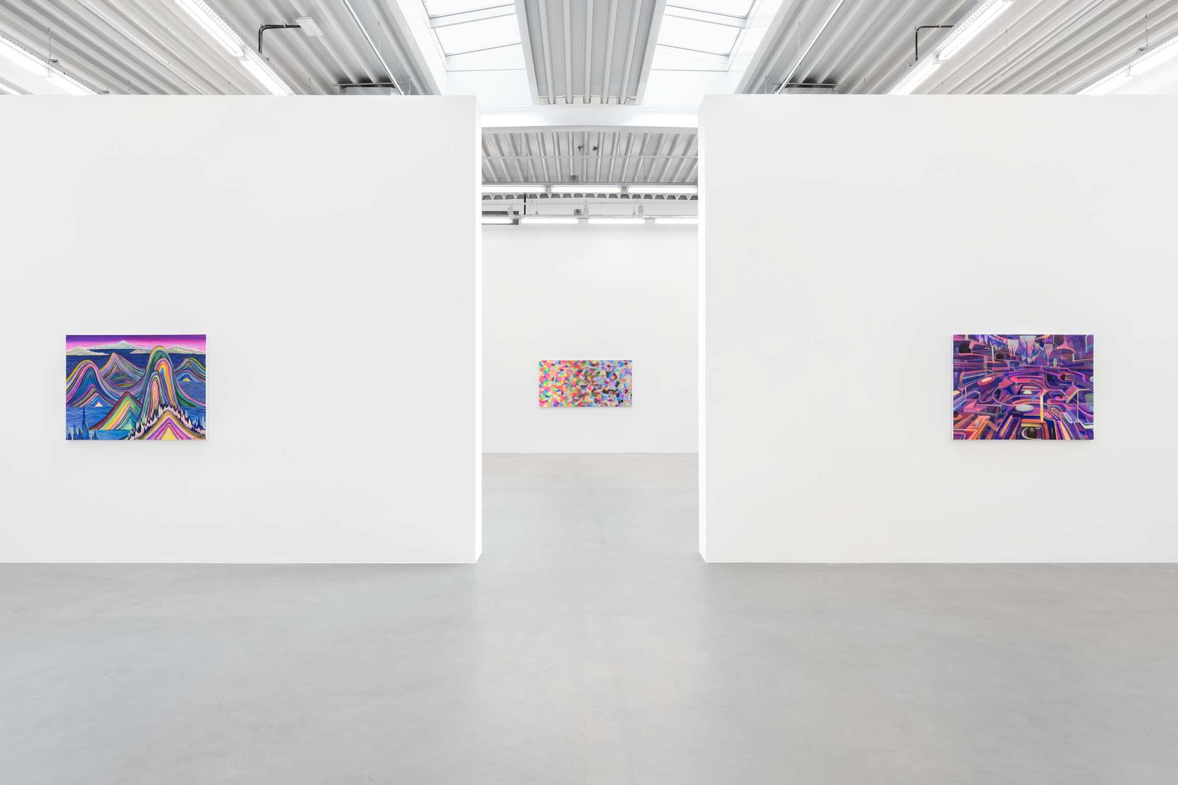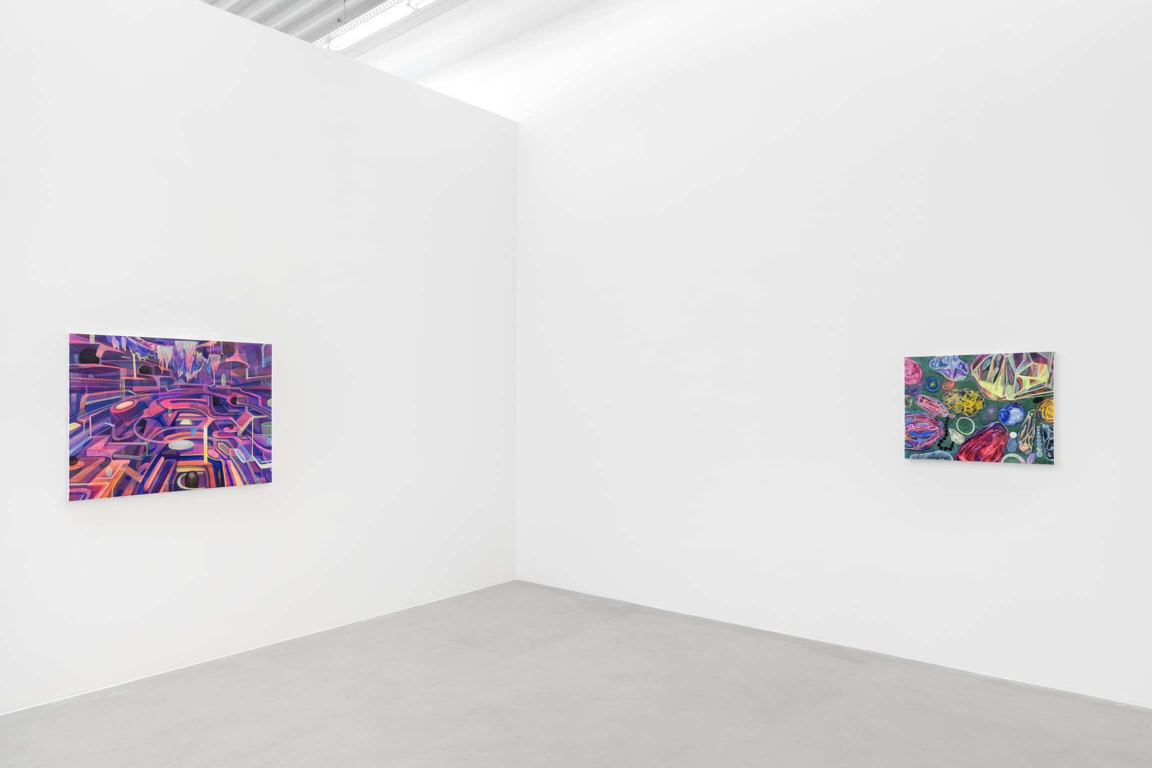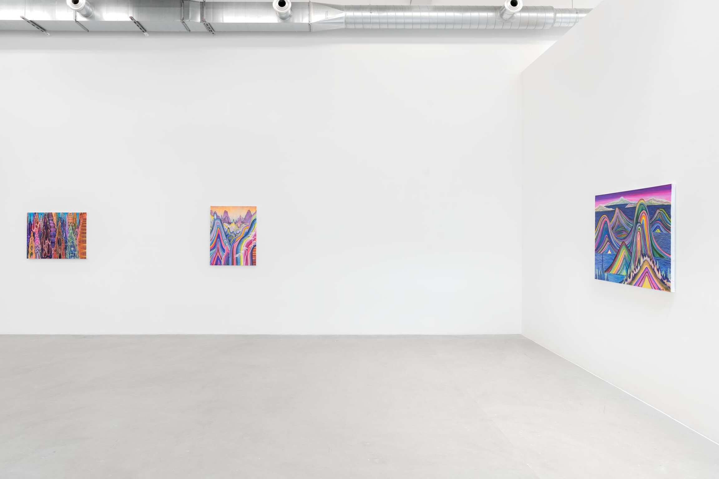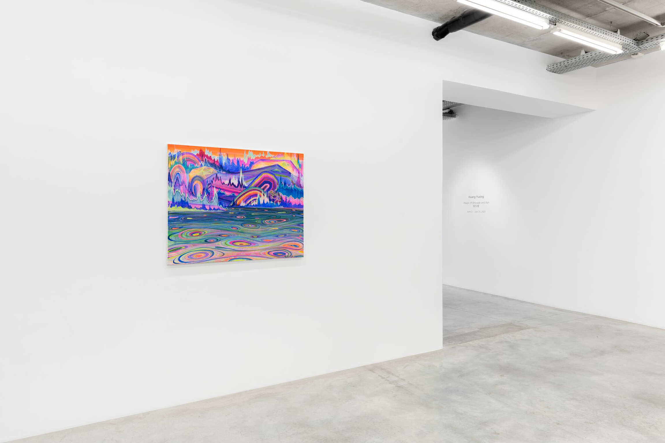 Avec son langage visuel affirmé, ses couleurs vives, et une approche qui place au premier plan l’acte de peindre, avec ses couches, sa viscosité et ses traits, Heaps of Brocade and Ash exprime l’état émotionnel intérieur de Huang. Plus encore, l’exposition révèle une approche différente de paysages familiers ou fantasmés exprimée depuis ses moindres détails - minerais, minéraux ou pierres précieuses dissimulés – jusqu’aux fleuves majestueux d’une profondeur, d’un débit et d’une temporalité infinis.