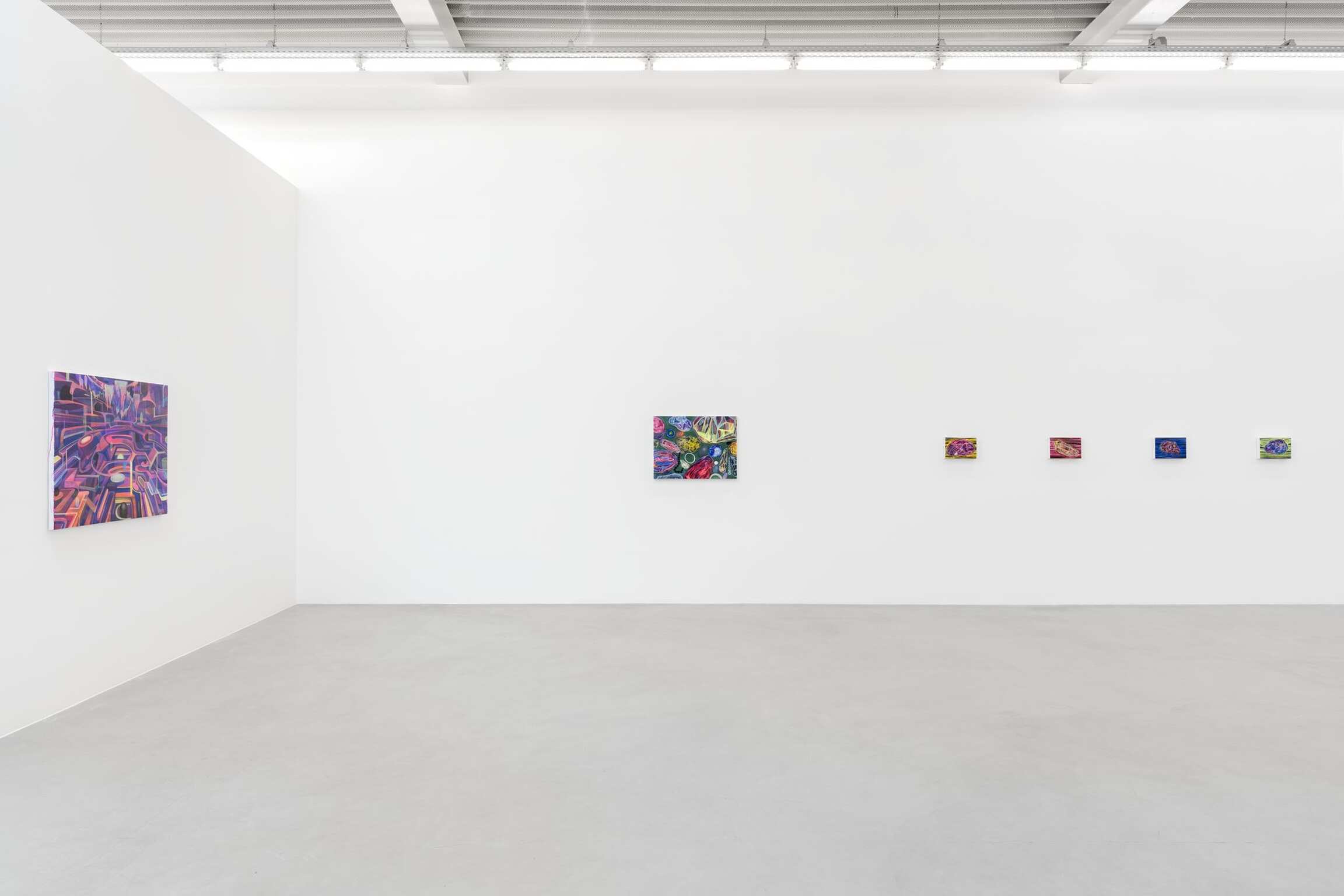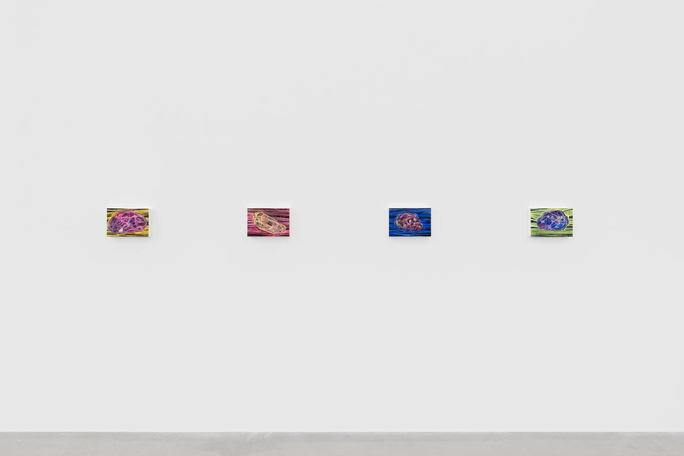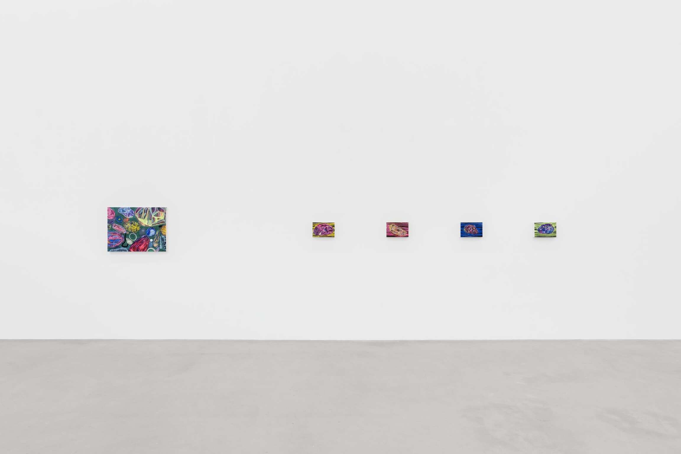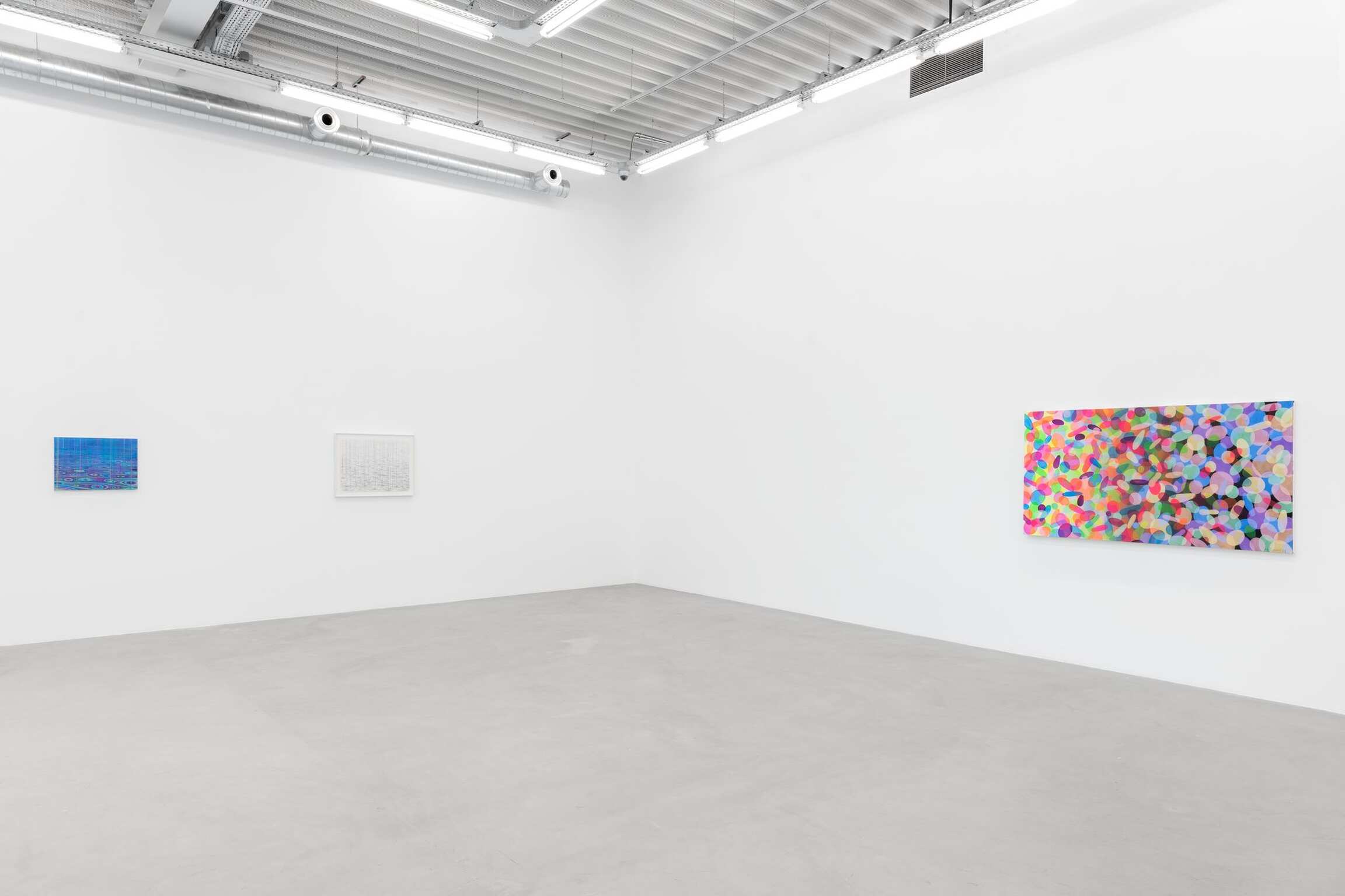 如果艺术家的《河流》系列传达出的是时间的层次,深度和动态,那么他的所谓的《气泡》系列则着重于对单个瞬间即刻的捕捉。近期创作的三幅各具特色的作品描绘了一个充满气泡的场域,气泡们蓄势待发,仿佛即将破裂;又像是显微镜下的视野,充斥着液泡或细胞。时而是一些光滑的椭圆或卵形,更多时候是一些不规则的球体,这些意蕴丰富的形状都是在艺术家作品中反复出现的主题,横跨过去十年的多个创作系列。