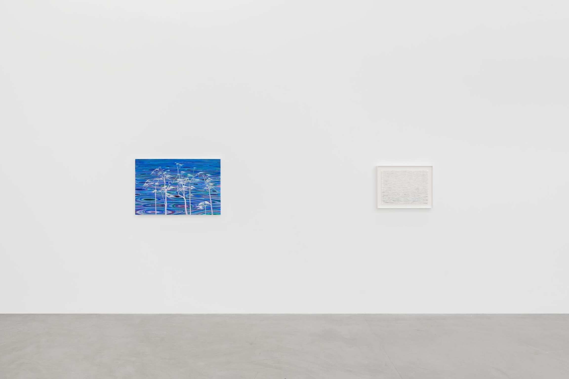 个展《锦灰堆》以广受嘉喻的《河流》系列中的四件作品为代表,包括两幅纸上作品。 河流是艺术家作品中经久不衰的母题,他将河流形容为“我内心以时间为定义的形状。”以暗示漩涡和涡流的迷幻形态和螺旋体;断续但又平静;一种在无名汐流的搅动下不断变幻的水面为特征,《雨》和《松波》直观地呈现了艺术家的标志性绘画技术,以其穿透半透明的油画颜料和丙烯酸颜料层的强烈色彩来表现。