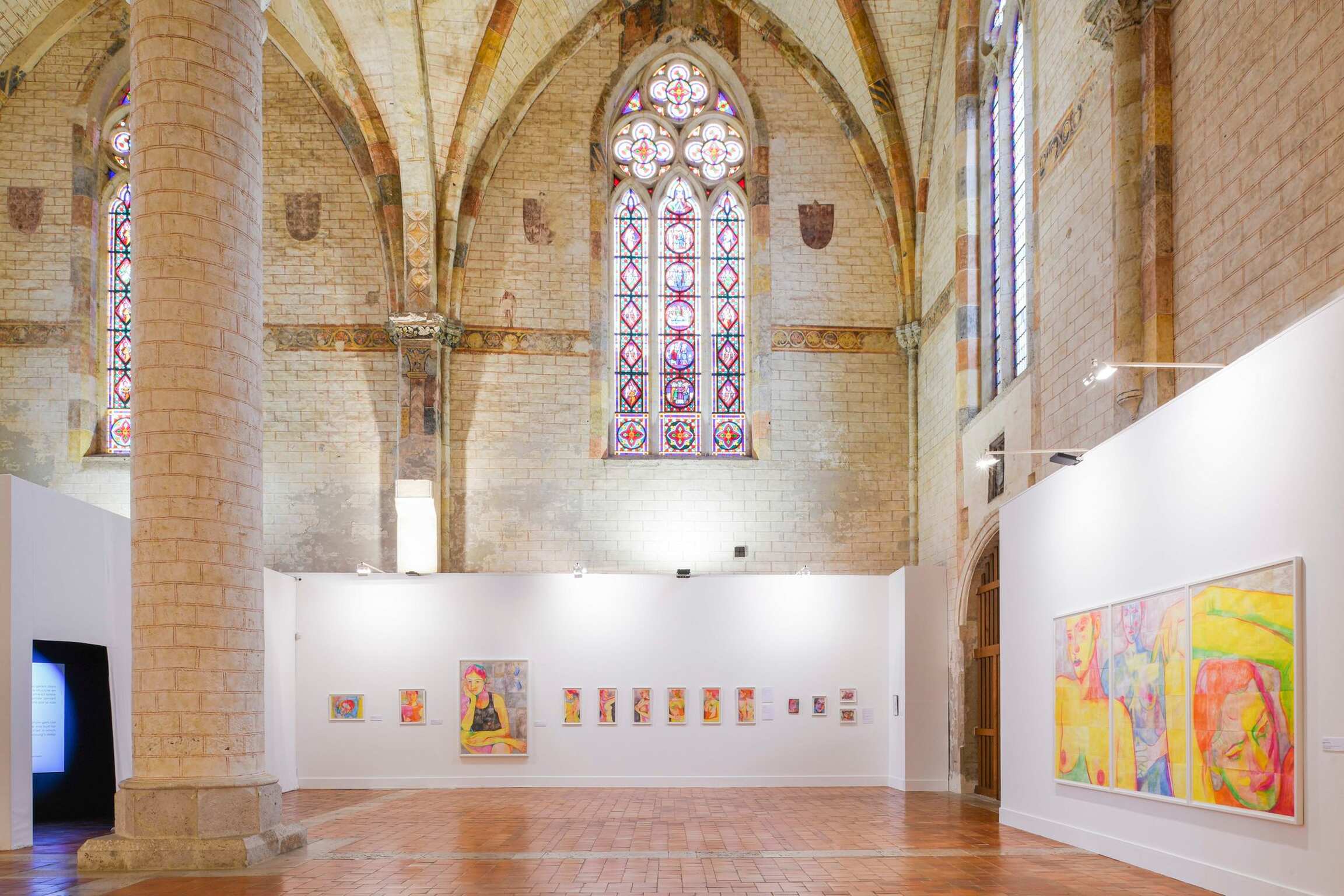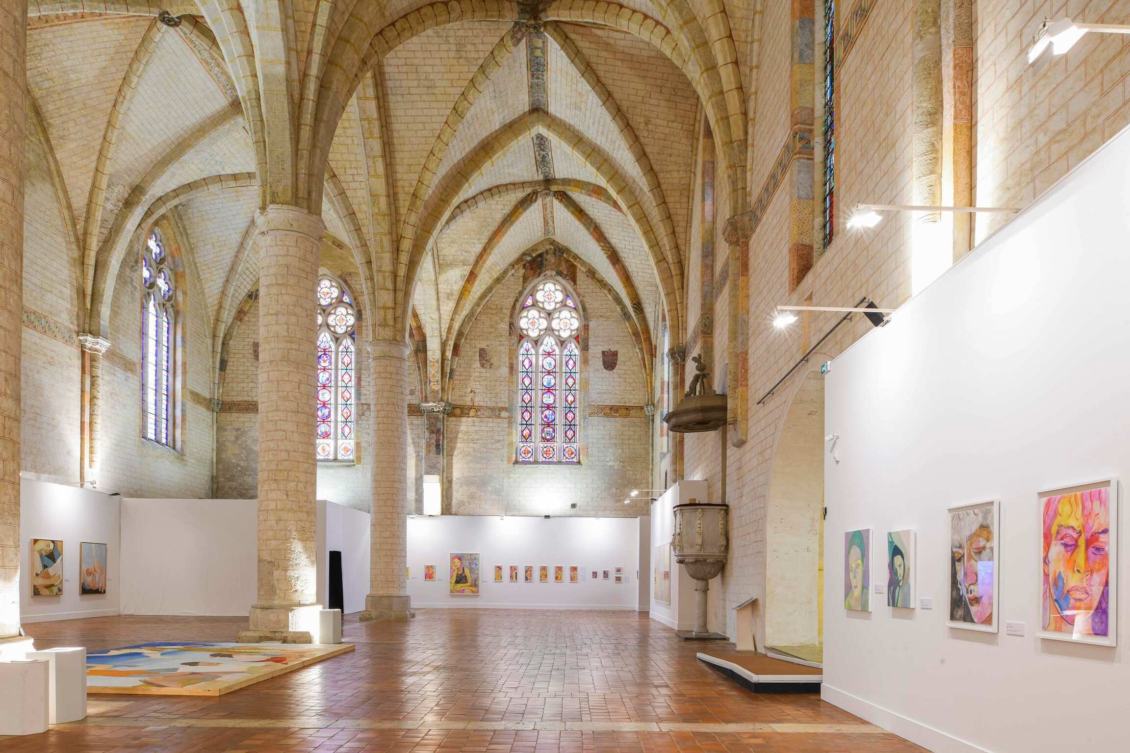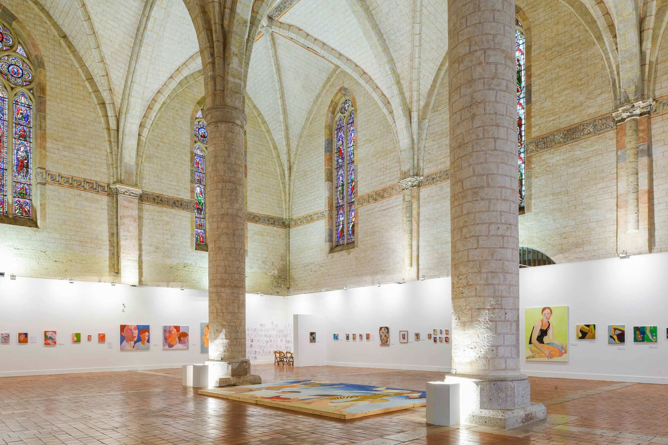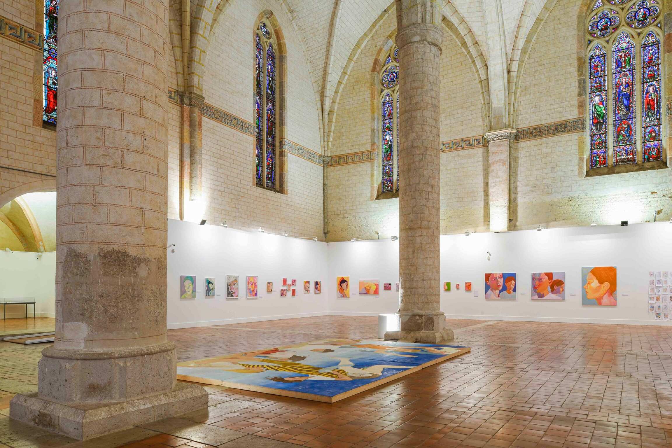 The portraits presented in the nave of the Jacobins church, in small and large formats, show faces with magnetic gazes, bodies in movement, fragments of bodies that convey an emotion, an atmosphere, the play of light on the skin. The colours, bright and warm or cooler, change according to the season or the time of day.