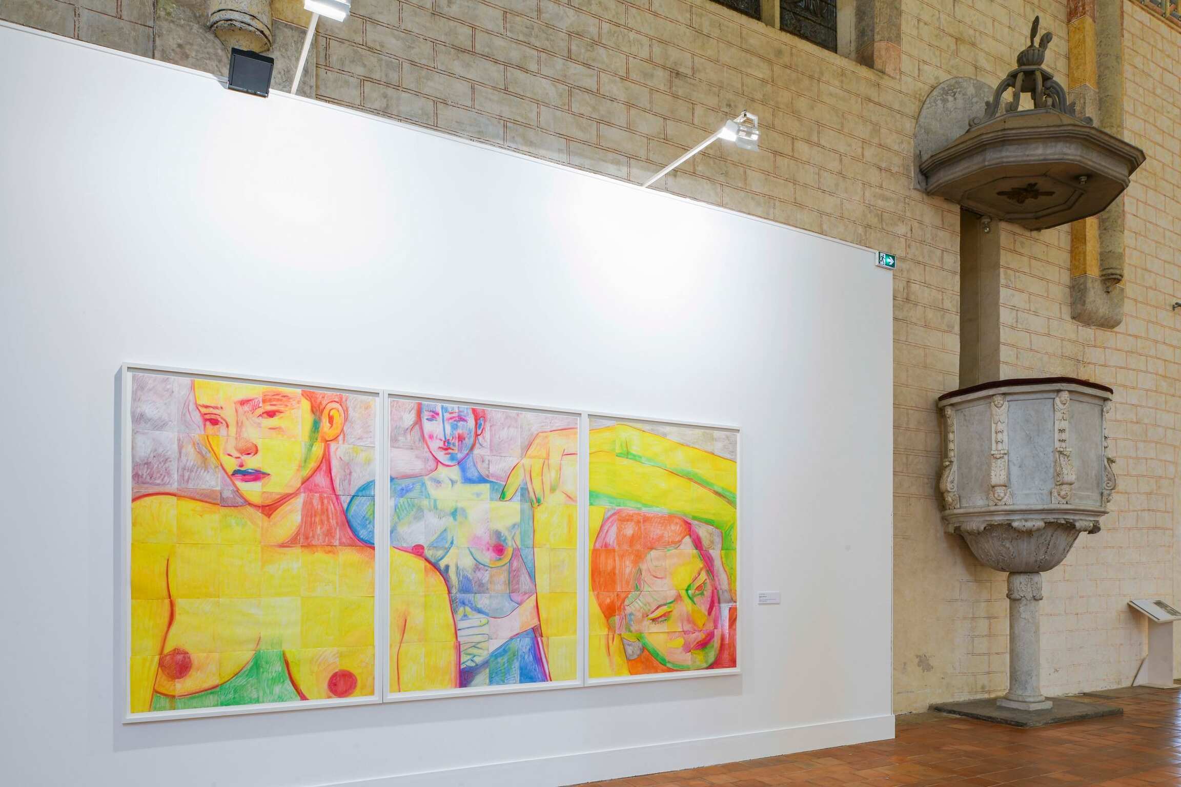 The Jacobins church is also home to a very large-format canvas, Parce que, which the artist's followers were able to discover online in a video - Parce que - produced in 2019. In it, young director Neels Castillon stages the synchronised performance of dancer Léo Walk, abandoning himself to the music, and Inès Longevial, painting a monumental work in a vast abandoned house in the South of France, to the tune of Serge Gainsbourg. This melancholy choreographic creation can be discovered in the immersive space of our exhibition.