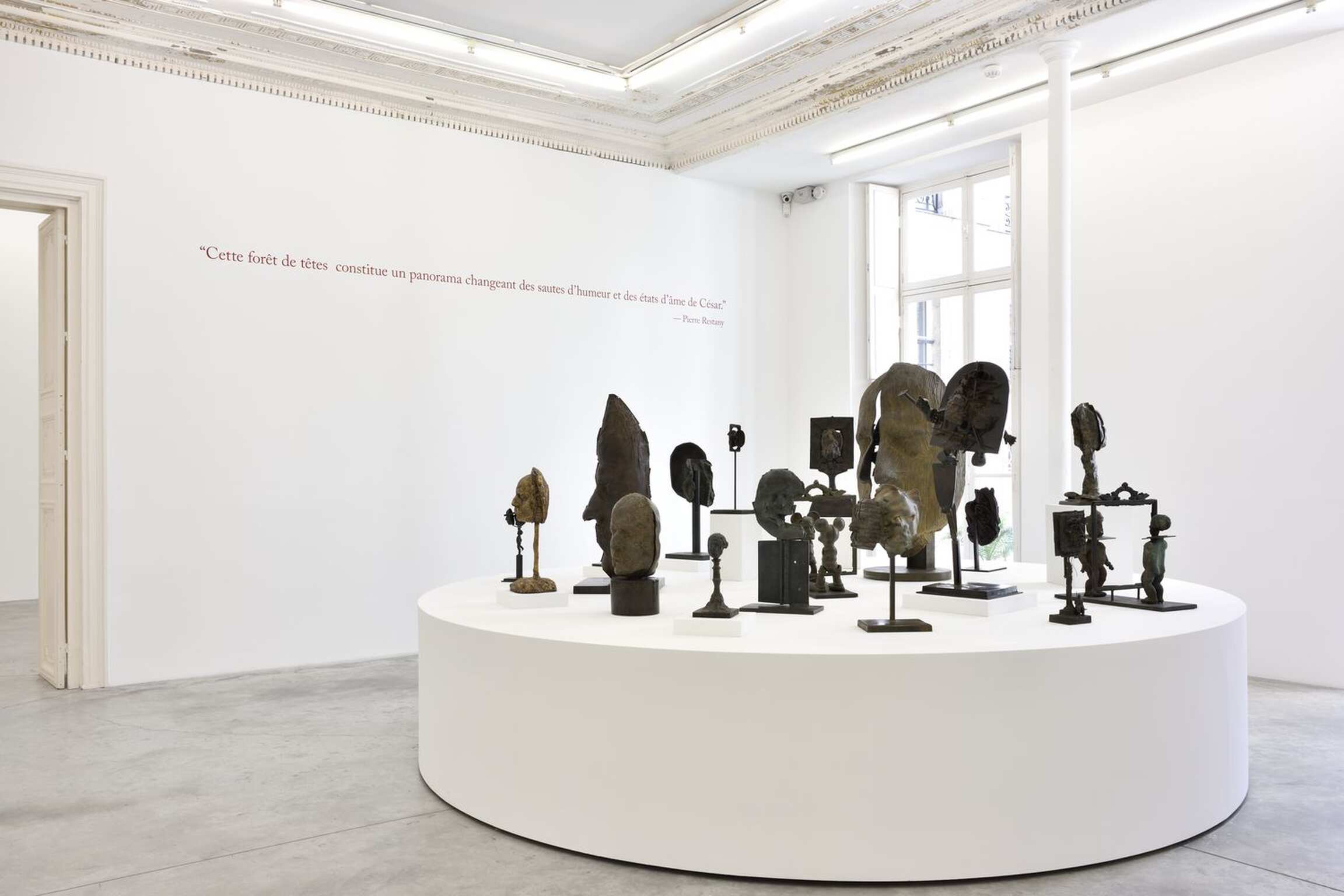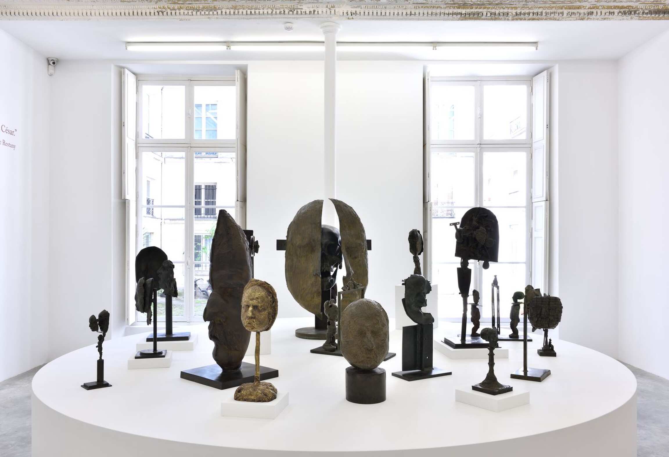 A propos de ses compressions de carton, César assimile sa sculpture à un acte poétique : « Du déchet industriel, je suis passé au déchet urbain (…). Ces compressions, c’est un peu de la poésie de tous les jours. Les petits riens de la vie… ». Cette inflexion vers un humanisme de la ville l’amène à revisiter ses anciennes effigies en fers soudés, constituées d’une myriade de matériaux collectés, - clous, vis, boulons, ferrailles - par des fontes en bronze parfois retouchées par la soudure. Avec ses figures de femme dont l’emblématique Victoire de Villetaneuse (1965), la créature issue de l’usine de la banlieue parisienne nord rejoint les immémoriales Vénus aurignaciennes. Ses autoportraits tardifs s’offrent comme autant de Vanitas, de commentaires sur l’art de la sculpture, depuis ses faces en pain, invitation chamanique à être mangé et rappel lointain de ses participations à la Eat Art Gallery de Düsseldorf de Spoerri, aux dispositifs de masques – de la référence picassienne des masques africains aux jeux de memento mori baroques.