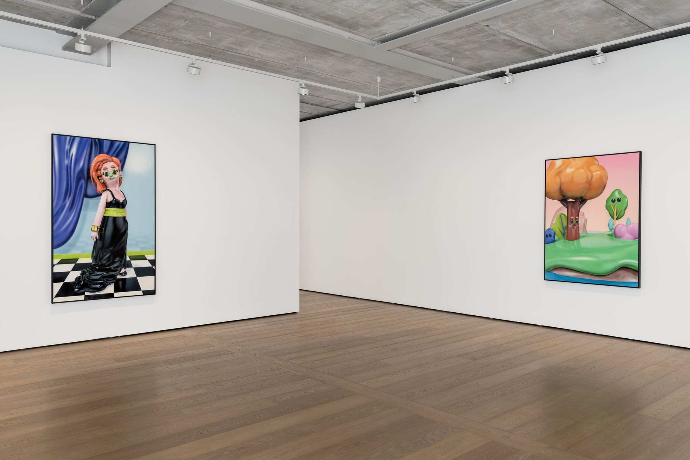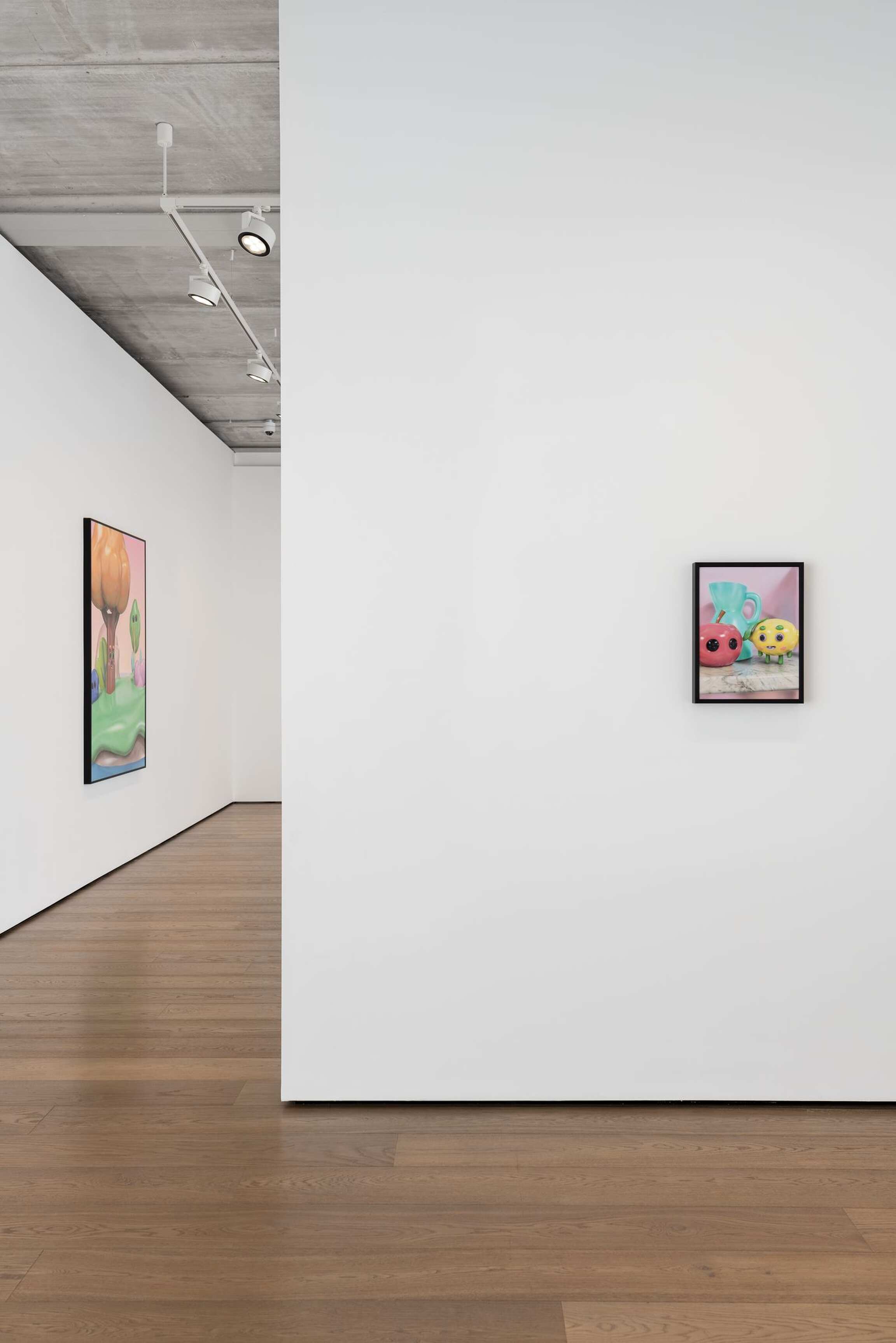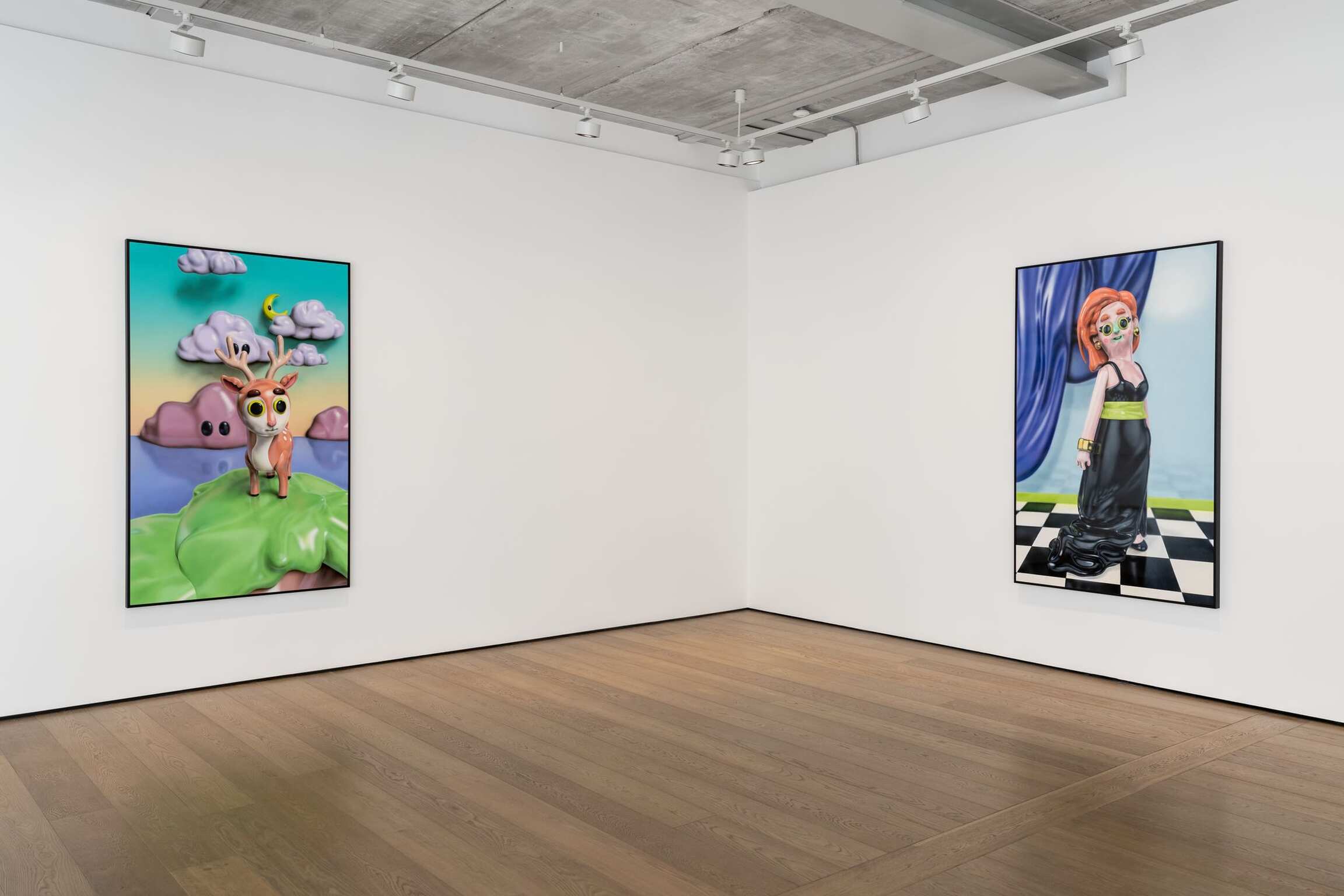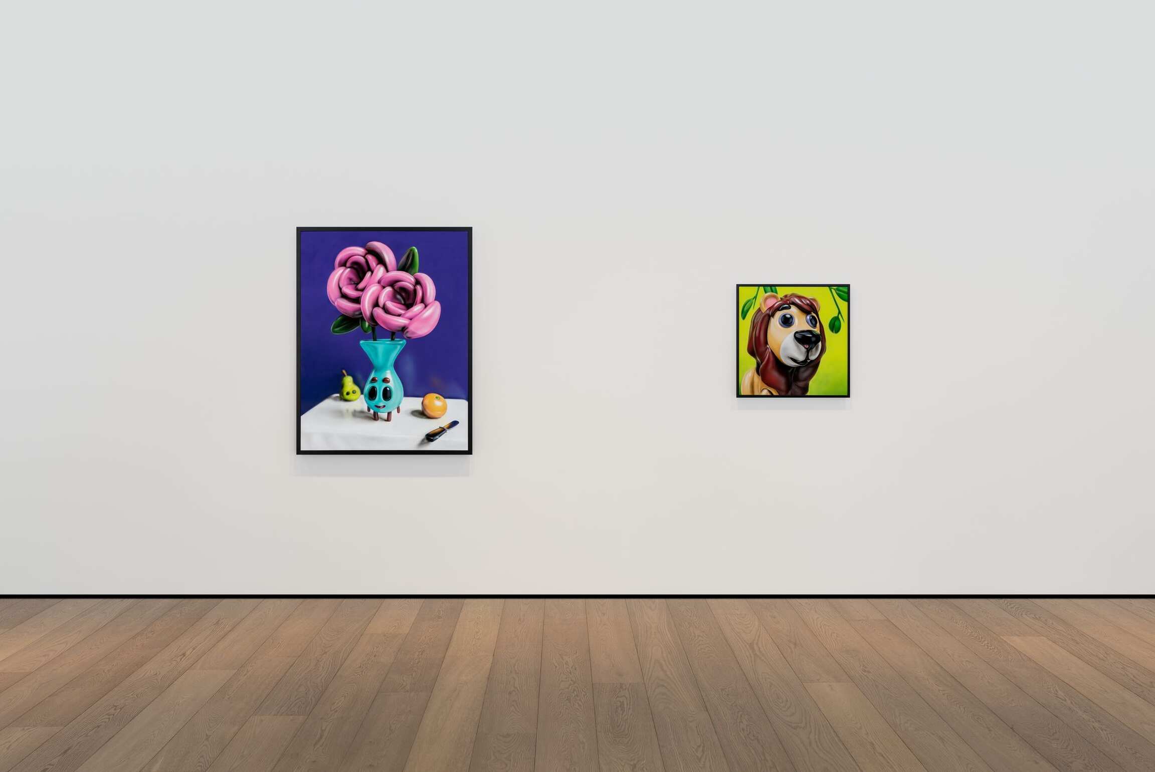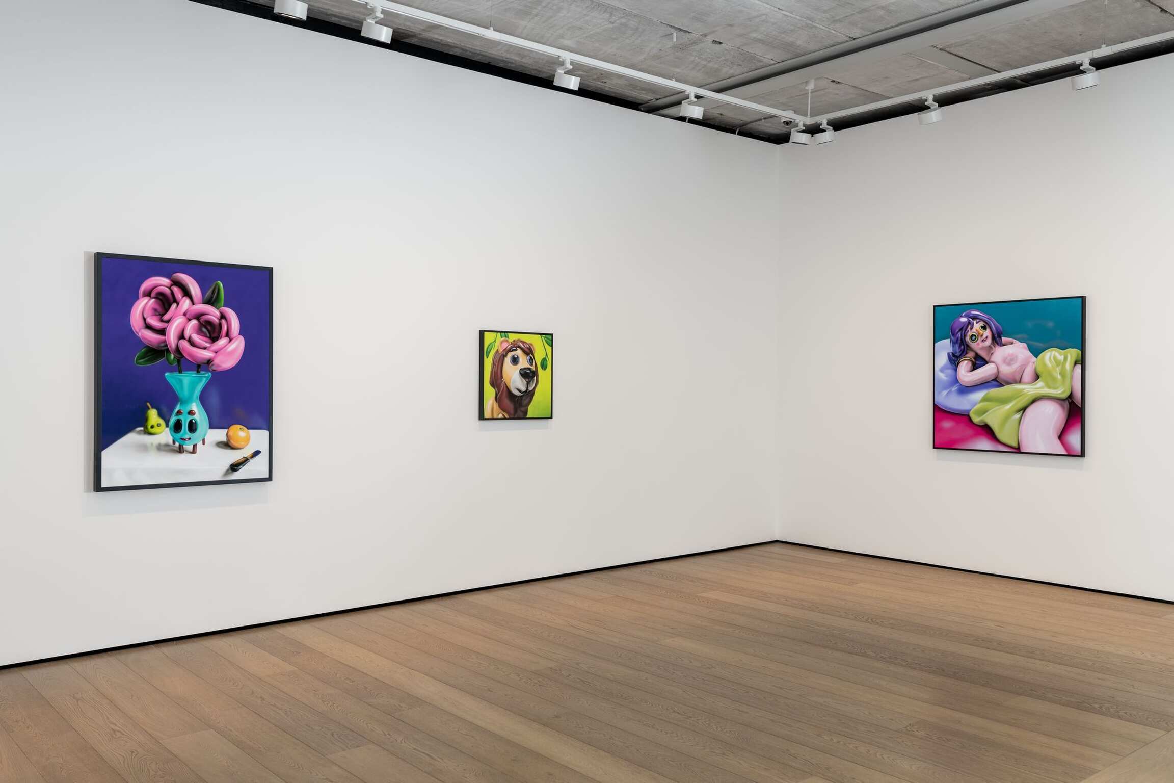 Working with 3D visuals is simultaneously allowing for not only working within the tradition of representation but being able to entirely construct the most visually exciting reality. Able to start his process from a literal ‘nothing’, a blank void, Piette is taking the position of a creator of his own universe and everything within it. Steered towards the aesthetics of heavily stylized, exaggerated cuteness, and favoring the maxim “the cuter, the better,” the bulbous, shiny, and vibrant characters along with their anthropomorphized surroundings are becoming a generic caricature of themselves, challenging the notions of what traditional painting should be.
