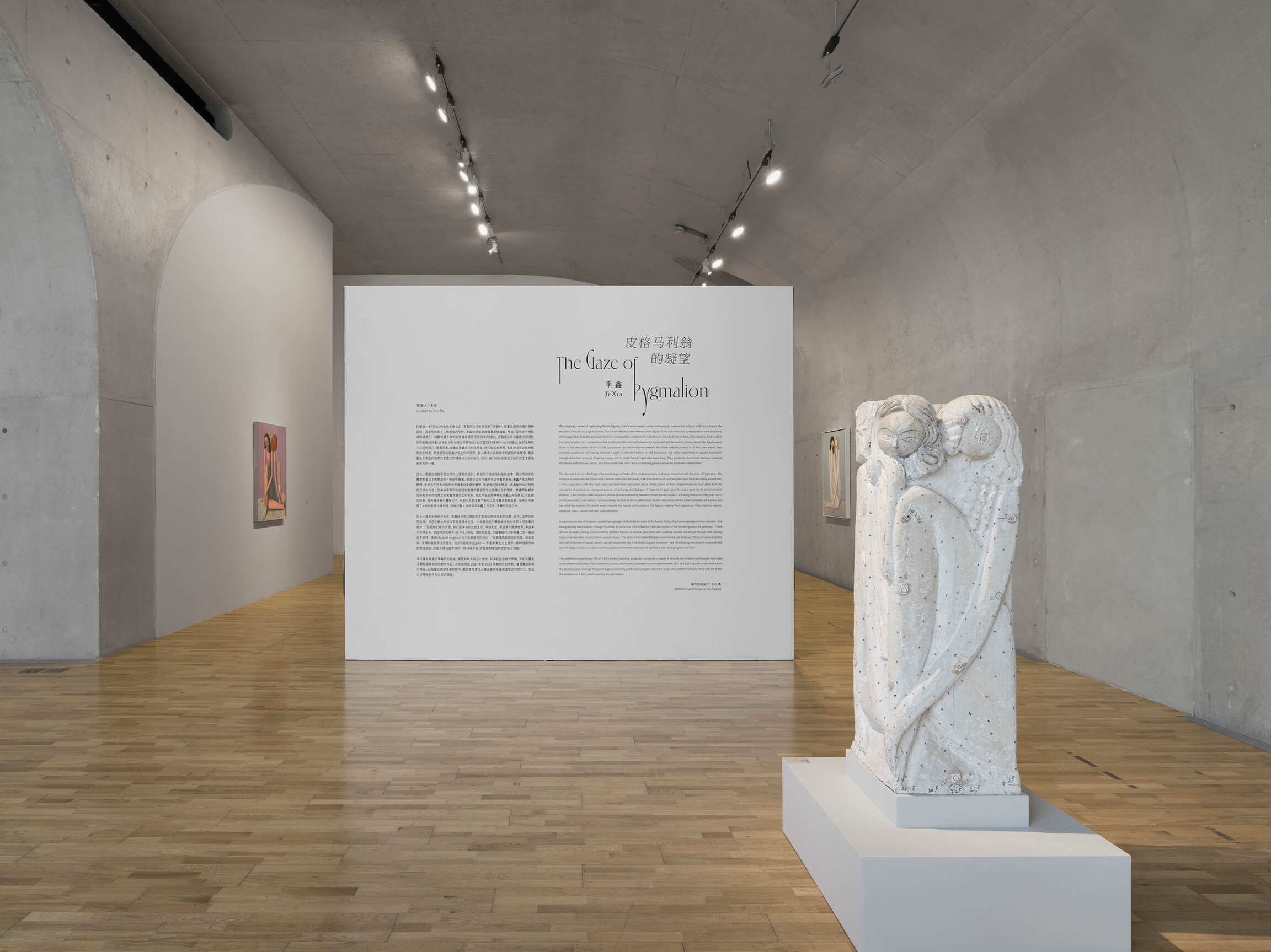 The exhibition title 'The Gaze of Pygmalion' is drawn from the Greek myth of the Cypriot king who, enamored with an ivory sculpture he had fashioned in the image of his ideal woman, experienced an emotion that transcended earthly bounds. Pygmalion’s gaze and the visual feedback it elicits imply not only the creator’s projection onto the ideal form but also the deep entanglement between spectatorship and identification, fantasy and reality. The viewer projects an idealized self into the image while seeking self-confirmation within that idealized form, thus entering a self-contained cycle. Though frequently referenced in art historical and psychoanalytic discourses, this structure is consciously disrupted in Ji Xin’s work. The female figure ceases to serve as the endpoint of the gaze, becoming instead a point of departure for his broader project of image-making. His treatment—tending toward the spiritual, columnar, and abstract—redirects attention from surface allure toward the inner order of the image itself.