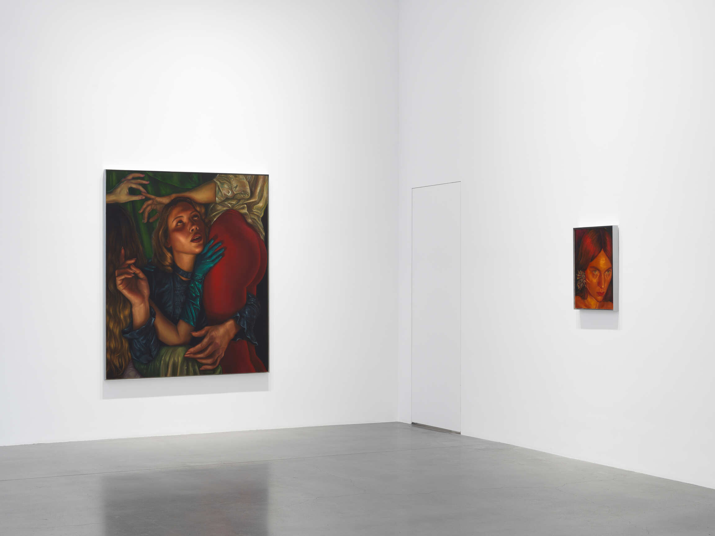 What lurks beyond the horizon of perception? Beyond the tight confines of language, image, time, and space that hold all that is known and knowable? Maybe UFOs—one of Wise’s long-held fascinations. Maybe monsters, ghosts, spirits, gods, angels, demons, death, sex—little deaths—or, most frightening of all, nothing. Like a good horror movie again, Wise doesn’t depict what her subjects see. Instead, she plays with trope and genre, beauty and brushstroke, bringing a retropop grammar to the divine and sublime—hobbyhorse themes of the Renaissance, the Baroque, and, really, art since the caves. It's Spielberg attempting Caravaggio in the Scooby Doo cinematic universe.