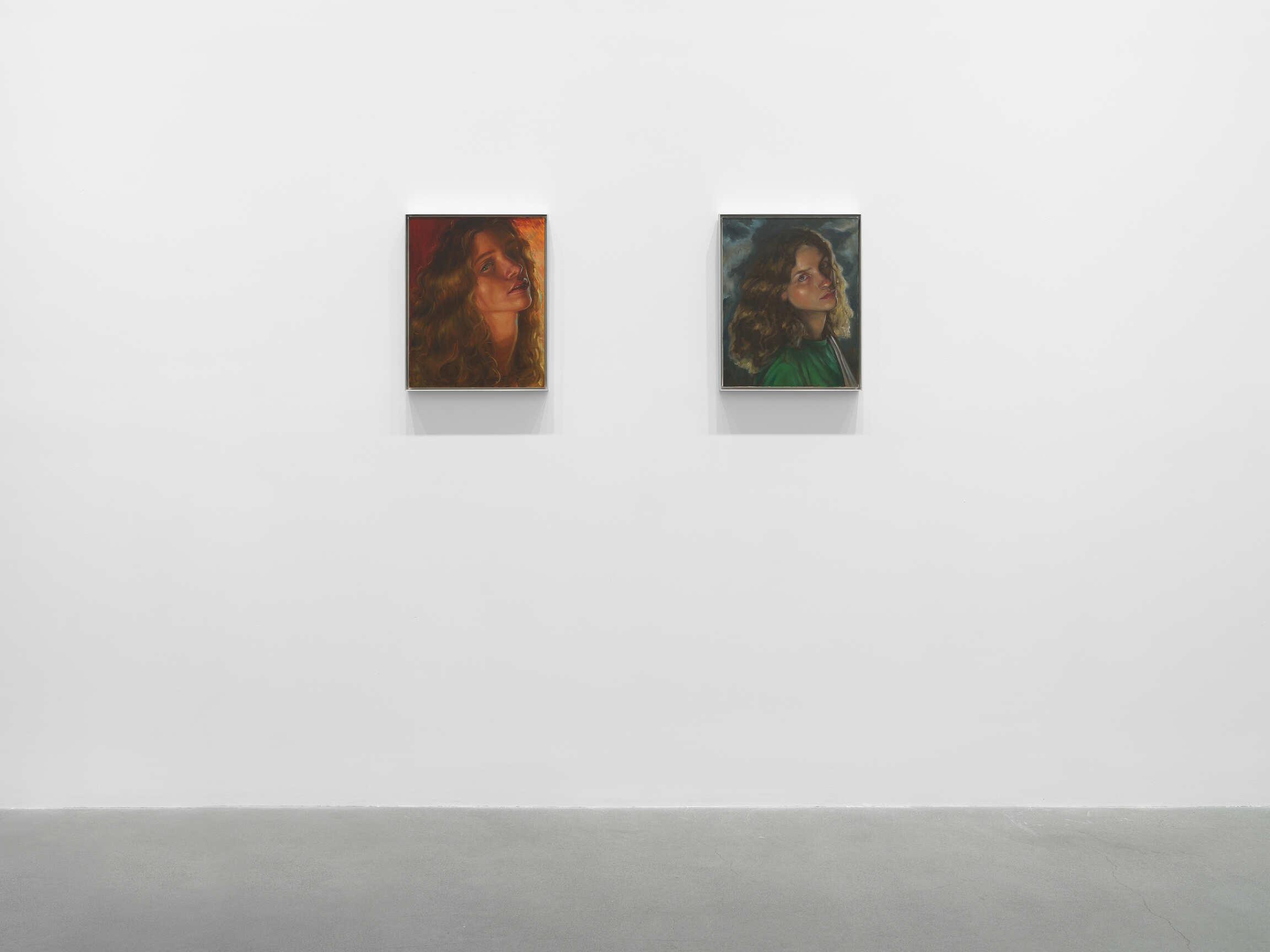 Fitting that Wise’s subjects are now, in this historical moment of collapse and crisis, glancing upward. When the contents of our frameworks begin to fail, ancient reflexes fire, pushing our gaze past its edges, to gods in the sky, logic in the stars, omniscient intelligences residing in that vague and general direction. Looking at Wise’s paintings with this in mind, an alternative to the mystery arises: Maybe what her subjects are beginning to sense is us. Maybe, having already broken the fourth wall, they’re breaking the fifth, only to catch strange, incomprehensible glimpses of a species desperate to break its own.