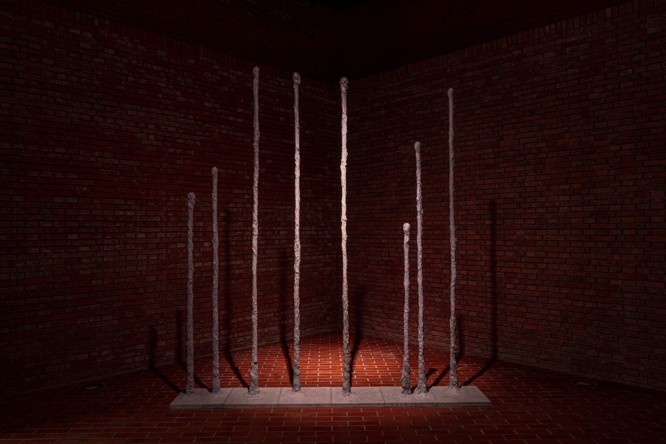 Similar forms can be found in Stems, a series of sculptures included in this exhibition. These works appear as archetypes that concentrate entire diffuse areas of thought and memory. Le Brun’s sculptures are just like his paintings, conveying his interests in forms. He applies simply conceived elements such as lines, columns, planes or discs, which still retain presence and mystery, even when appearing at their most basic.