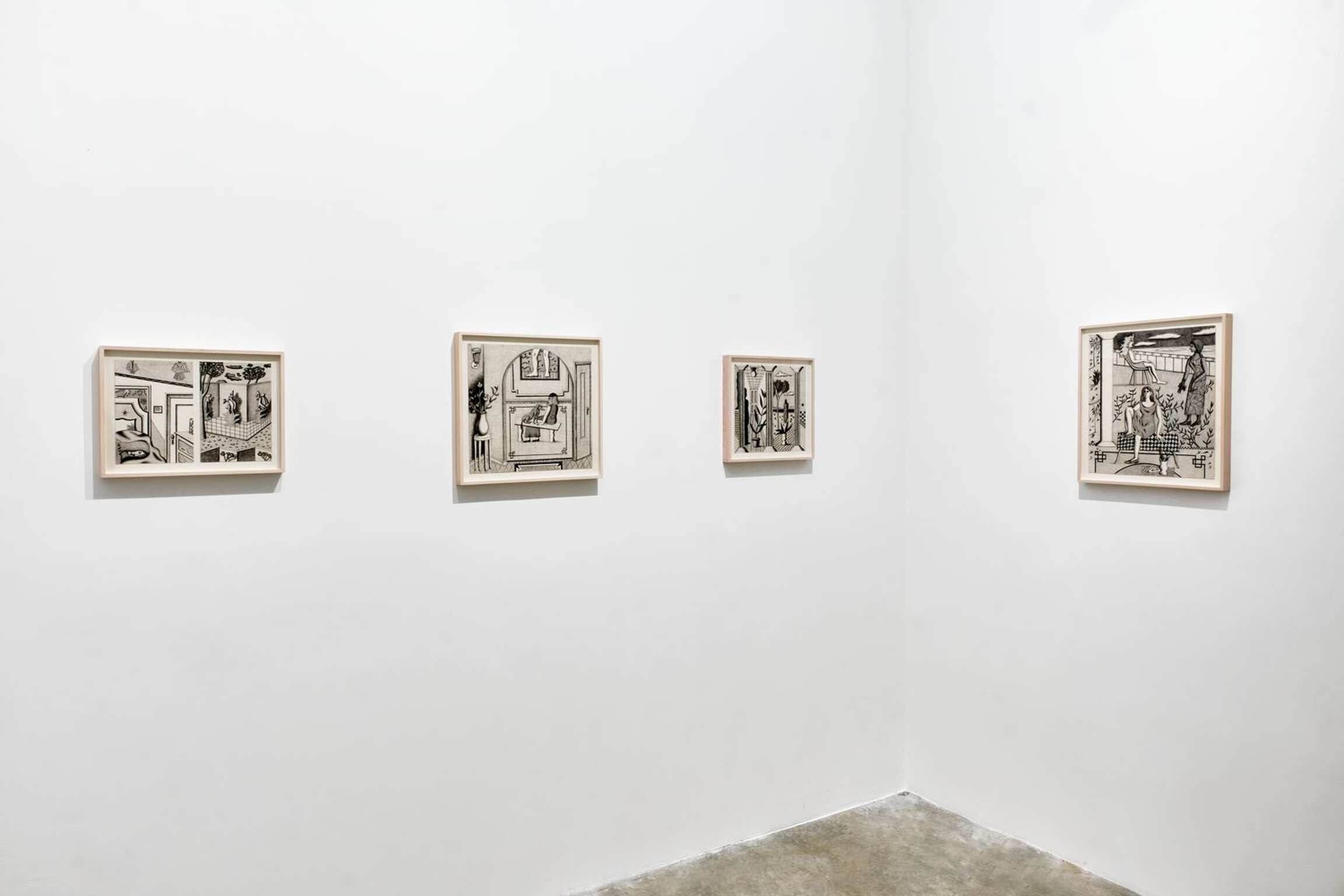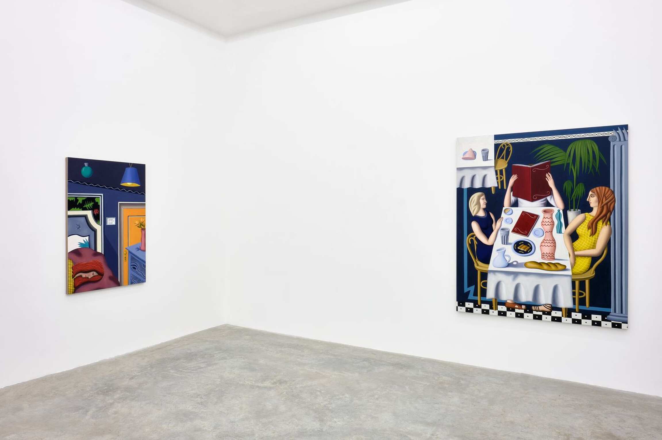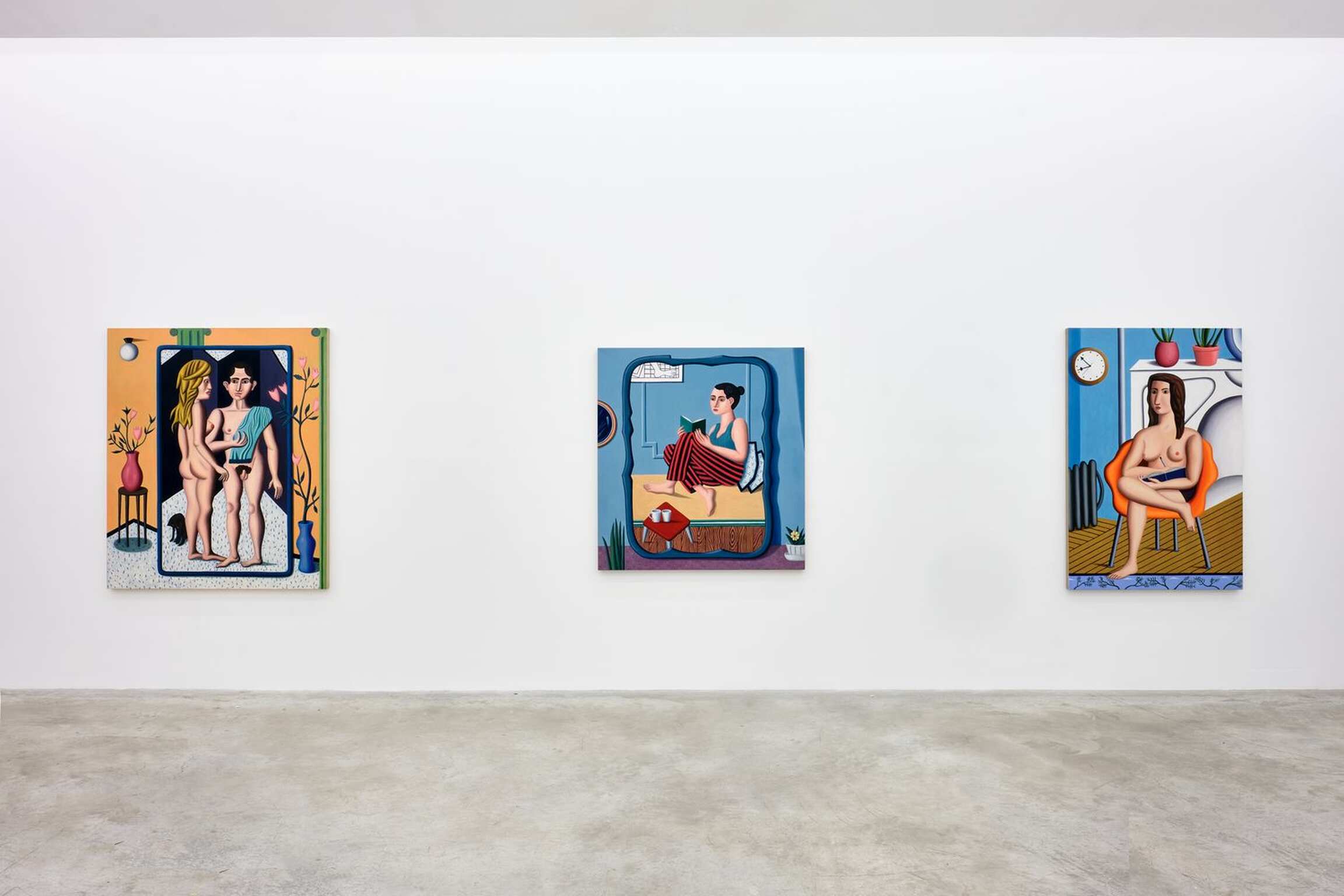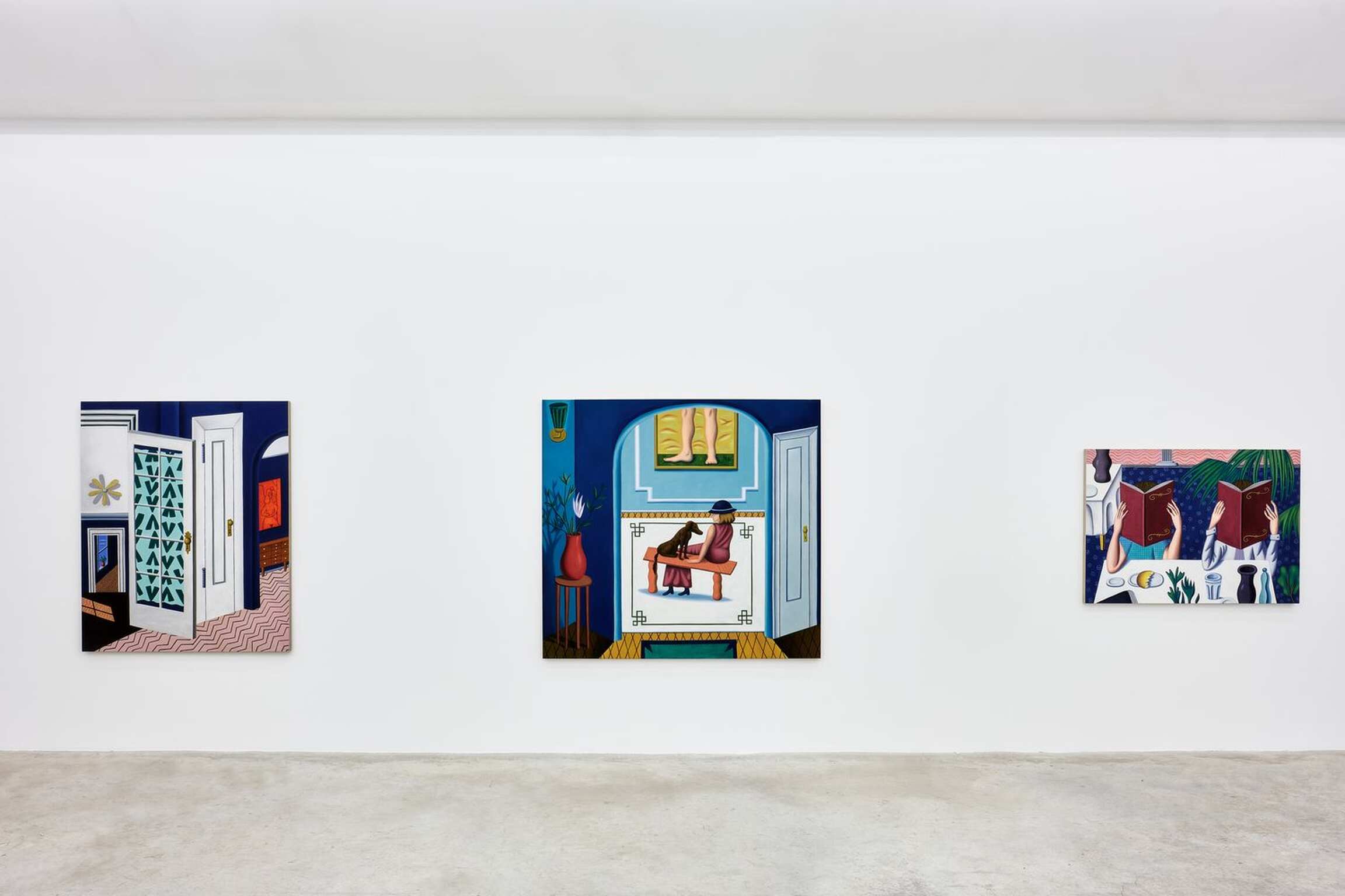 En somme, si elle se présente à nous dans une certaine forme de simplicité et d’évidence, la peinture de Jonathan Gardner révèle rapidement son étrangeté — et sa complexité. De toute évidence, elle fait aussi surgir à l’esprit les styles de peintres antérieurs (Fernand Léger, Balthus, Magritte, de Chirico, Le Corbusier, David Hockney, Le douanier Rousseau,) mais l’absurdité de cette liste vraiment hétéroclite et qui semble réunir des contraires ne tarde pas à se manifester : qu’est ce qui saurait relier ces peintres sinon ce style là, précisément ?