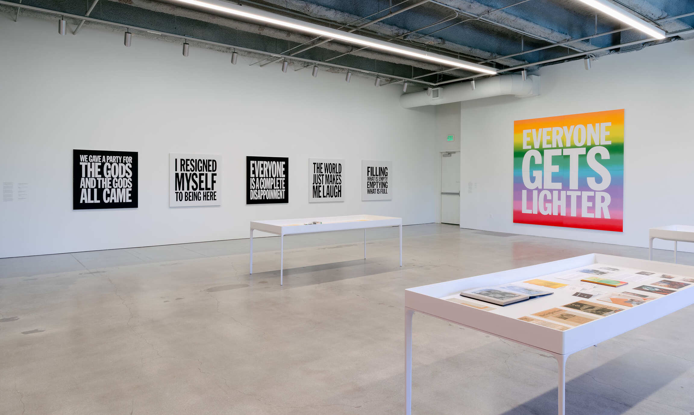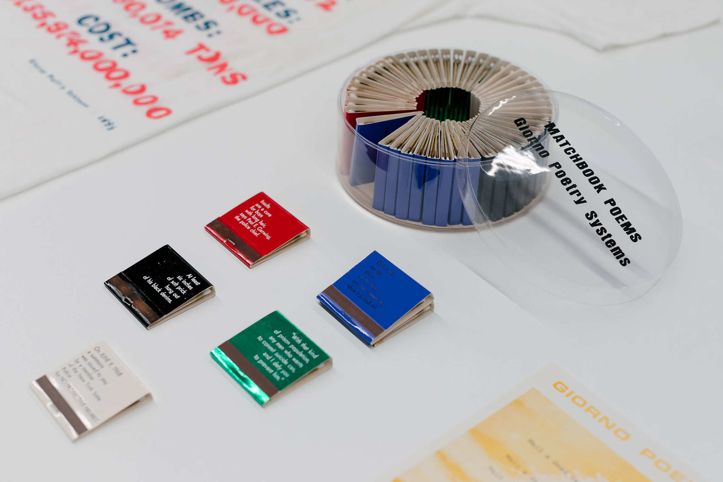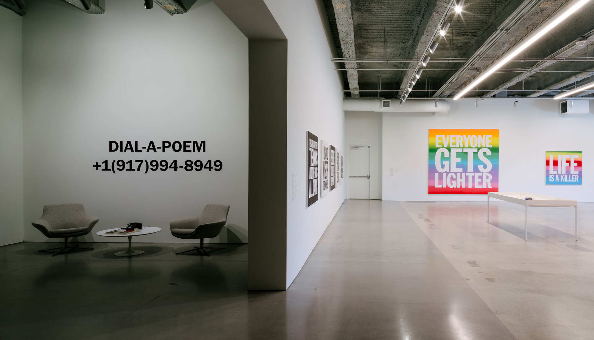 Less known is Giorno’s painting practice, born from the same impulse to reach people within and beyond the museum. With language as his medium, he brought his ear for a sharp phrase into the art world, infusing it with a mix of gravity and levity. The works gathered here—text paintings, early prints, and rainbow canvases—form their own collective poem. They distill Giorno’s worldview: the delights of New York street life, Buddhist thought, and the raw immediacy of language. Like koans, they invite viewers to finish the thought, to carry the fragments into their own lives. As Giorno wrote in one of his final poems, “Thanx 4 Nothing” (2007): “Thanks for allowing me to be a poet / a noble effort, doomed, but the only choice.”