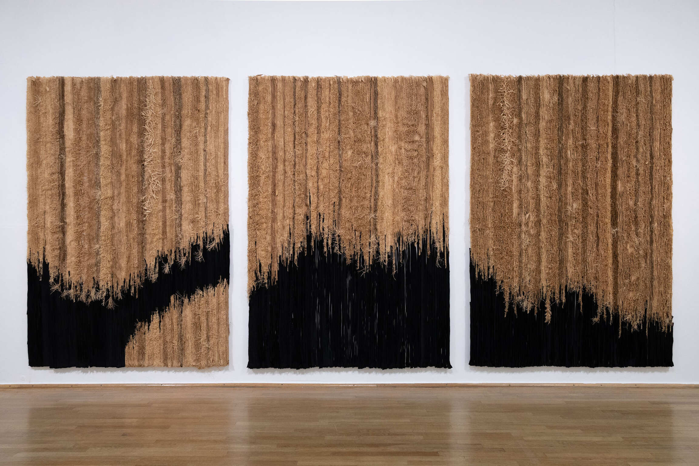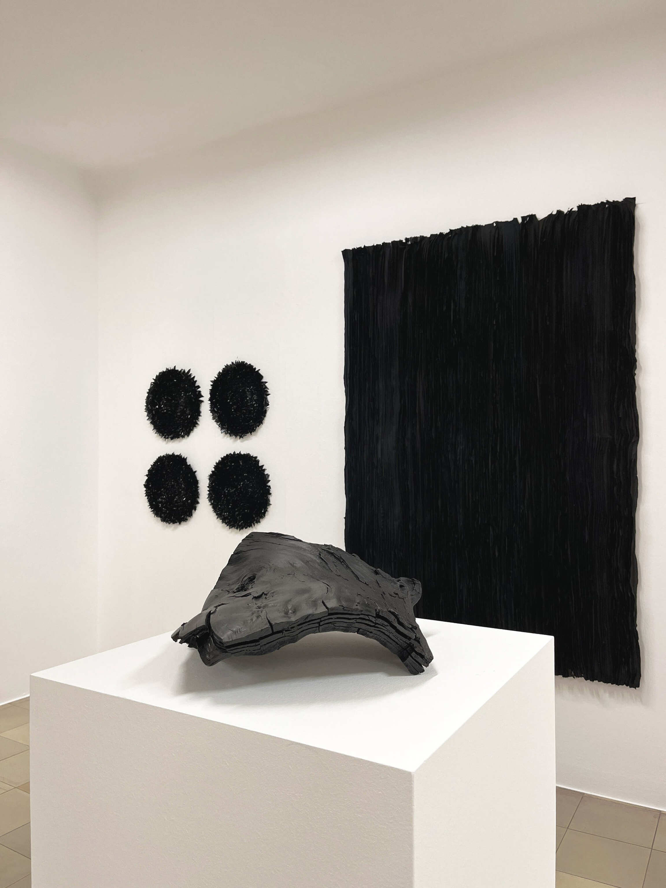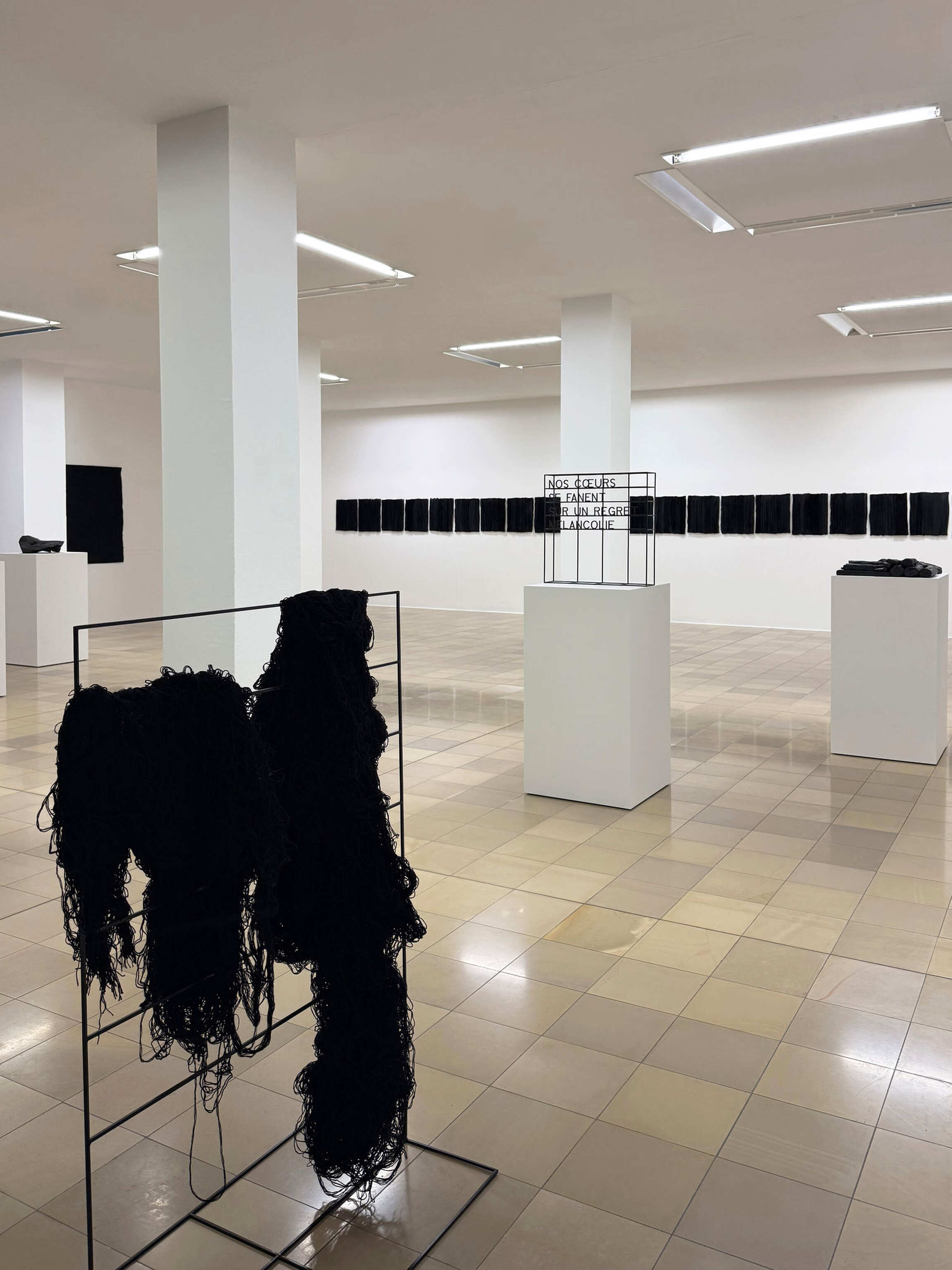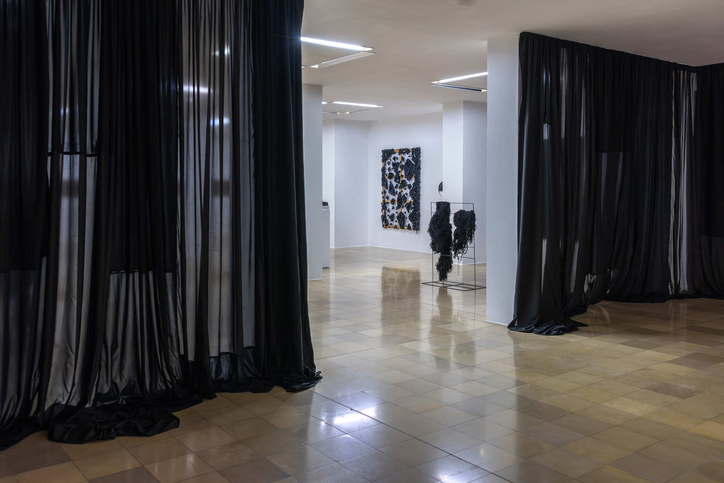 Joël Andrianomearisoa originates from Malagasy multiculturalism, which exists at the interface between Africa and Asia and is linked to Europe through colonial history. In the service of his emotional explorations, he freely uses mixed references, uniquely combining the coldness of industrial minimalism with the warmth of strong personal narratives that transcend time and people. Steeped in complex emotional experiences, his works produce delicate and tense creations that reflect the breath of our lives and express his ongoing explorations of the materiality of emotions. Andrianomearisoa’s approach to poetry and architecture allows him to explore his own unique path, creating a new architectural layout within the exhibition space. Special textiles and weaves, as well as his use of specially dyed and manufactured papers, play a major role, exploring materiality, haptics, and oversized dimensions as essential criteria. In this way, the artist succeeds in transforming spaces in his own way and imbuing them with emotional energy.