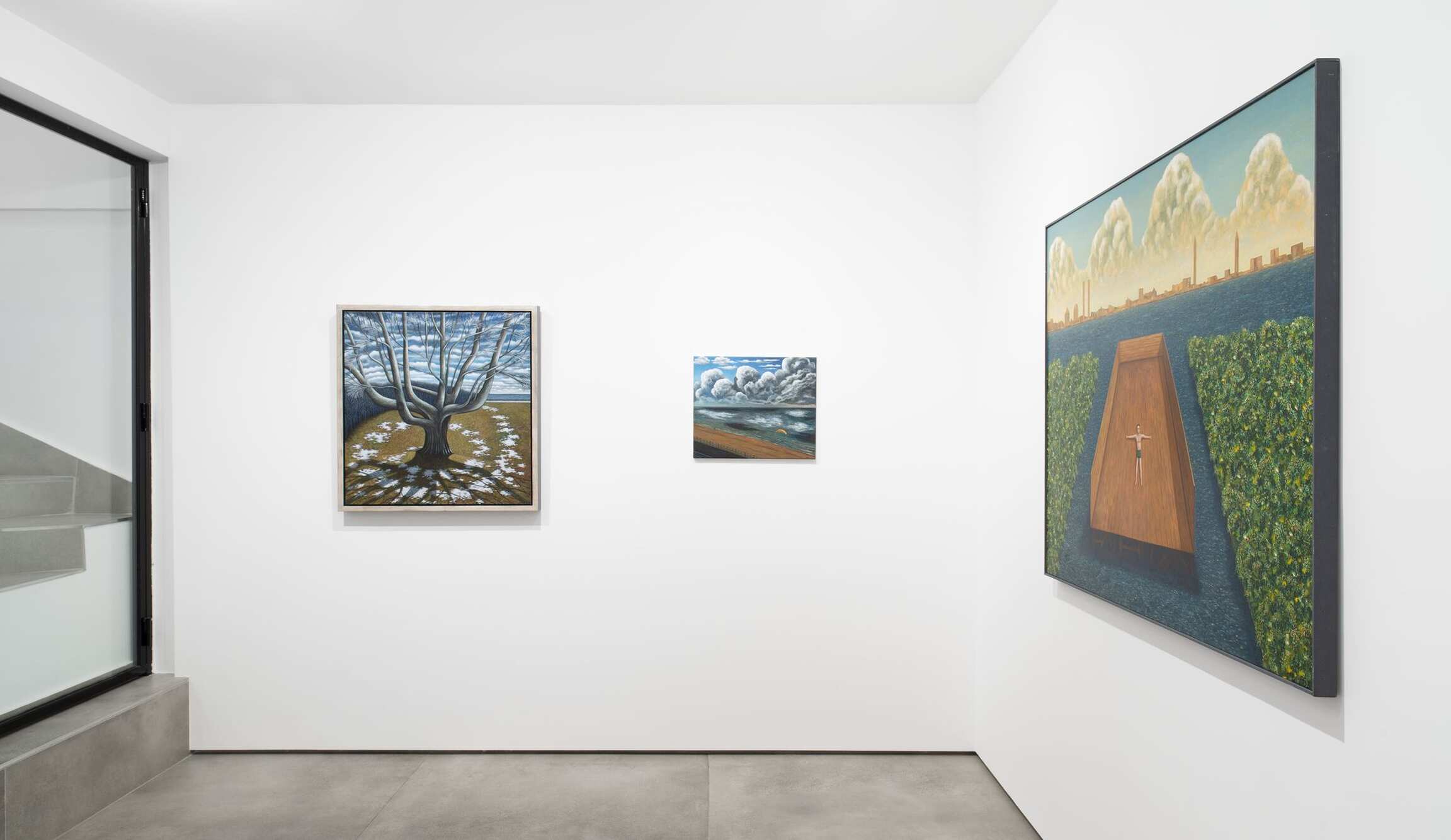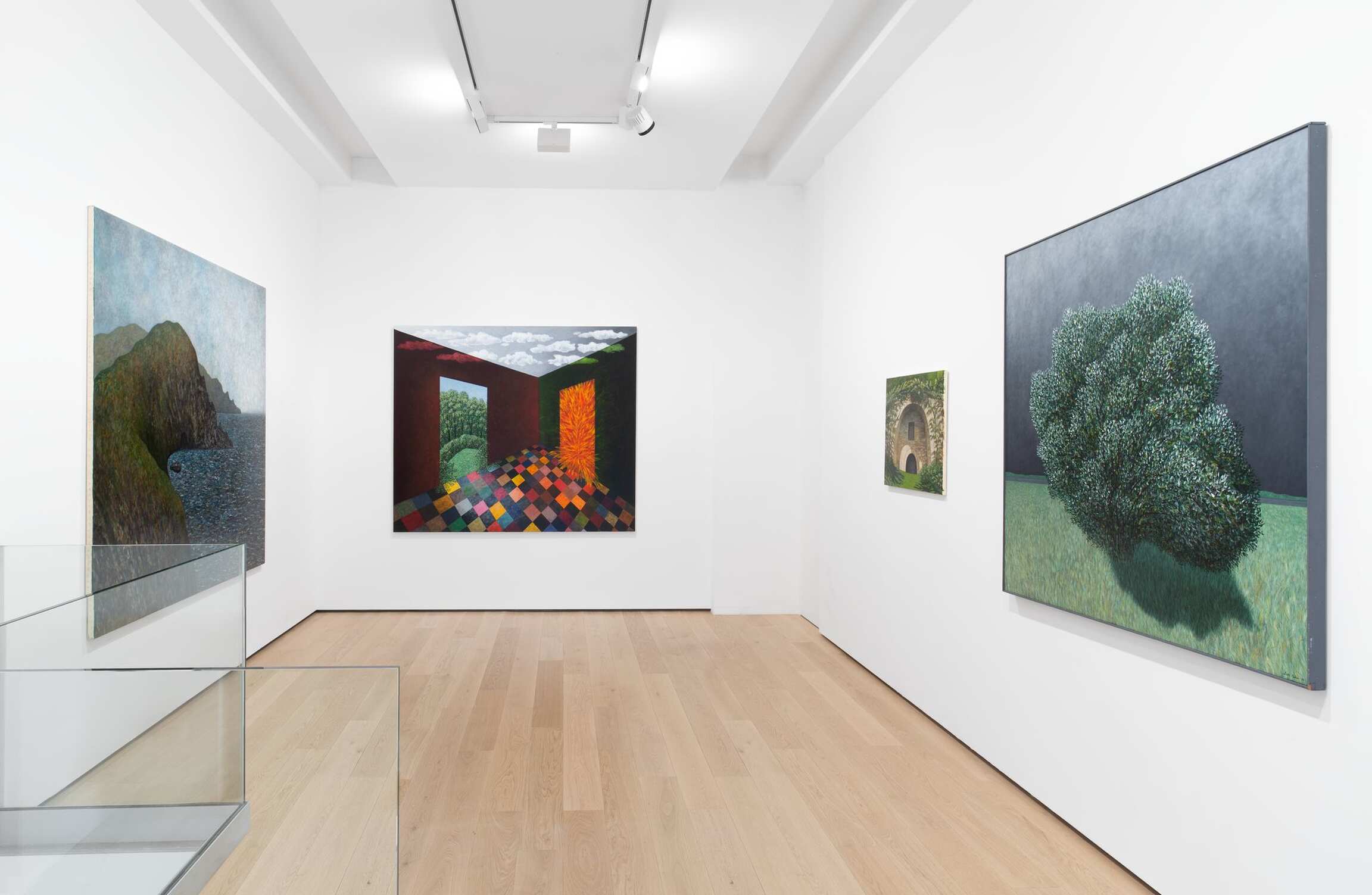 From the world of the first generation of the New York School around which he gravitated while attending Theodoros Stamos’ class at the Art Students League, to the so-called grid painters, and finally culminating in adopting a representational mode of painting and moving to Sag Harbor in the late 1970s, Scott Kahn’s ‘visual diary’ stands as a testimony of a life in painting. In his own words, he paints from life, which does not mean that he solely paints what he beholds, rather, it hints at how every strain of his life feeds into his art. Scott Kahn feels himself to be an American painter; a sentiment he finds in New England architecture for instance—whose houses he likes for their honesty, straightforwardness, and classical references—and realizes by making pictures based on components that share the same primal, foundational, elementary qualities: the moon, sun, day, night, dark, light.