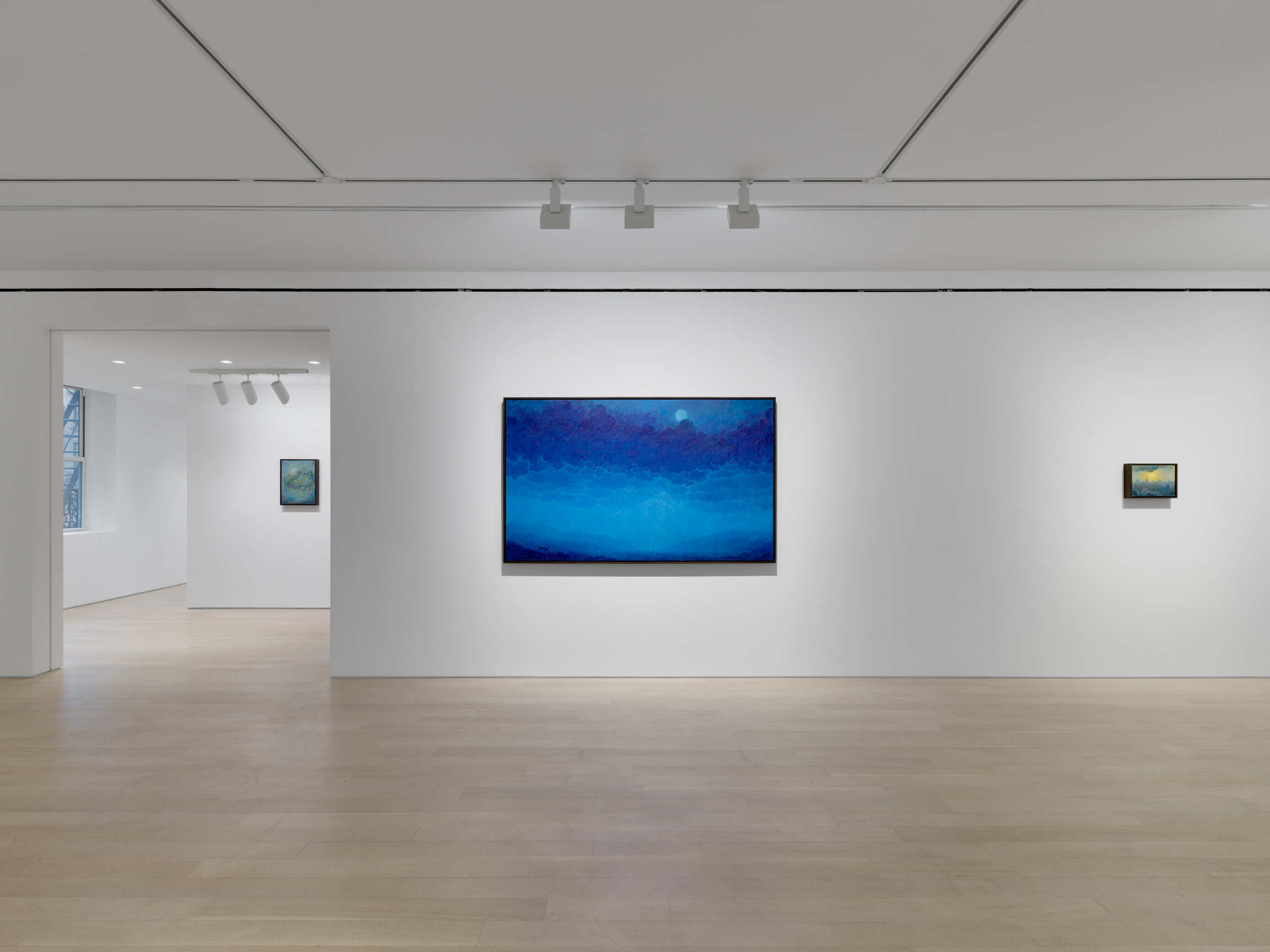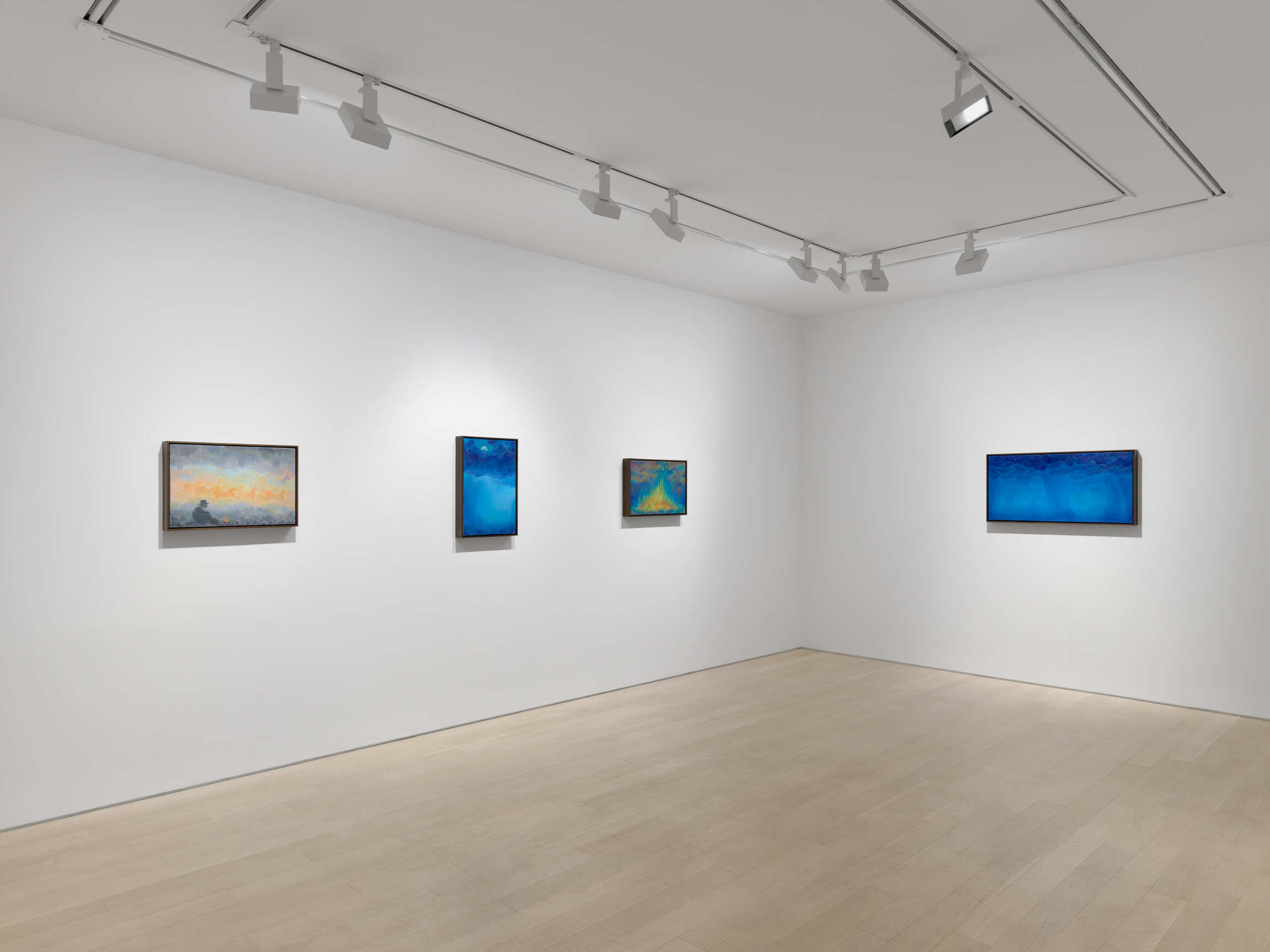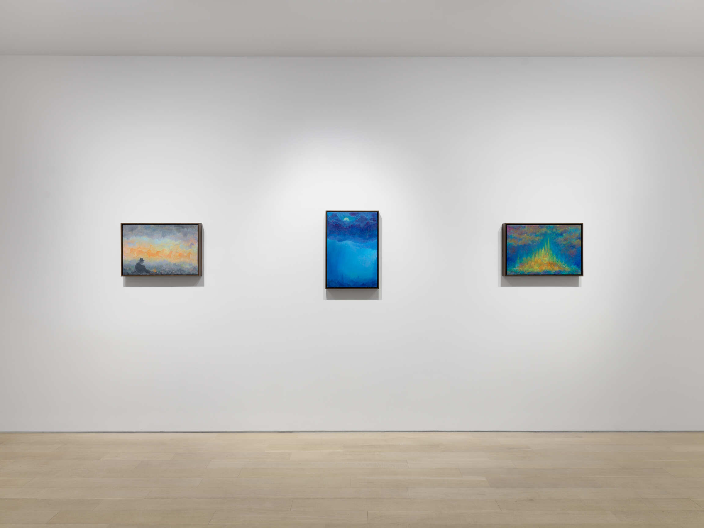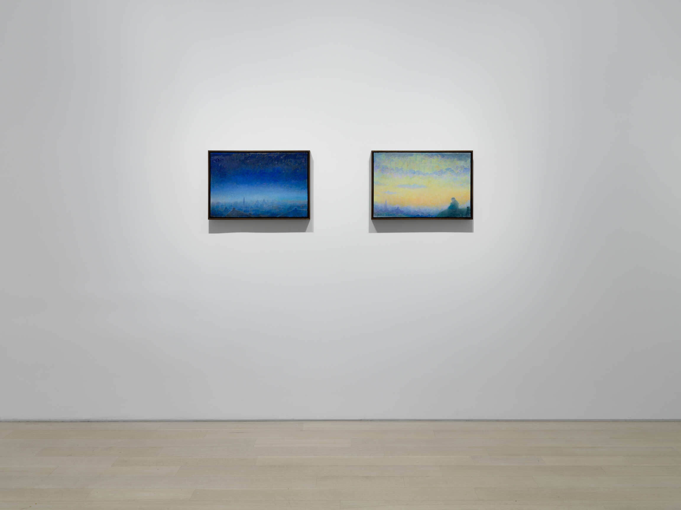 In his new body of work, there is a small canvas, The Last Man (2025), depicting a dark silhouette defined against a hazy sunrise, which is itself composed of a mosaic of galloping horses. Below the sunrise, smooth geometric rectangles suggest a cityscape or mountain range. Like children finding shapes while cloudgazing, these images remind us that seeing is always an act of interpretation. The fact that we see our reality as we see it –and that we agree on seeing how we see it – is so contingent on those biological calculations as to verge on dumb chance. In this painting, as in all his work, Kraus employs shifting signifiers, subtle shifts in light, and the presence of time to game natural vision. The actors in this process are the rods, cones, and ganglia of the retina and optic nerve. Together, they carve forms from a splendour of in-flooding light signals.