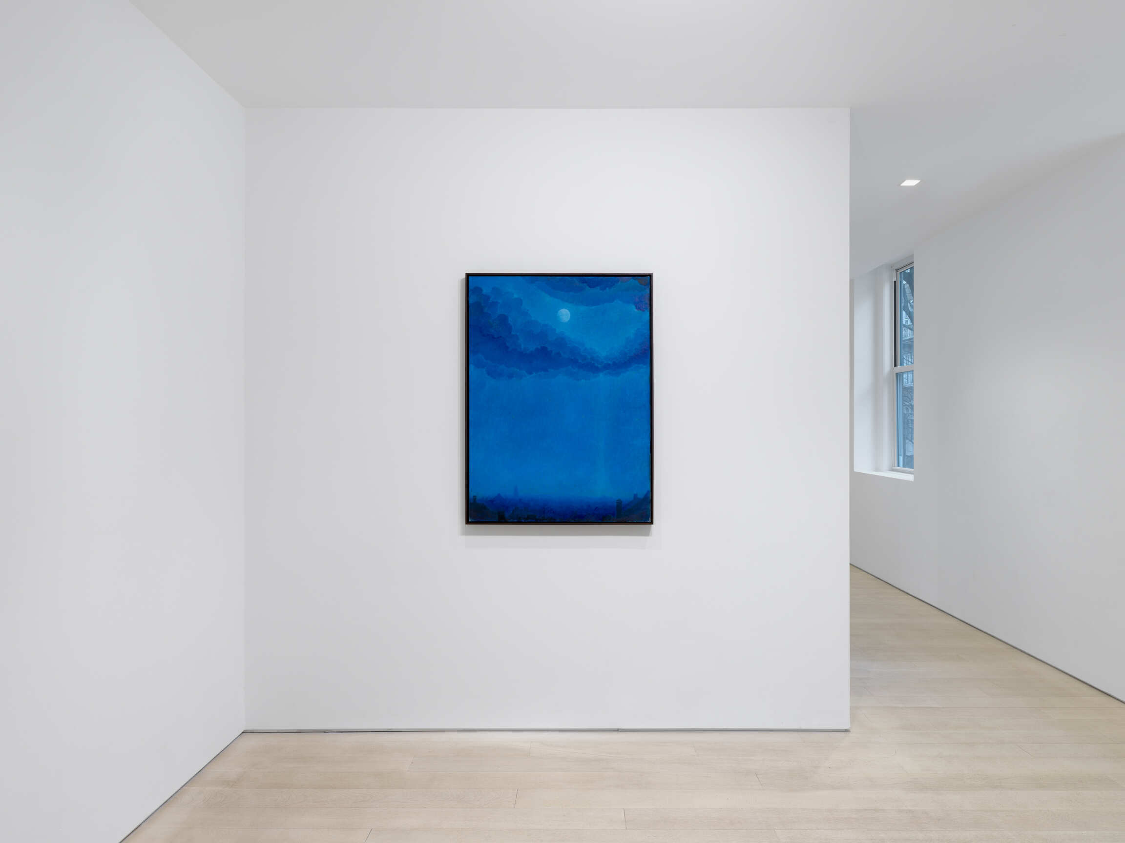 In Kraus’s work, shadows are crucial. A strangely illuminated darkness provides a consistent atmosphere in which to play this game of seeing. In City in the Sky (2025), a sailboat skates over a band of dark water, which ballasts the painting, while a night sky opens and, in it, a city of heaven. Sun Residence (2025) could be a keystone for this body of work. There we see an open box in darkness. Polychrome smoke rises out of it before morphing into red and purple shapes, like Tetris pieces or staircases. It seems like a picture of the imagination opening.