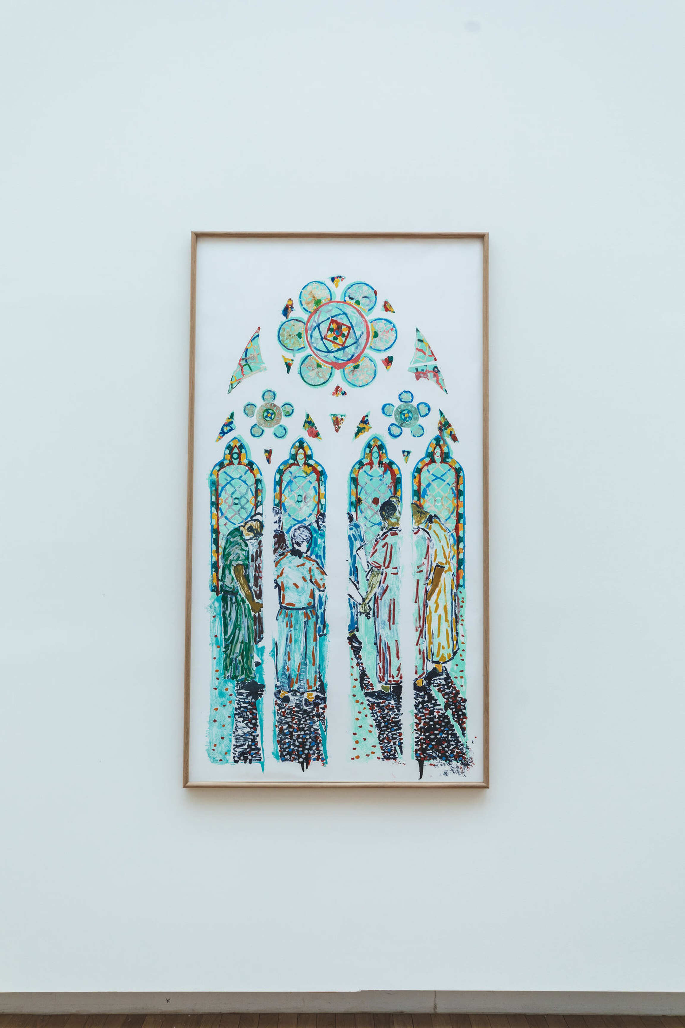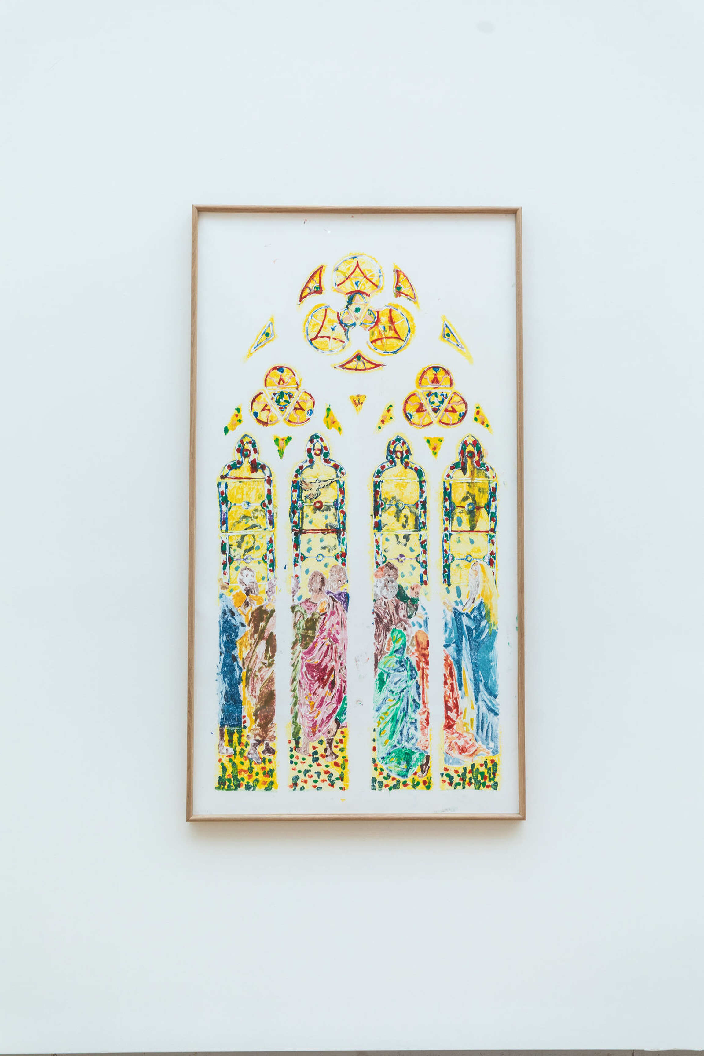 In order to comply with the requirements of the consultation conducted by the public institution Rebâtir Notre-Dame de Paris, Claire Tabouret worked with a balanced but vivid colour palette so that the future stained glass windows would retain this white light. She chose to create this series of works using the monotype technique, a printing technique that the artist has been practising obsessively for many years.