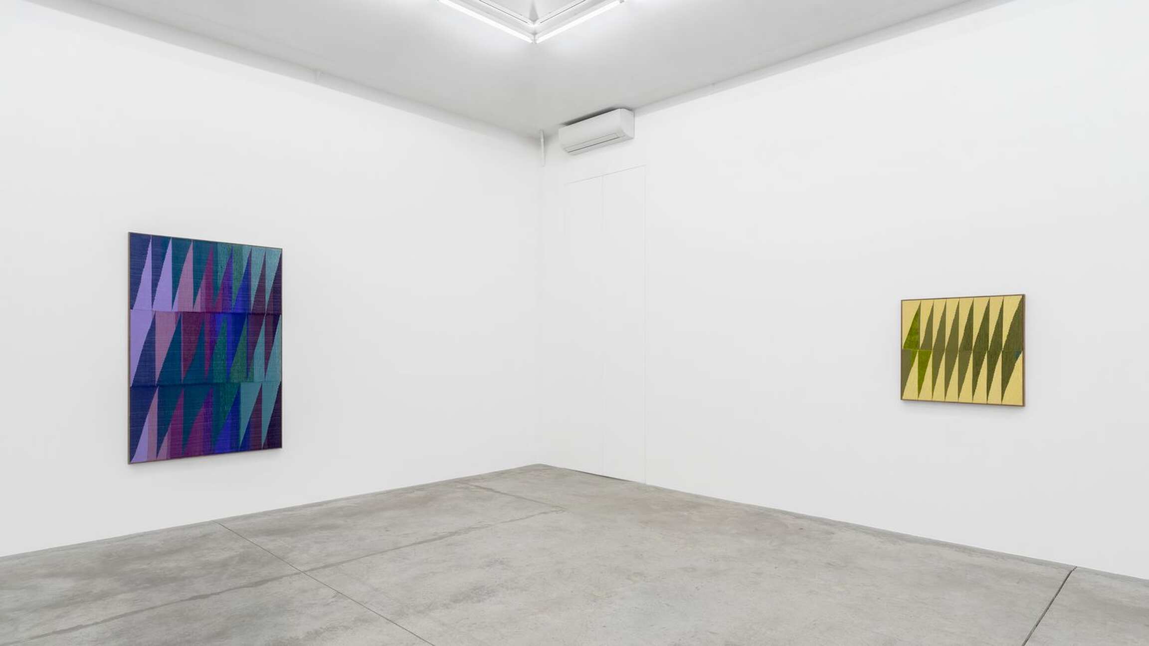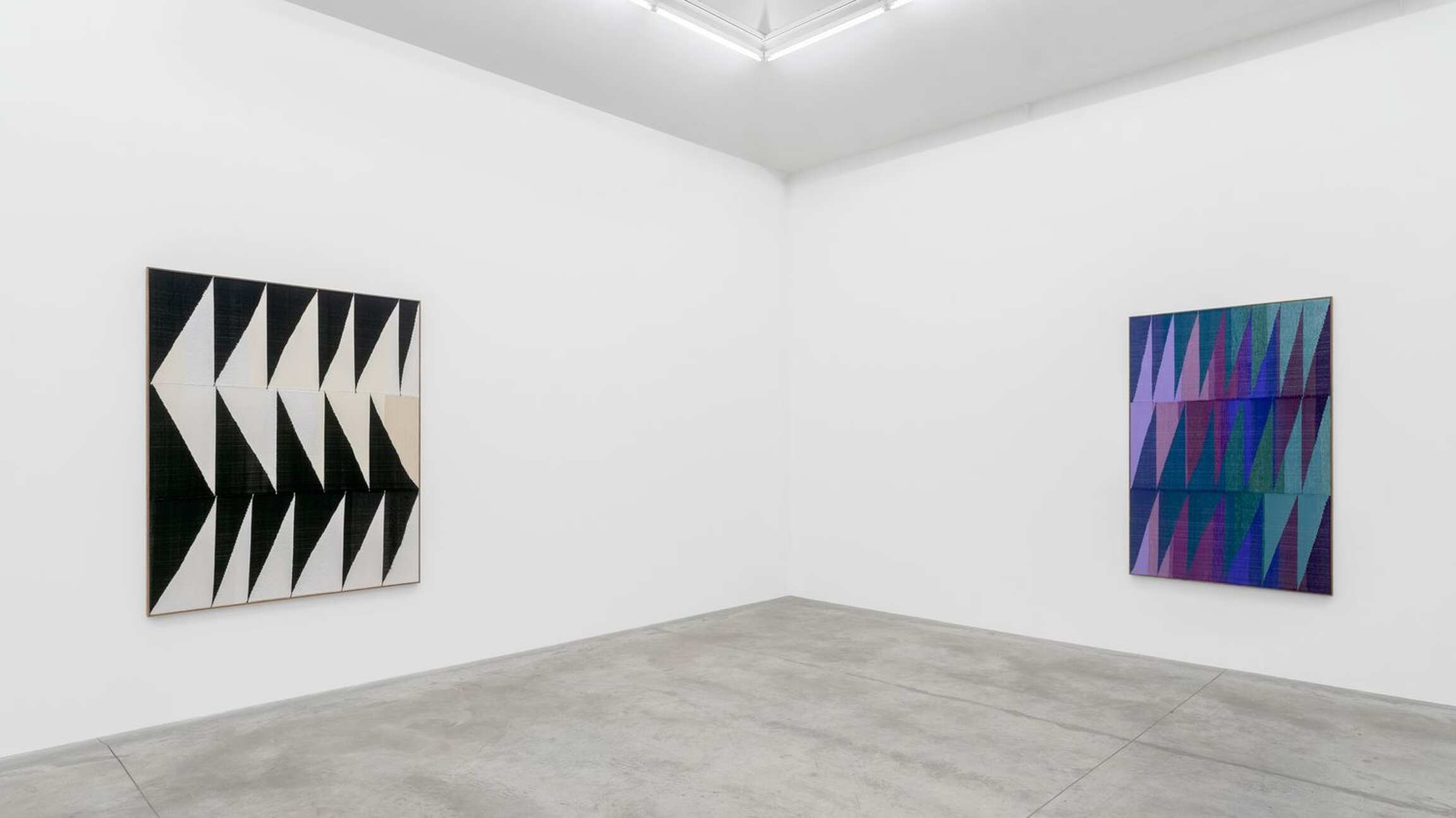 Cette manière de collecter des matériaux le conduit à accepter de faire avec ce qu’il trouve, puis à envisager ses compositions en admettant qu’une couleur de fil puisse venir à manquer en cours de tissage, ce qui occasionne un éventuel changement de grosseur de fil, de texture ou de couleur… Cette capacité d’adaptation est l’une des composantes du travail au même titre que les aléas du tissage : difficulté d’alignement d’un panneau à l’autre, légère distorsion des formes, infimes accidents que Brent Wadden s’emploie à estomper ou à intégrer à ses compositions. Cette part de hasard acceptée et à peine perceptible pour l’observateur, rappelle que le métier à tisser ne permet pas de voir la pièce en totalité tant qu’elle n’est pas achevée, autrement dit “tombée de métier''.