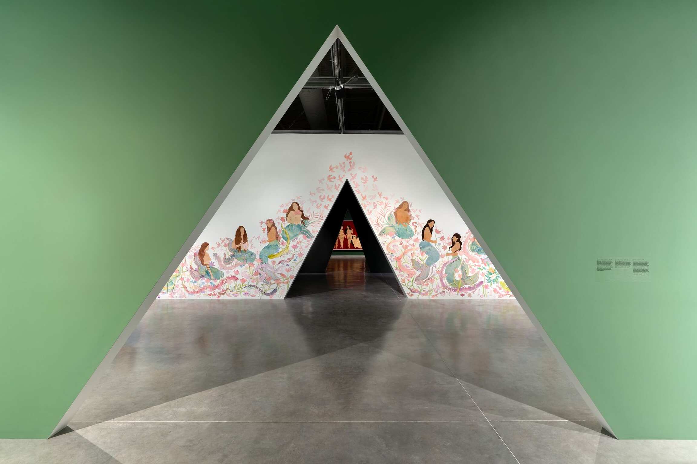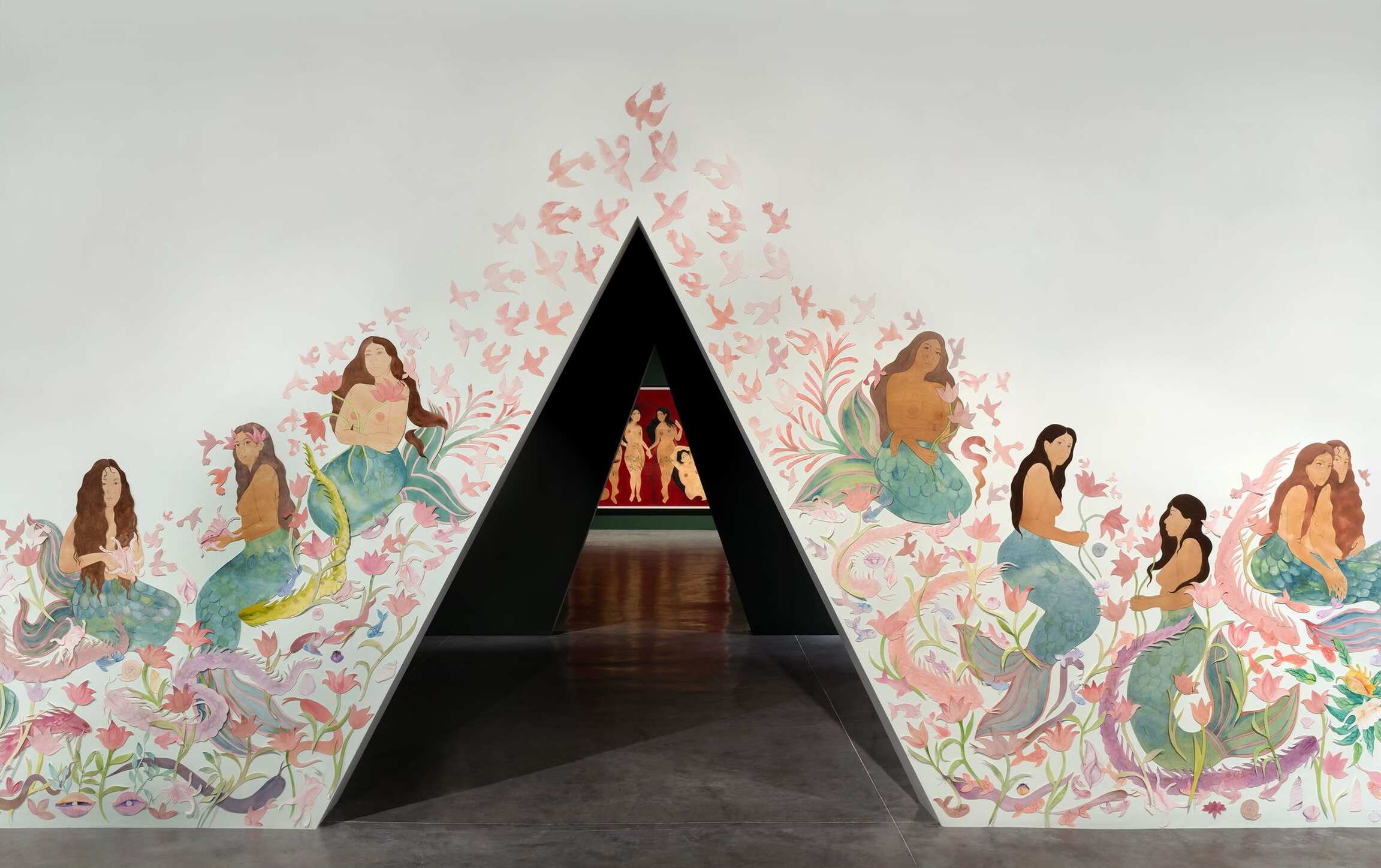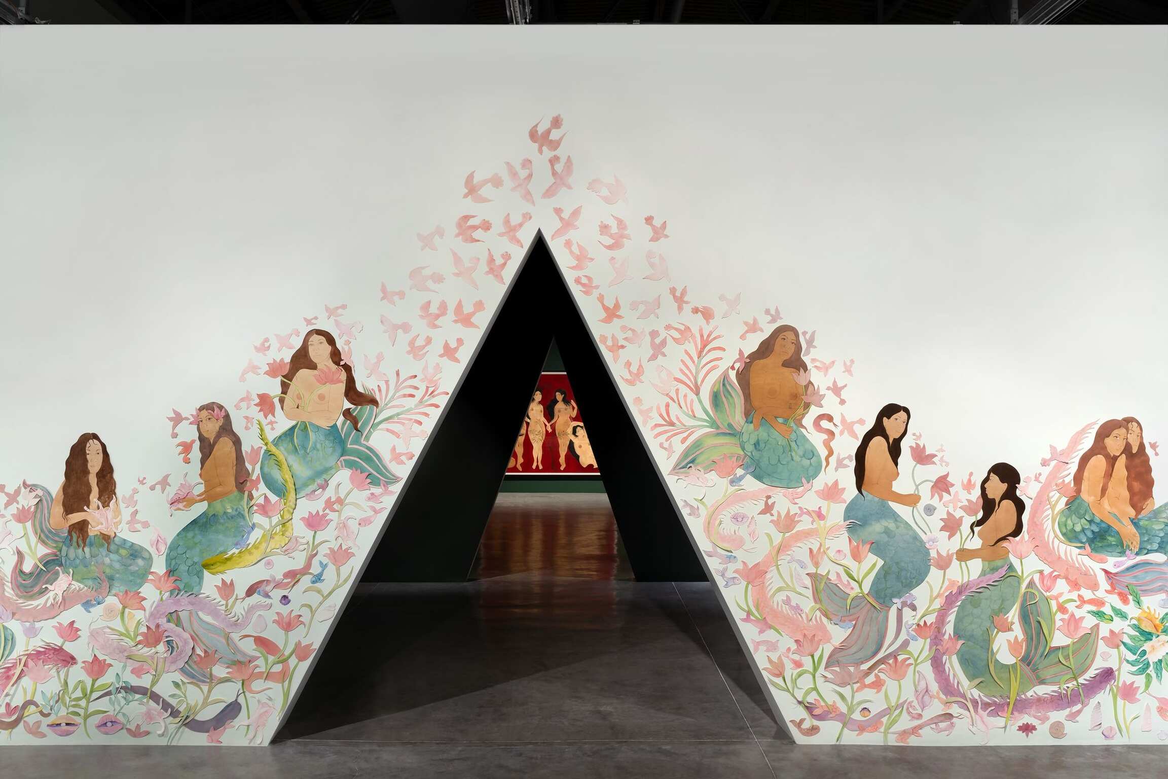 Spanning over fifteen years, 'Hiba Schahbaz: The Garden' is the first major retrospective of Pakistani-American artist Hiba Schahbaz. The exhibition brings together motifs that recur throughout Schahbaz’s visual lexicon: global allegory, a direct feminist gaze, and fantastical beings that traverse elemental realms of earth, fire, wind, sky, and sea, alongside human architectural interventions. Collectively, this selection of paintings forms an environment that invites viewers into the artist’s expansive, imagined worlds.