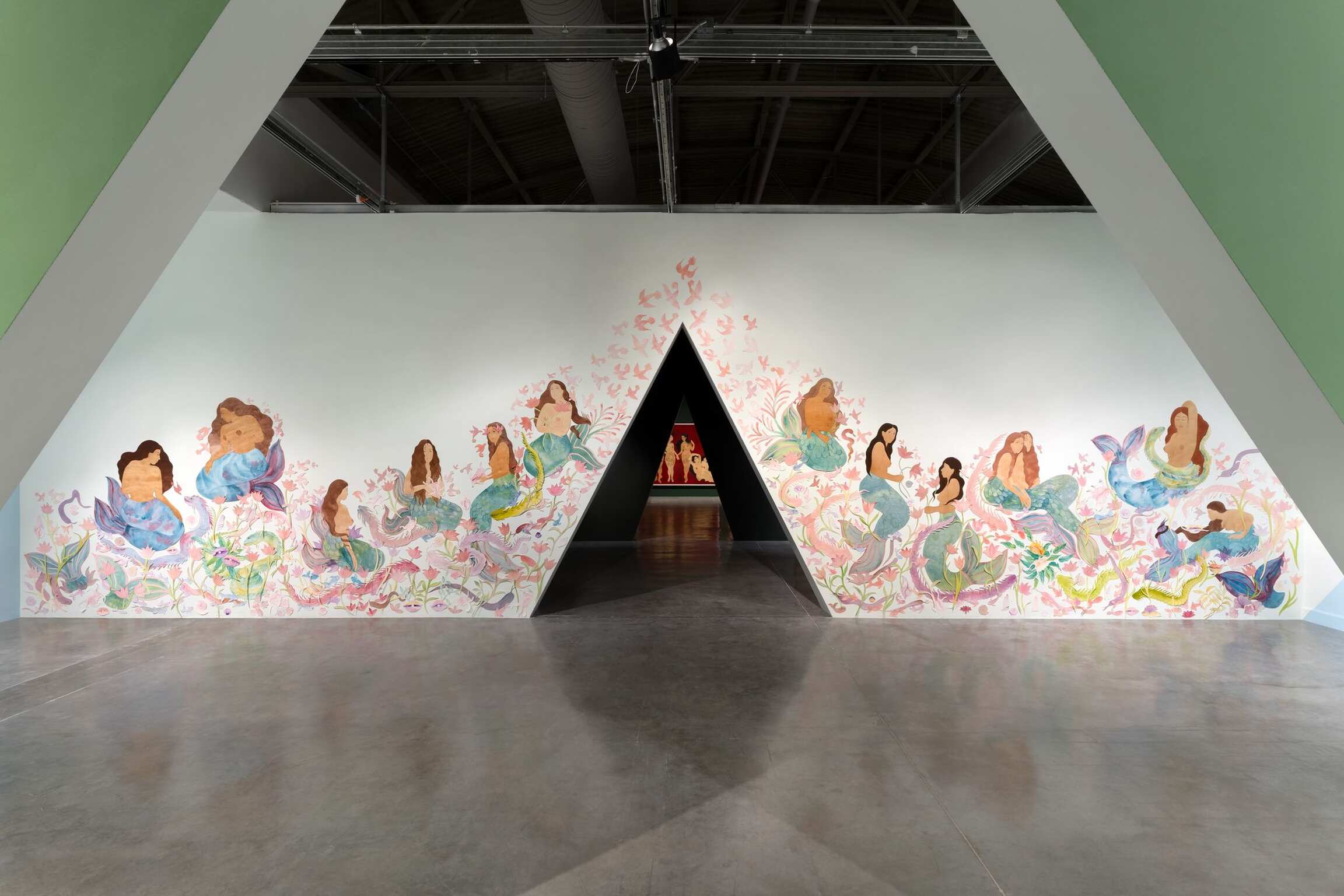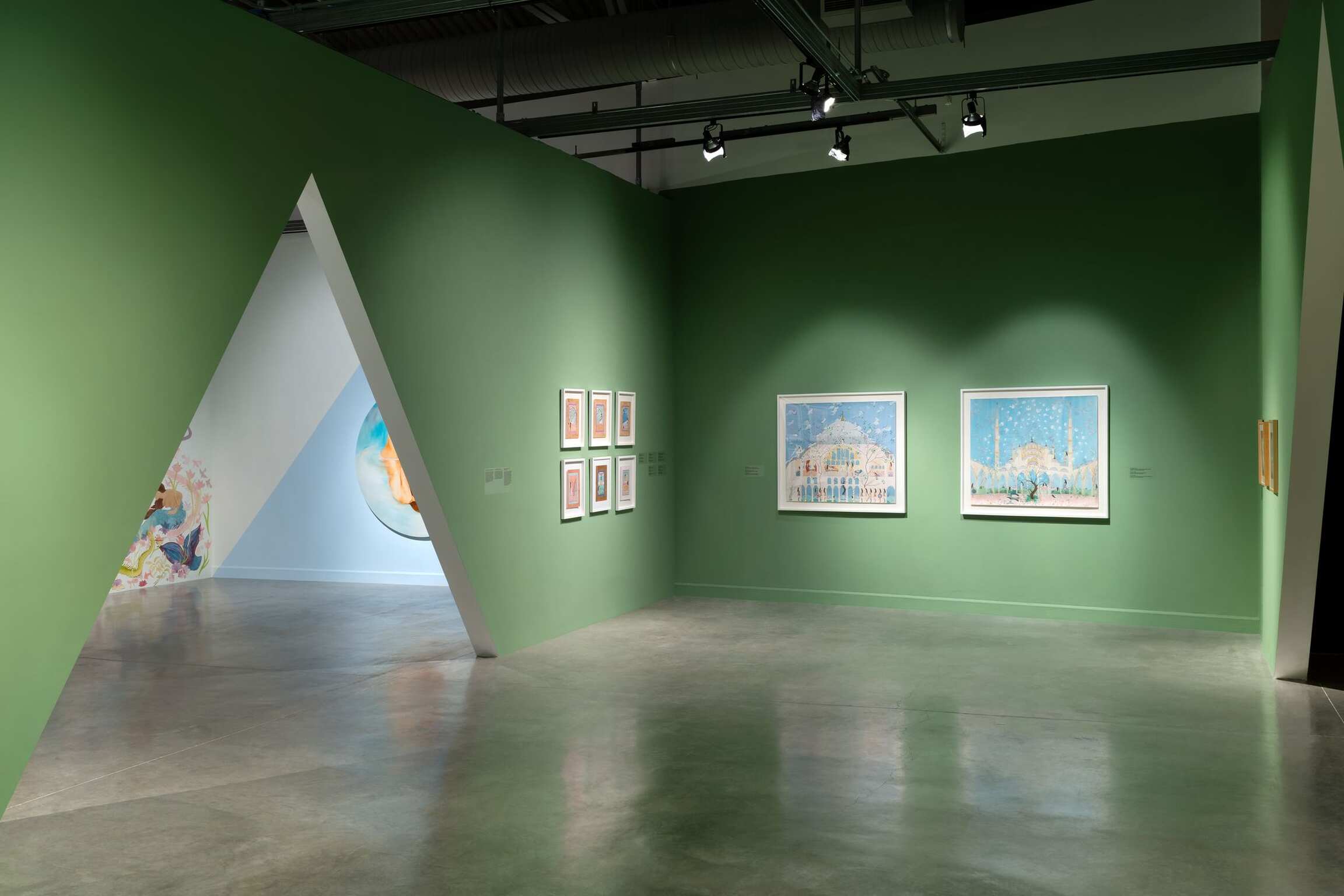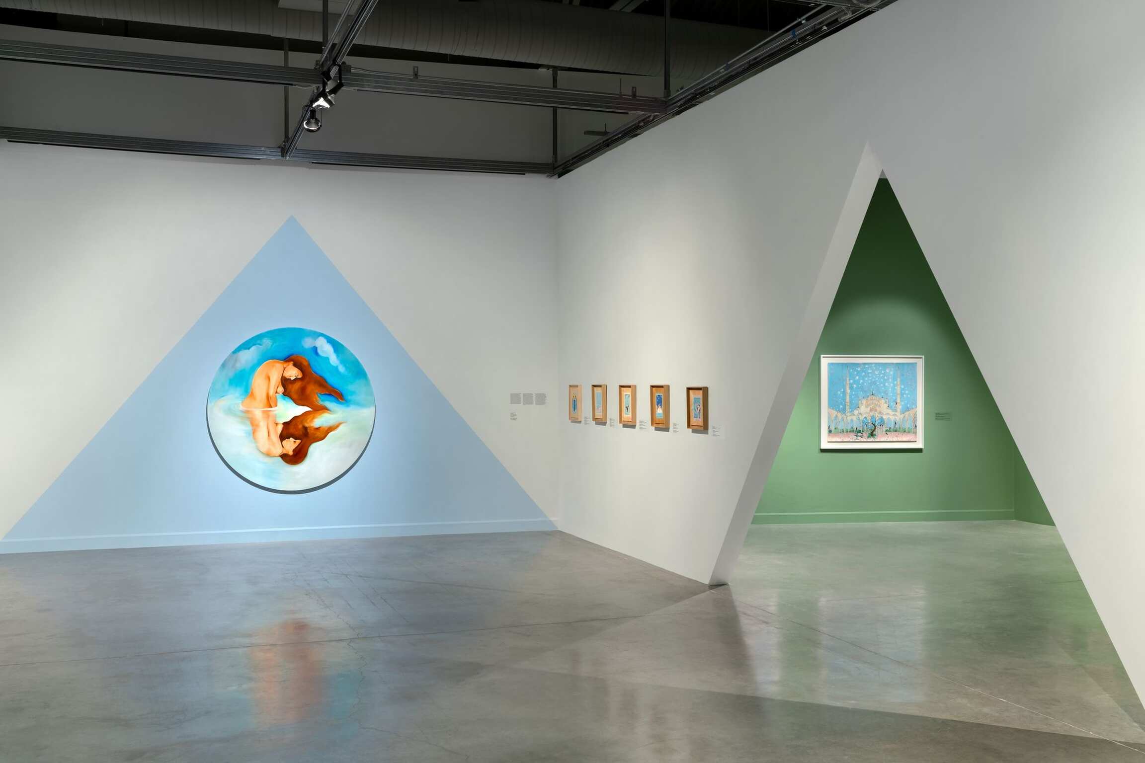 Spanning over fifteen years, 'Hiba Schahbaz: The Garden' is the first major retrospective of Pakistani-American artist Hiba Schahbaz. The exhibition brings together motifs that recur throughout Schahbaz’s visual lexicon: global allegory, a direct feminist gaze, and fantastical beings that traverse elemental realms of earth, fire, wind, sky, and sea, alongside human architectural interventions. Collectively, this selection of paintings forms an environment that invites viewers into the artist’s expansive, imagined worlds.